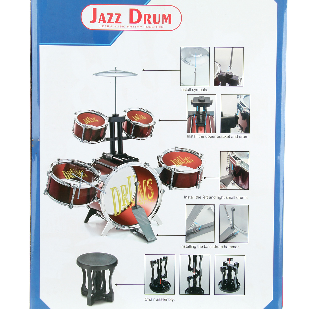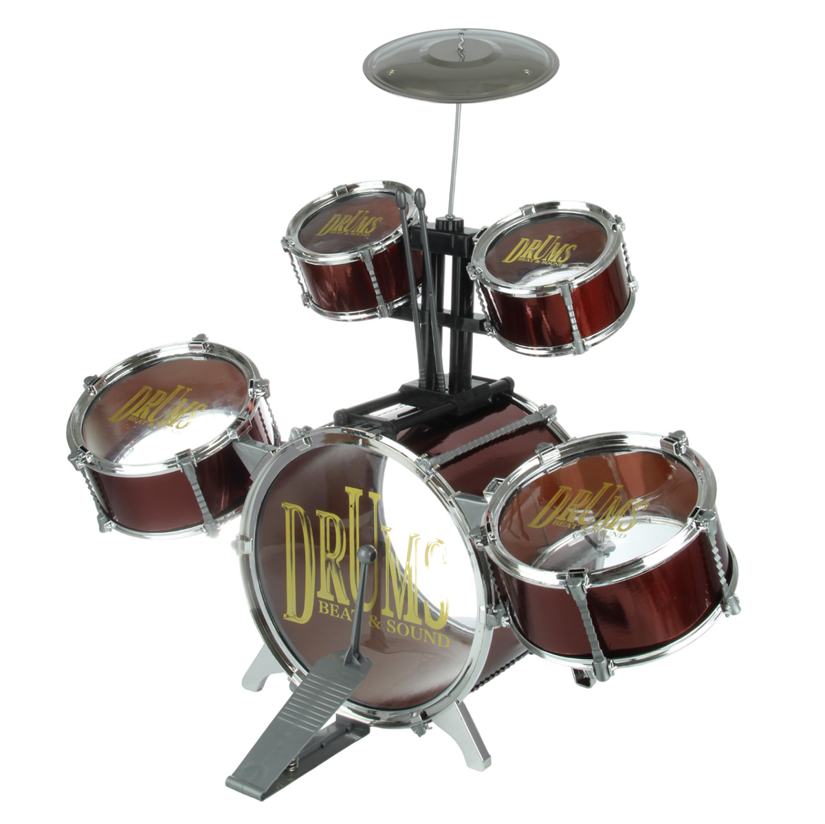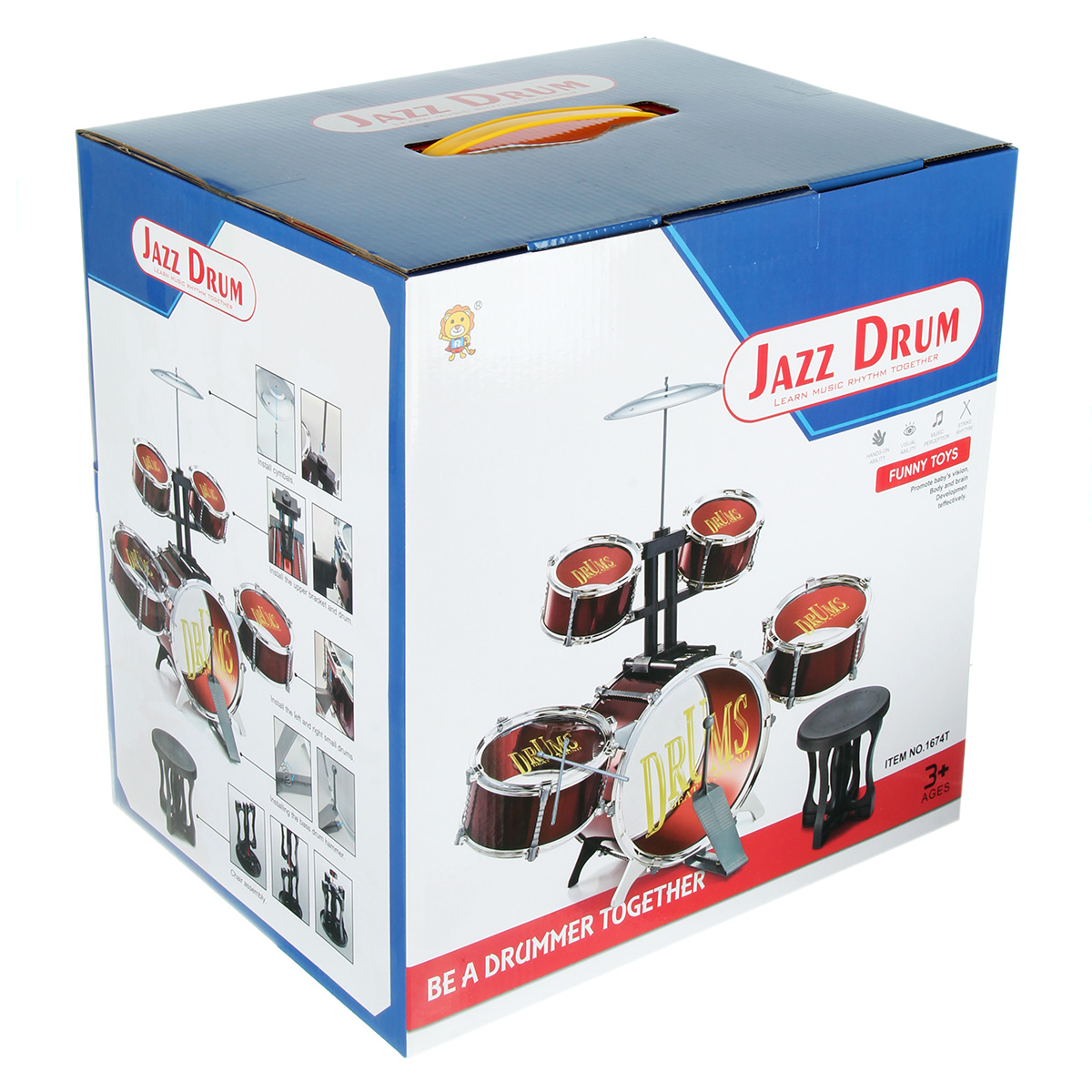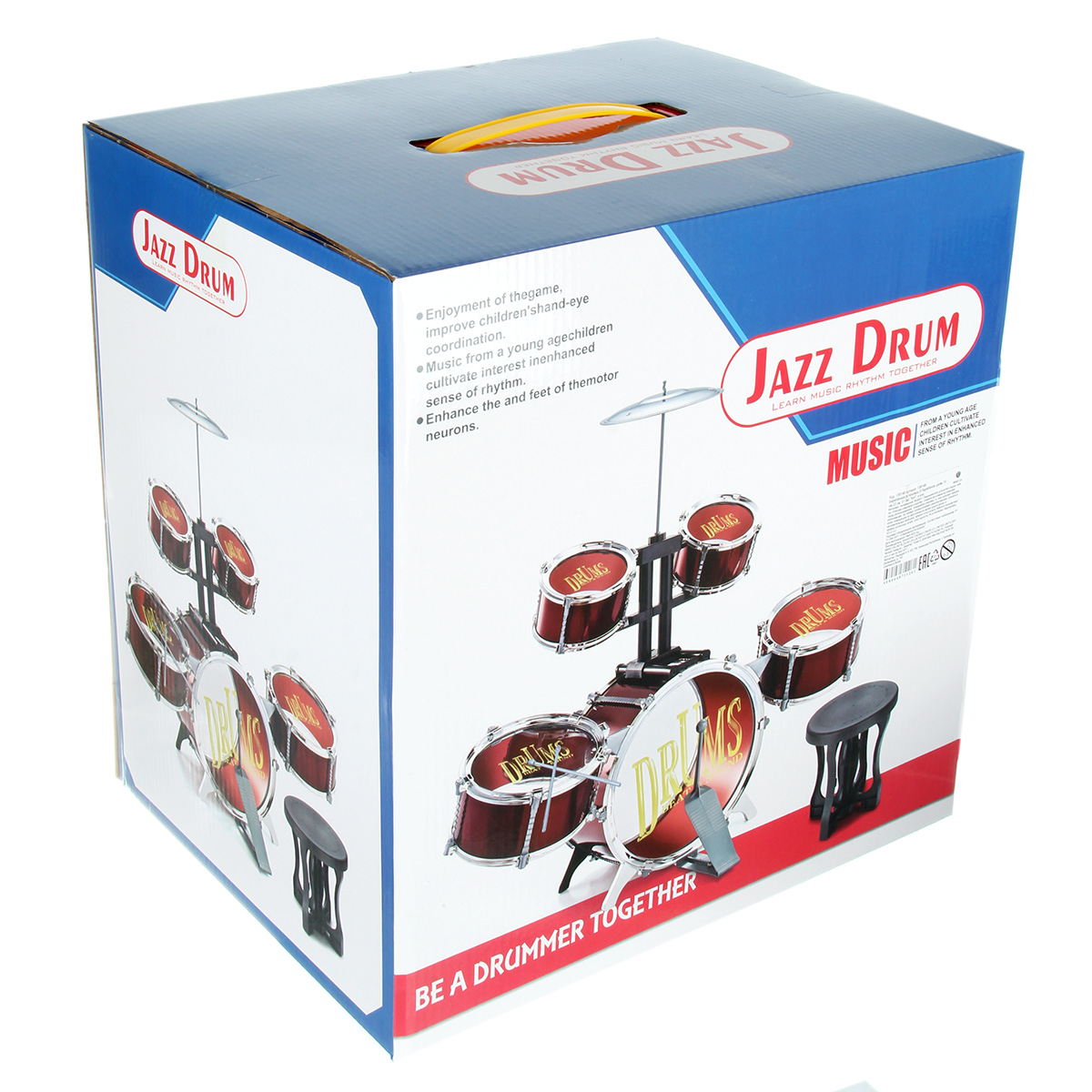Детская барабанная установка 5 барабанов. Музыкальная игрушка в компактном размере, отличается хорошим качеством исполнения. Барабаны детские изготовлены из прочных и долговечных материалов, имеют продуманную конструкцию. Детский игрушечный инструмент барабаны легко собрать, металлическая тарелка в комплекте и барабанные палочки. Барабаны игрушка, это замечательный подарок детям на Новый год и День рождения.