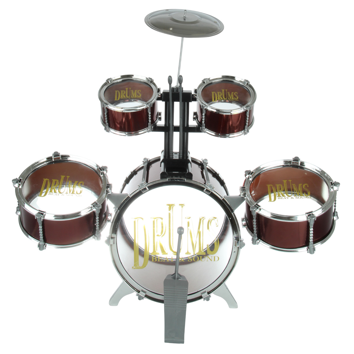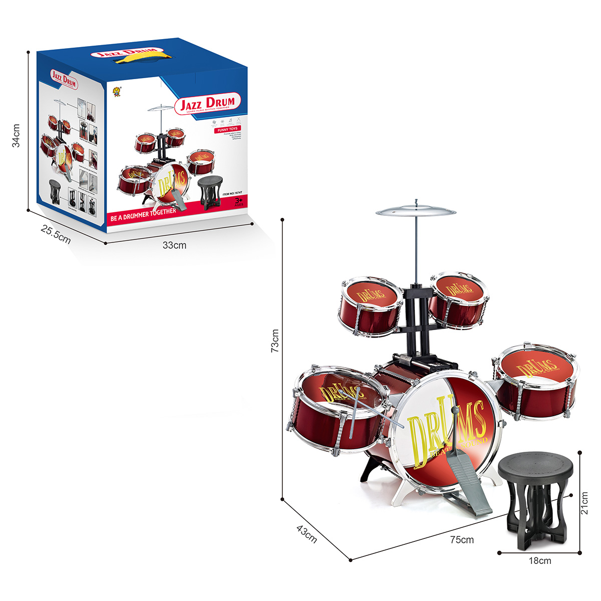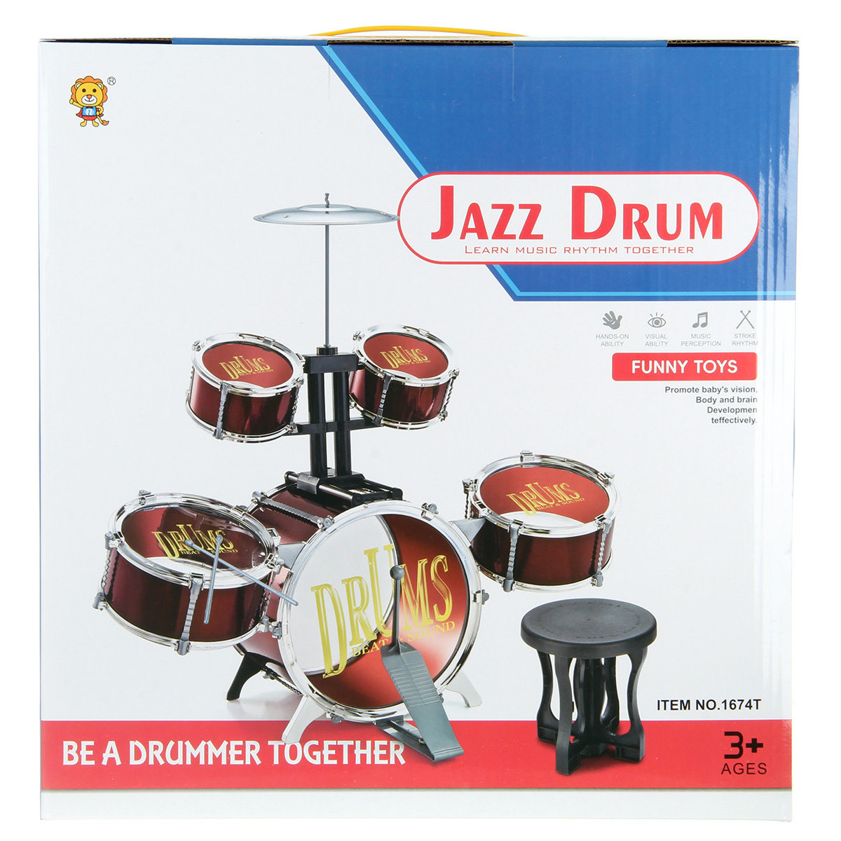 Детская барабанная установка 5 барабанов. Музыкальная игрушка в компактном размере, отличается хорошим качеством исполнения. Барабаны детские изготовлены из прочных и долговечных материалов, имеют продуманную конструкцию. Детский игрушечный инструмент барабаны легко собрать, металлическая тарелка в комплекте и барабанные палочки. Барабаны игрушка, это замечательный подарок детям на Новый год и День рождения.