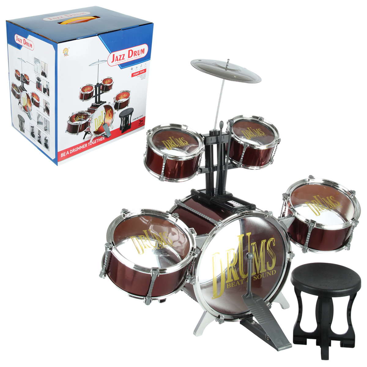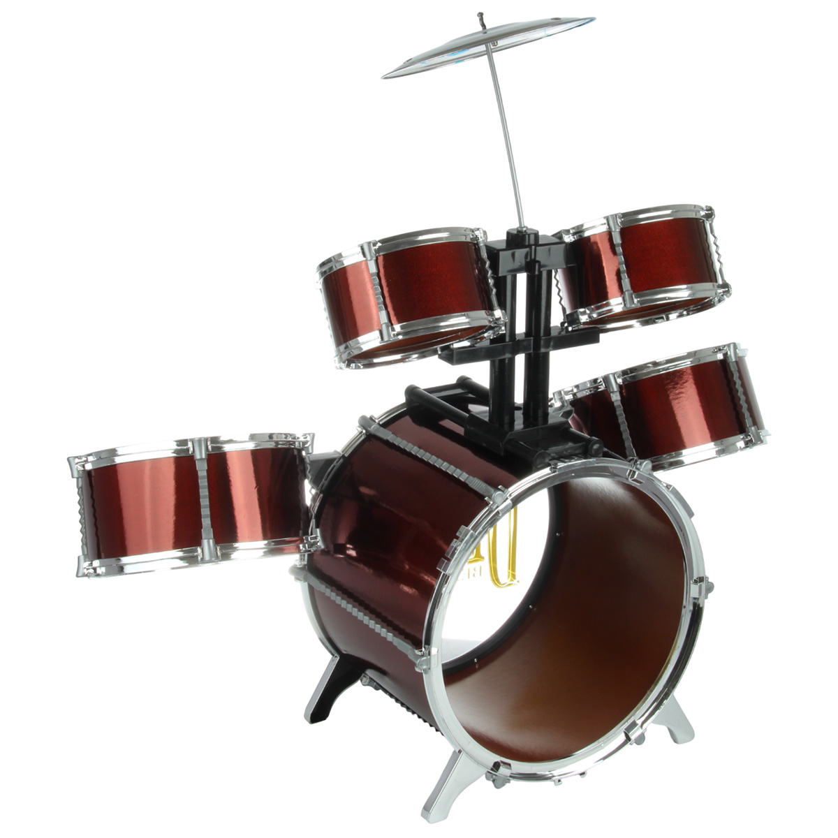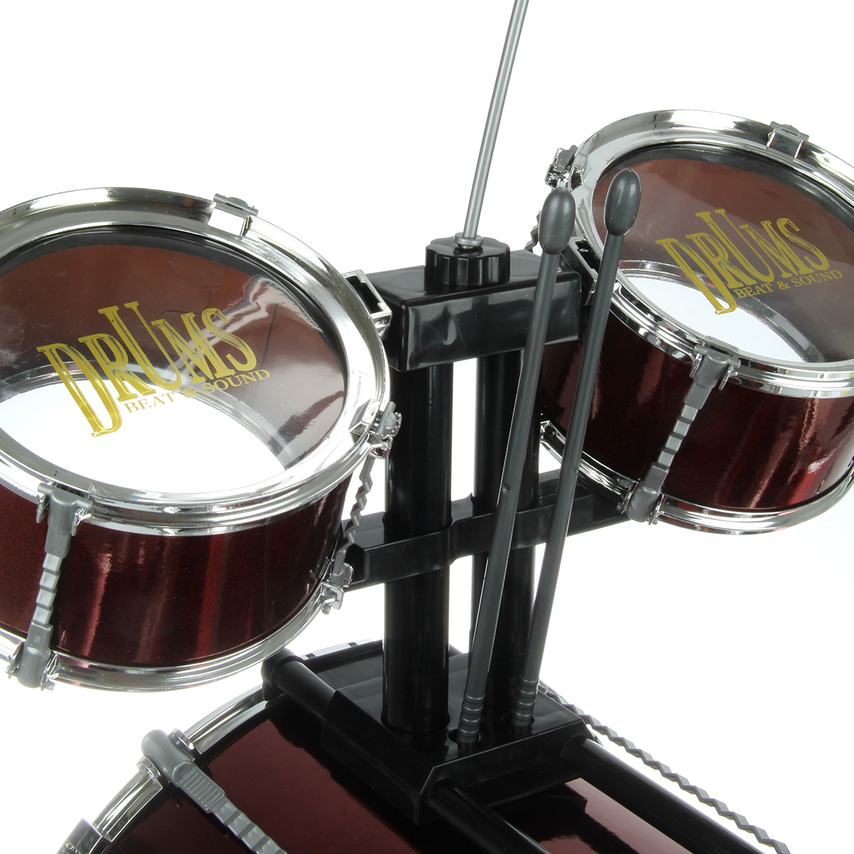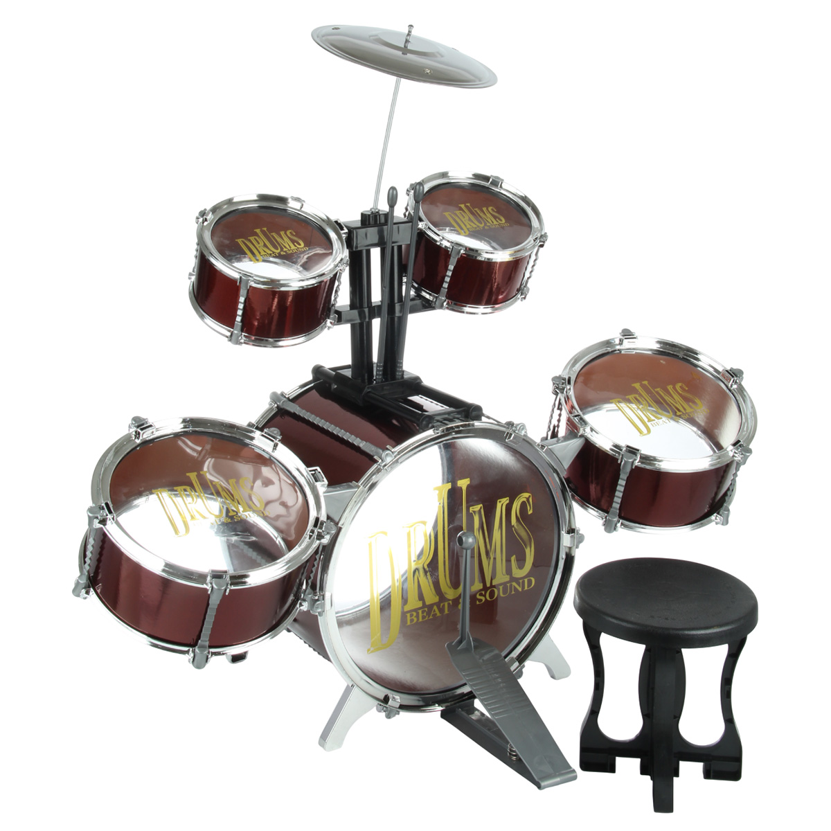 Детская барабанная установка 5 барабанов. Музыкальная игрушка в компактном размере, отличается хорошим качеством исполнения. Барабаны детские изготовлены из прочных и долговечных материалов, имеют продуманную конструкцию. Детский игрушечный инструмент барабаны легко собрать, металлическая тарелка в комплекте и барабанные палочки. Барабаны игрушка, это замечательный подарок детям на Новый год и День рождения.