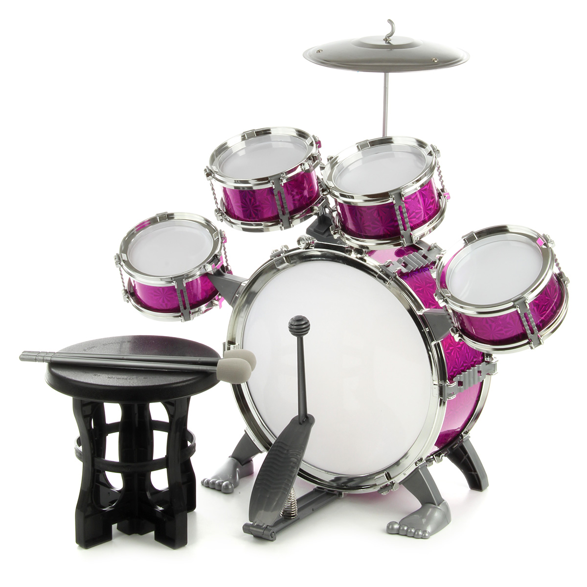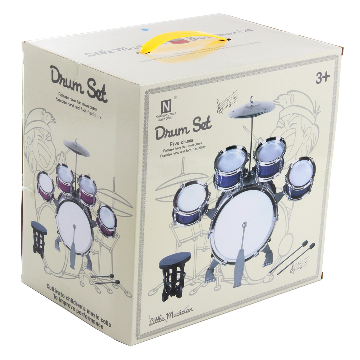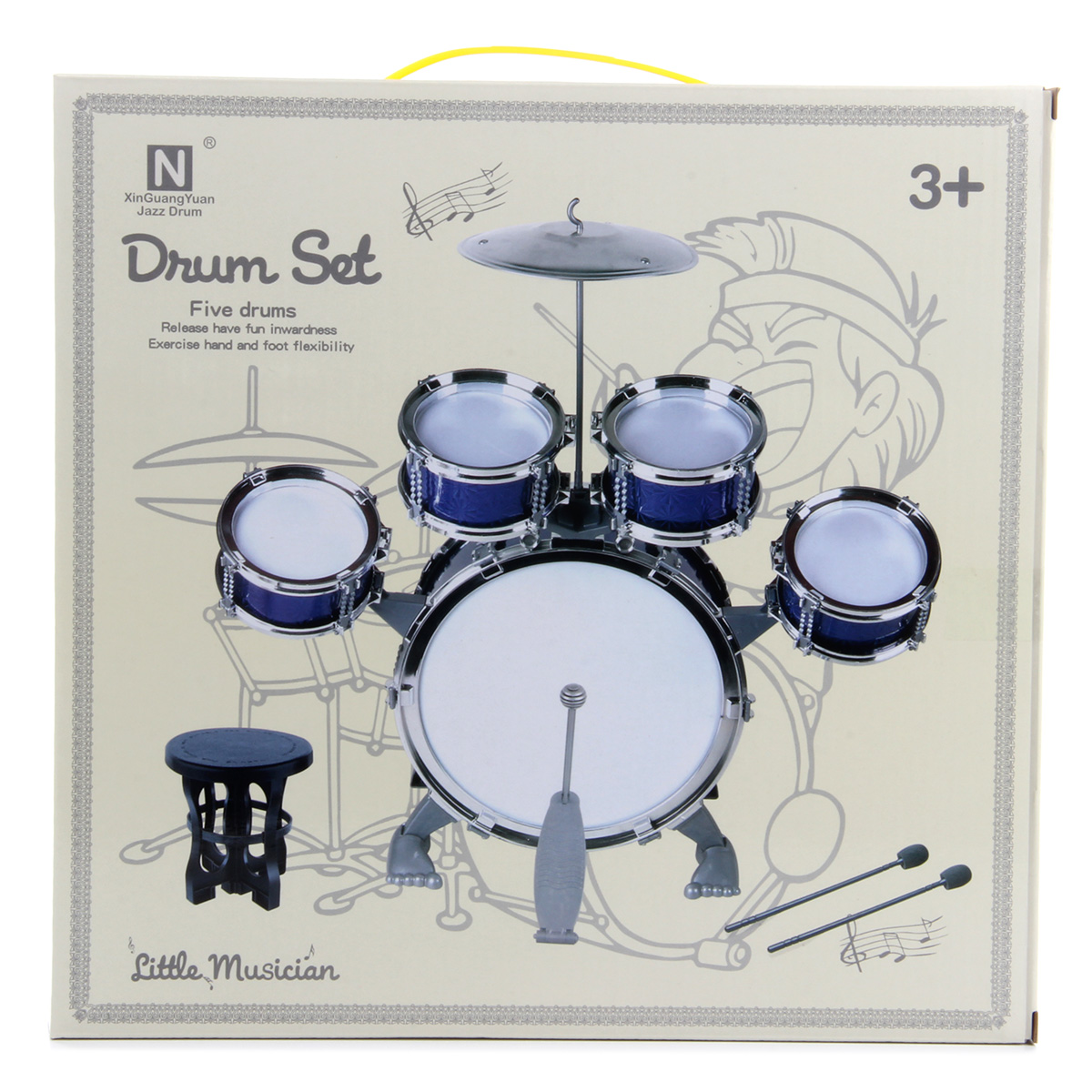Барабанная установка - шикарный подарок каждому маленькому музыканту. Качественное исполнение, наличие большого количества элементов, роскошный внешний вид - эта игрушка понравится каждому ребенку. В комплект входят барабанная установка, табуретка, барабанные палочки. Табурет разбирается. Игра на барабанах способствует: - развитию чувства ритма, координации движений, мелкой и крупной моторики; - улучшению мышечных рефлексов; - тренировке физической выносливости, ловкости и сноровки; - развитию артистических способностей. Барабанная установка легко собирается и разбирается, занимает мало места в разобранном виде. Обязательно порадуйте ребенка такой потрясающей игрушкой. Игрушка изготовлена из качественных и безопасных полимерных материалов и металла. Размеры собранной барабанной установки: 56*32*52 см. Размеры бочки: 30*13*30 см. Размеры рабочего барабана: 13*7*13 см. Размеры палочки: 25*3*3 см. Размеры табуретки: 19*19*19 см. Размеры чайны: 19*19*2 см. Длина педальки для ноги: 14 см. Размеры коробки: 30*21*