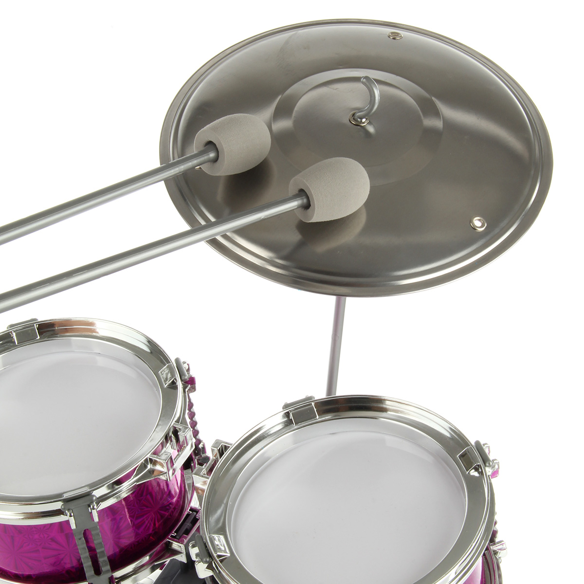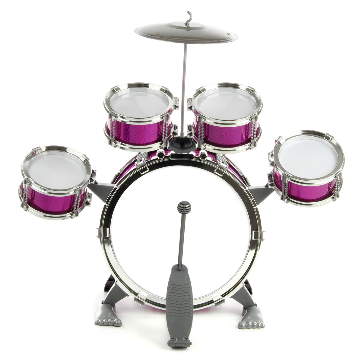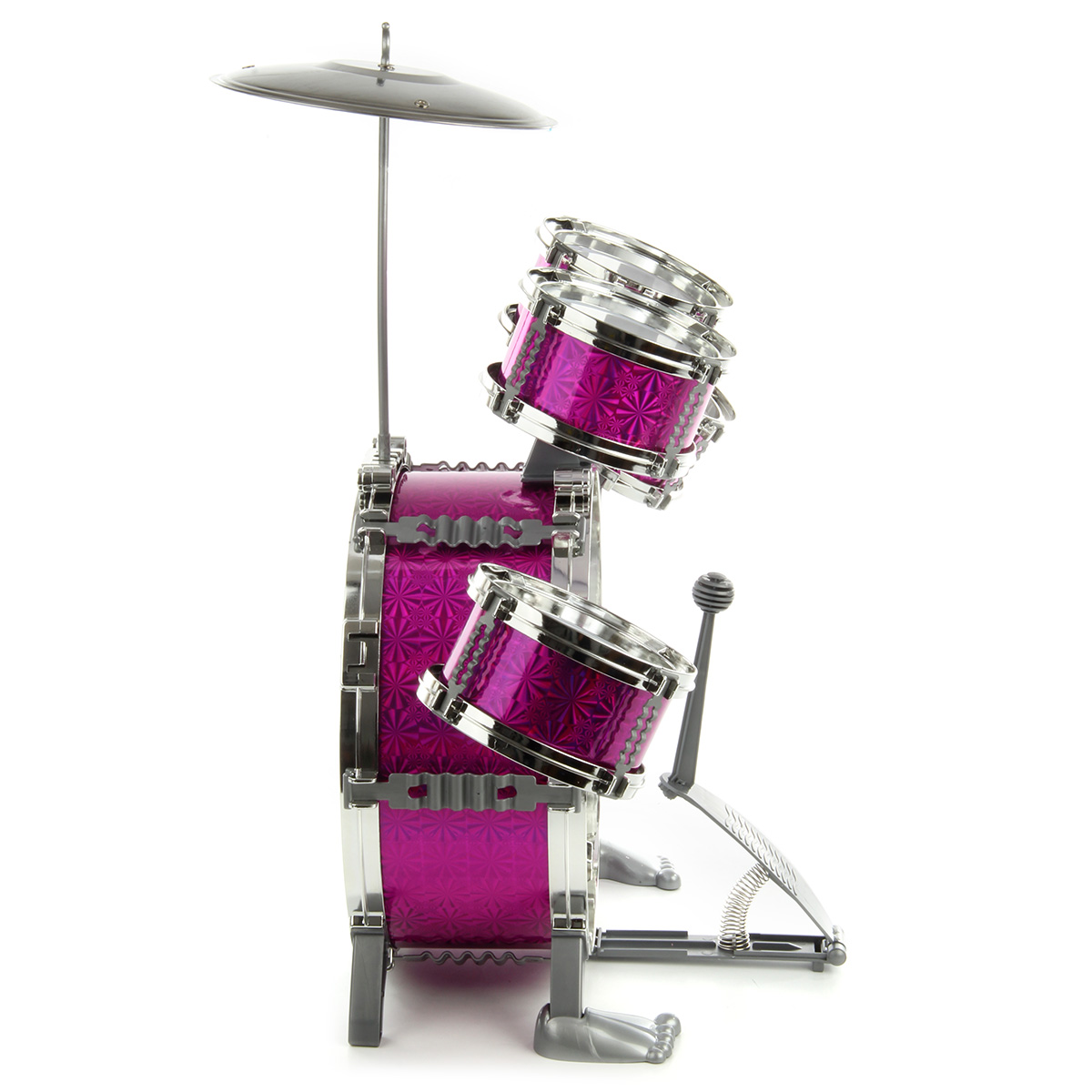 Барабанная установка - шикарный подарок каждому маленькому музыканту. Качественное исполнение, наличие большого количества элементов, роскошный внешний вид - эта игрушка понравится каждому ребенку. В комплект входят барабанная установка, табуретка, барабанные палочки. Табурет разбирается. Игра на барабанах способствует: - развитию чувства ритма, координации движений, мелкой и крупной моторики; - улучшению мышечных рефлексов; - тренировке физической выносливости, ловкости и сноровки; - развитию артистических способностей. Барабанная установка легко собирается и разбирается, занимает мало места в разобранном виде. Обязательно порадуйте ребенка такой потрясающей игрушкой. Игрушка изготовлена из качественных и безопасных полимерных материалов и металла. Размеры собранной барабанной установки: 56*32*52 см. Размеры бочки: 30*13*30 см. Размеры рабочего барабана: 13*7*13 см. Размеры палочки: 25*3*3 см. Размеры табуретки: 19*19*19 см. Размеры чайны: 19*19*2 см. Длина педальки для ноги: 14 см. Размеры коробки: 30*21*
