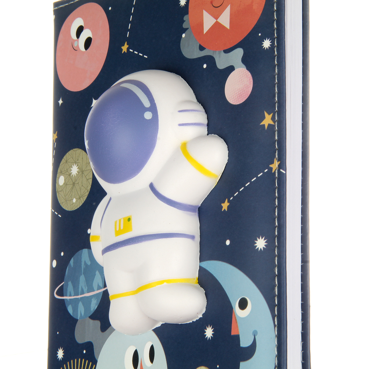 Ежедневник детский имеет твердую обложку, благодаря этому в блокноте для мальчика удобно писать. Выпуклый сквиш антистресс в виде фигурки космонавта мягкий, нажимаем на фигурку, она прогибается и принимает первоначальную форму, снимаем стресс и напряжение, отличная игрушка для пальчиков. Оригинальный дизайн на космическую тематику подчеркивает индивидуальность.