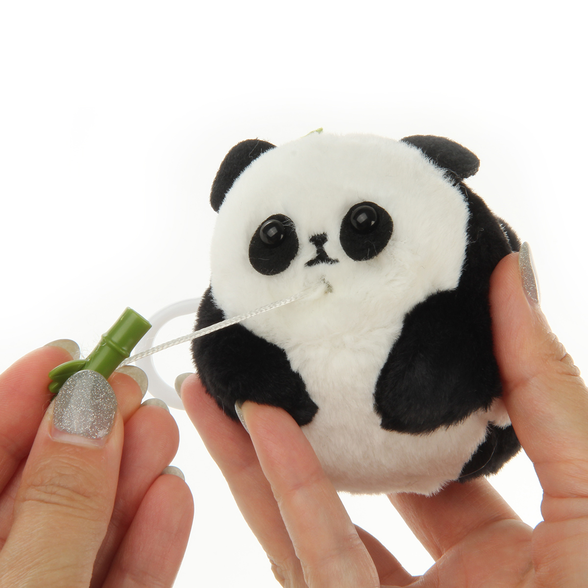 Оттягиваем бамбук возле ротика, бамбук на веревочке, отпускаем, панда вертит хвостиком на манер пропеллера. При нажатии на брюшко издает писк.
