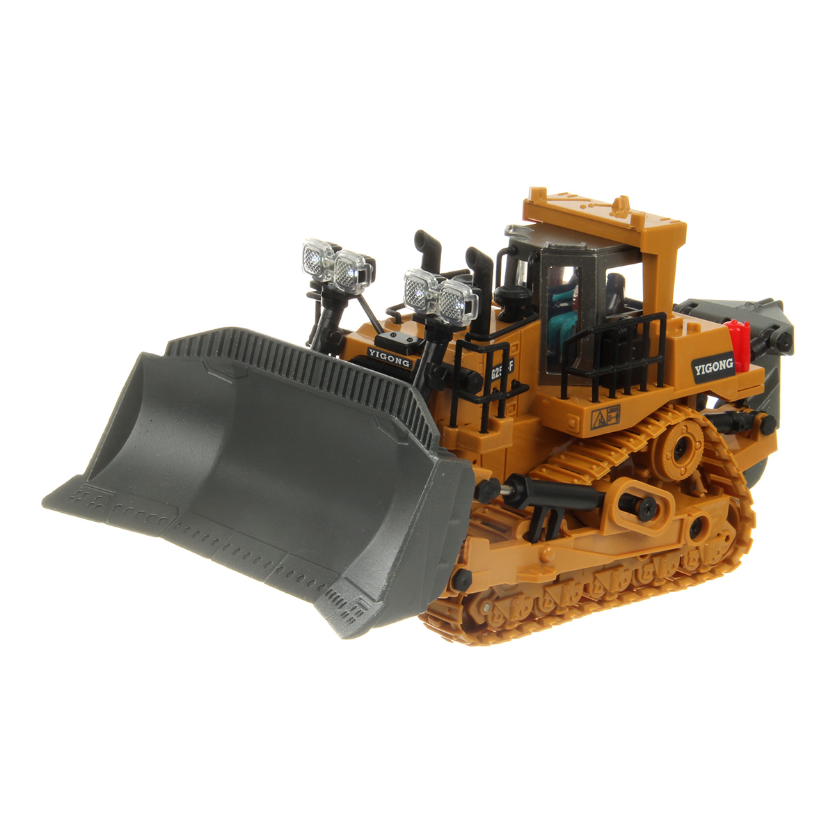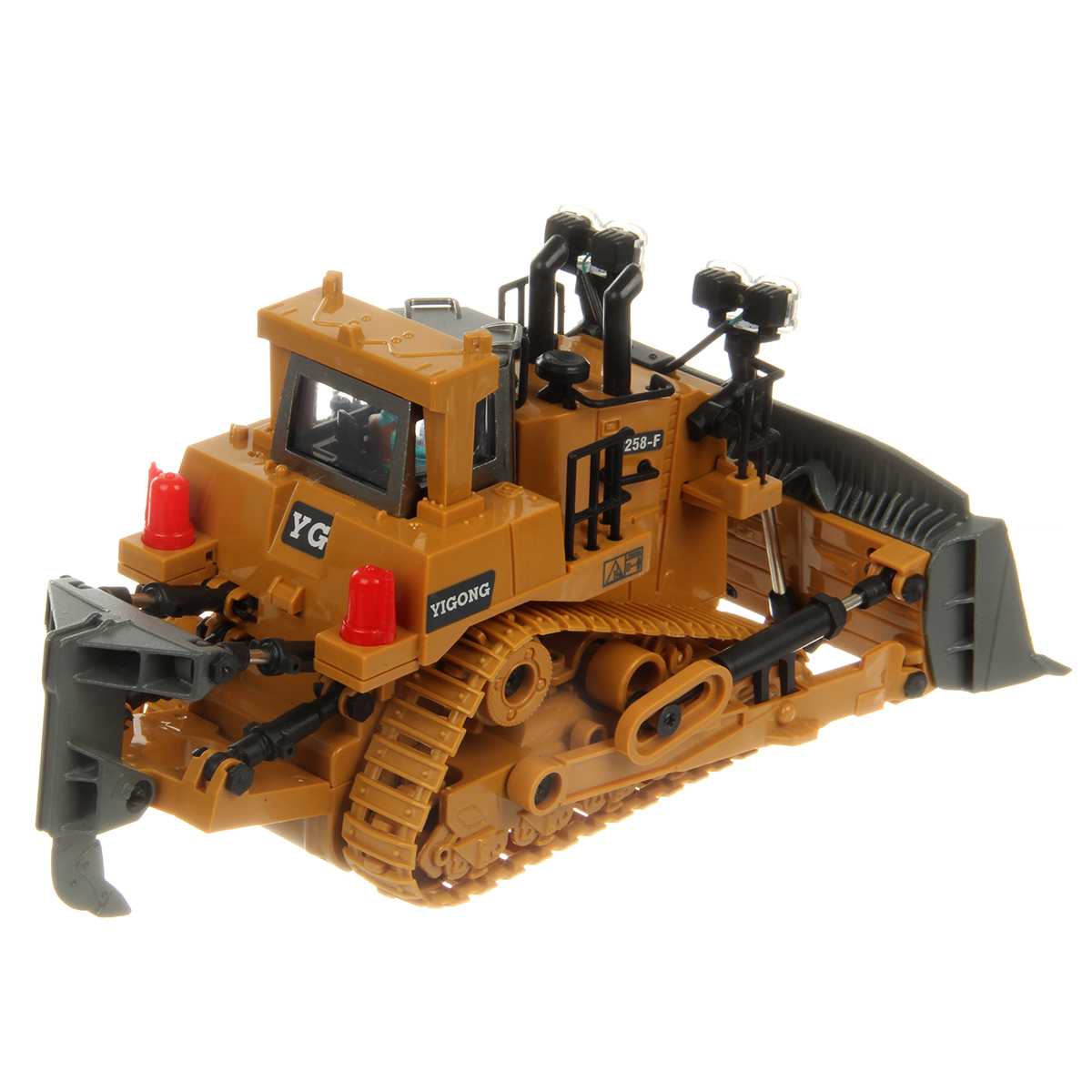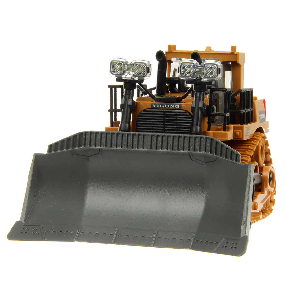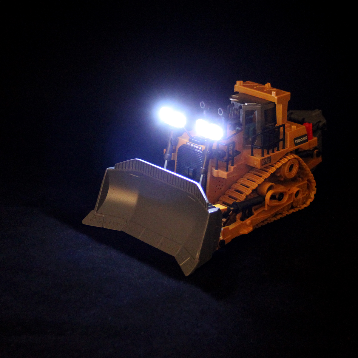 Игрушечный бульдозер имеет множество функций, катается во все стороны, поднимает отвал, эффектная подсветка фар, можно играть в темное время суток.