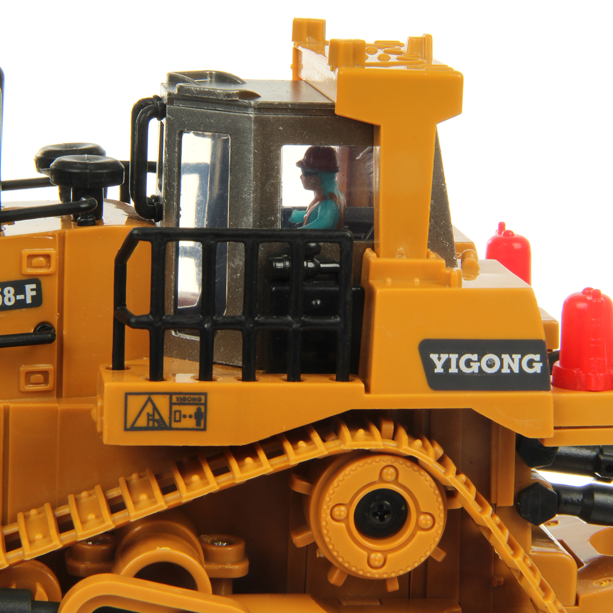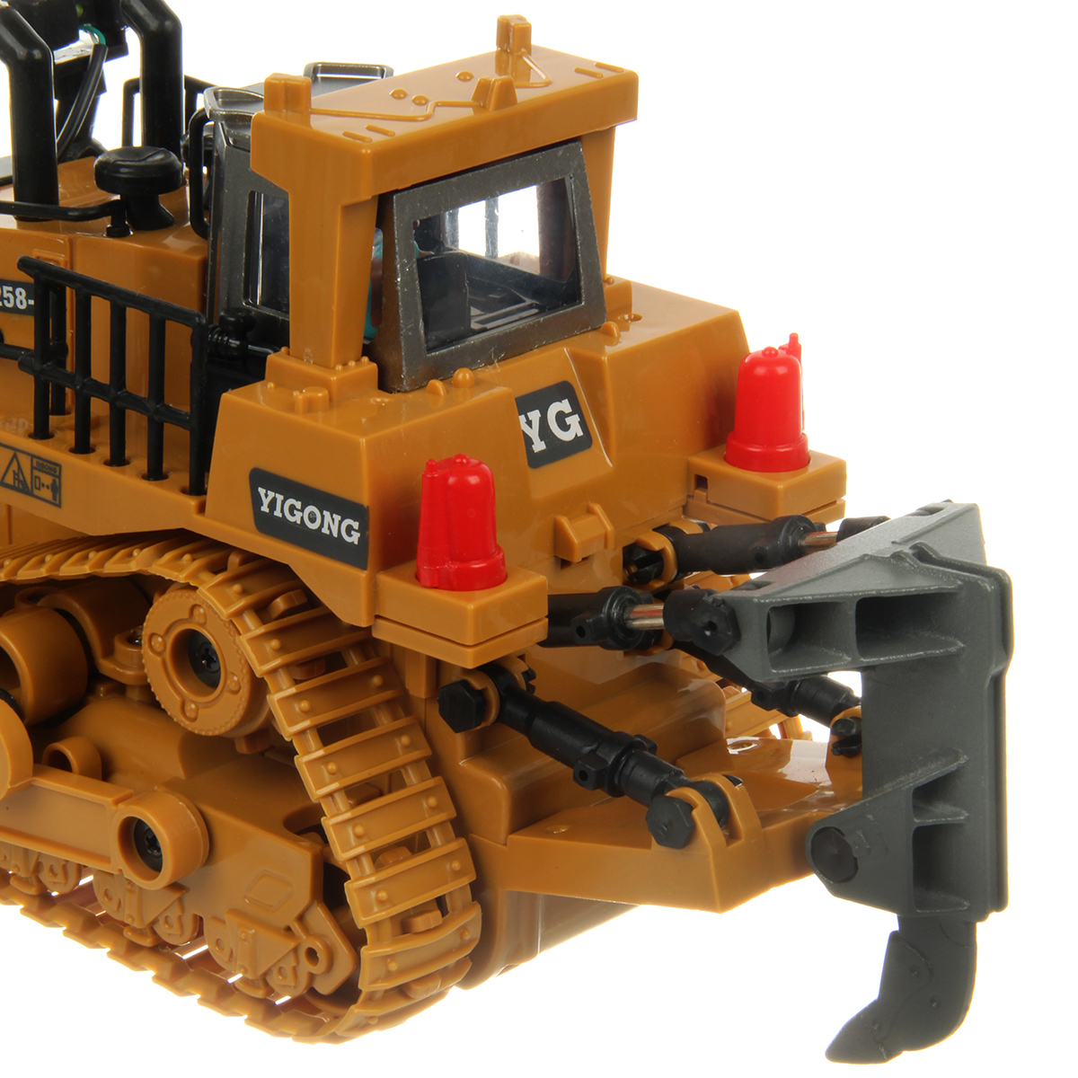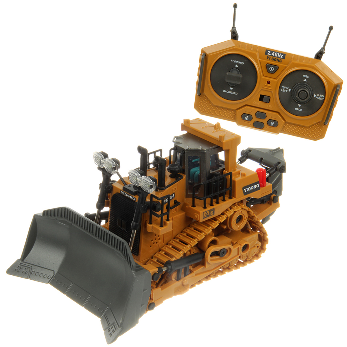 Игрушечный бульдозер имеет множество функций, катается во все стороны, поднимает отвал, эффектная подсветка фар, можно играть в темное время суток.
