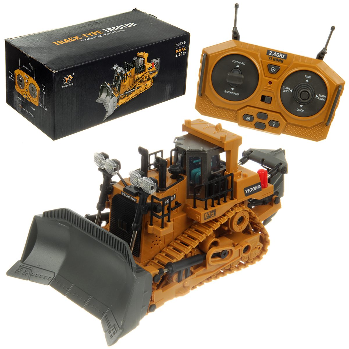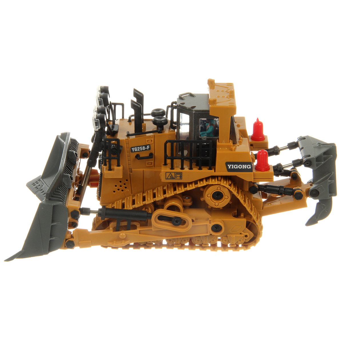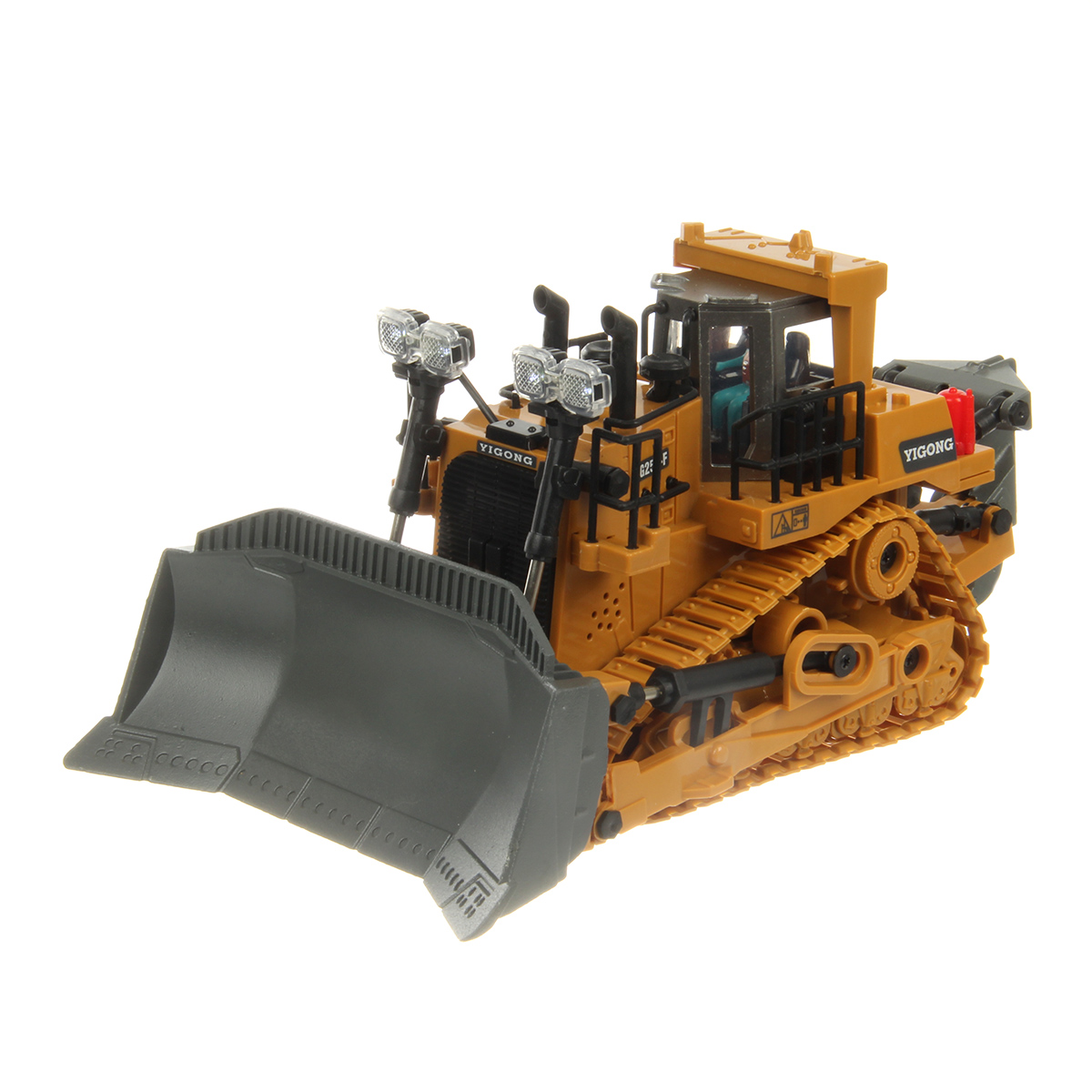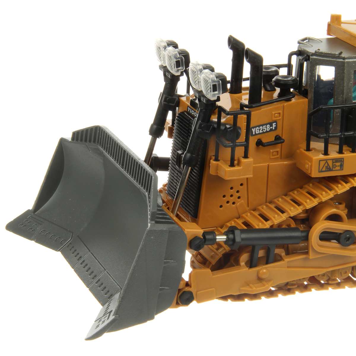 Игрушечный бульдозер имеет множество функций, катается во все стороны, поднимает отвал, эффектная подсветка фар, можно играть в темное время суток.