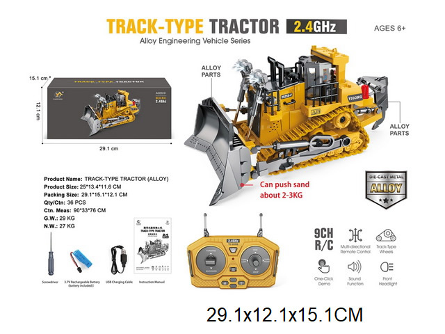 Металлические отвал и кабина, съемные гусеницы, деморежим.