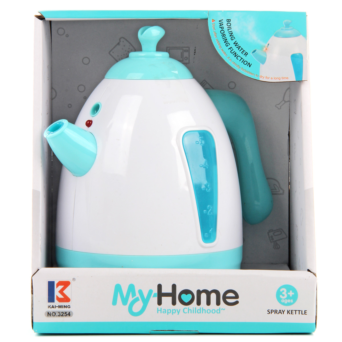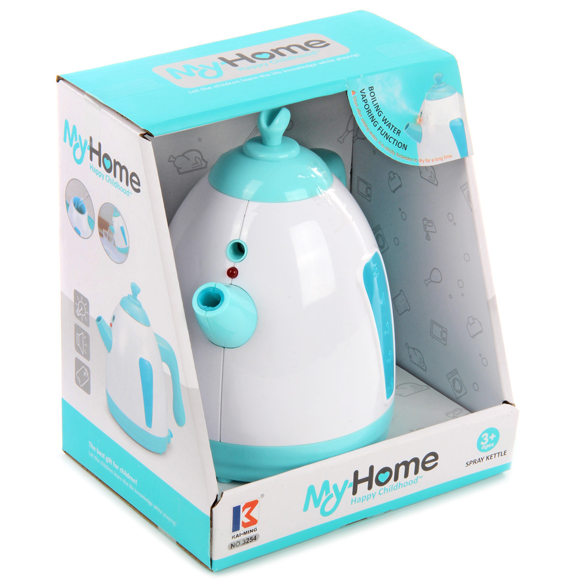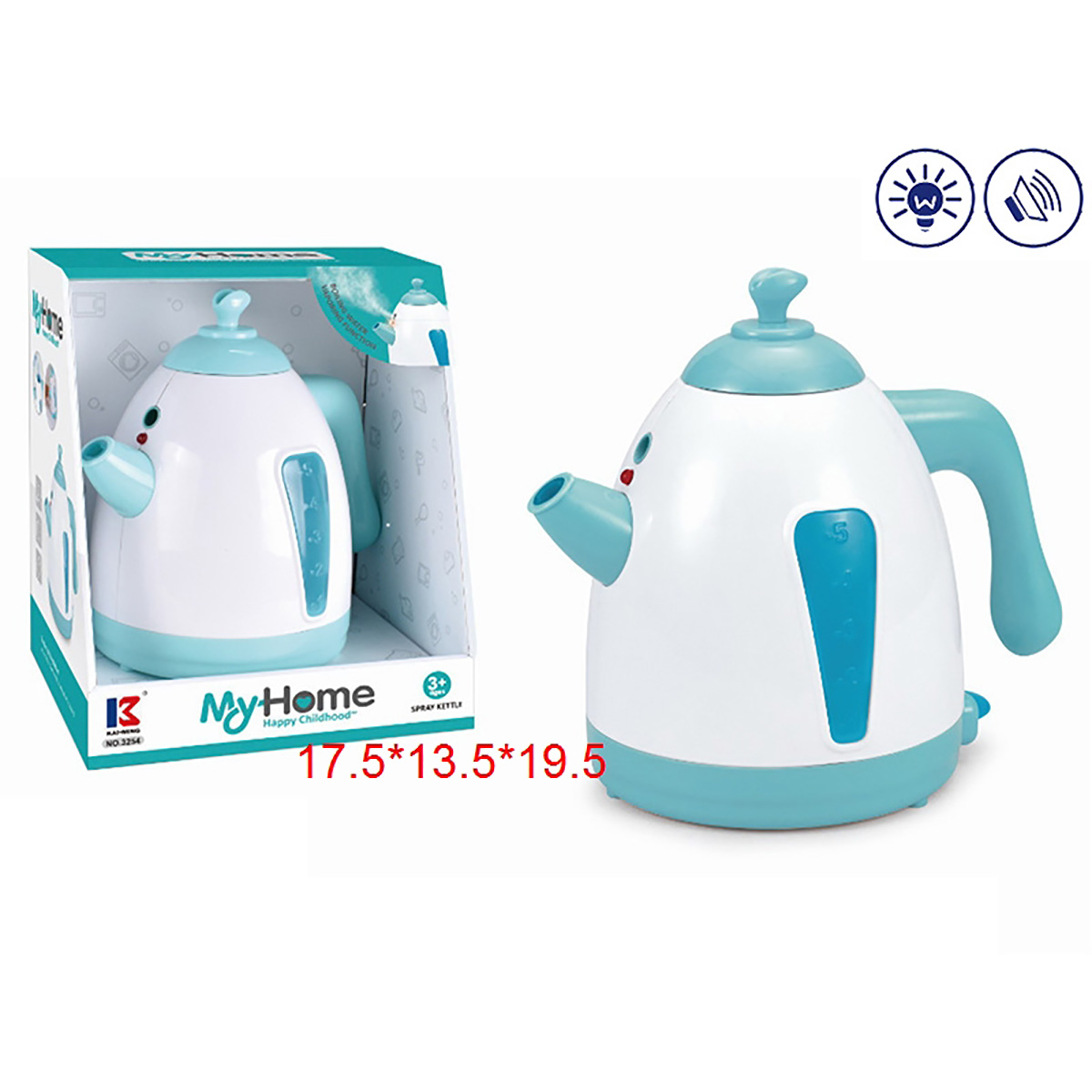Потрясающая игрушка, оформленная в реалистичном дизайне и приятной расцветке. Проста в обращении, есть звуковые и световые эффекты. Крышка снимается, внутрь чайника наливается вода. Функционал чайника: - издает звуки бульканья и закипания; - лампочка у носика чайника подсвечивается; - выпускает пар; - вода выливается из носика. Благодаря такой игрушке ребенок будет с удовольствием развивать мелкую моторику рук, координацию движений, воображение, слуховое и зрительное восприятие. Игрушка работает от 3 батареек АА, не входят в комплект. Игрушка изготовлена из высококачественного и безопасного полимерного материала. Размеры чайника: 18*12*16 см. Размеры коробки: 17*14*20 см.