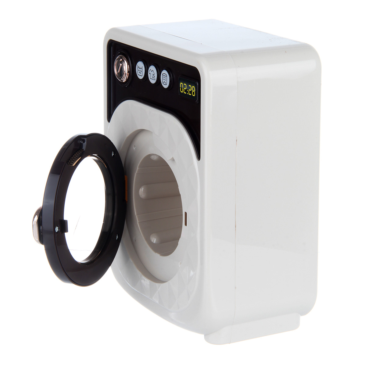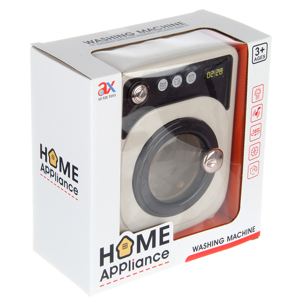 Детская игрушка стиральная машина с эффектной подсветкой барабана и звуком работающей техники. У игрушечной стиральной машинки есть подвижные элементы, крутится имитация стекла дверцы барабана, дверца барабана открывается. Игрушка для детей выполнена в стилизованном дизайне, привлекательной расцветке, отличается компактными размерами и качественным исполнением. Игрушка бытовая техника изготовлена из прочных и долговечных материалов, поставляется в красивой упаковке.