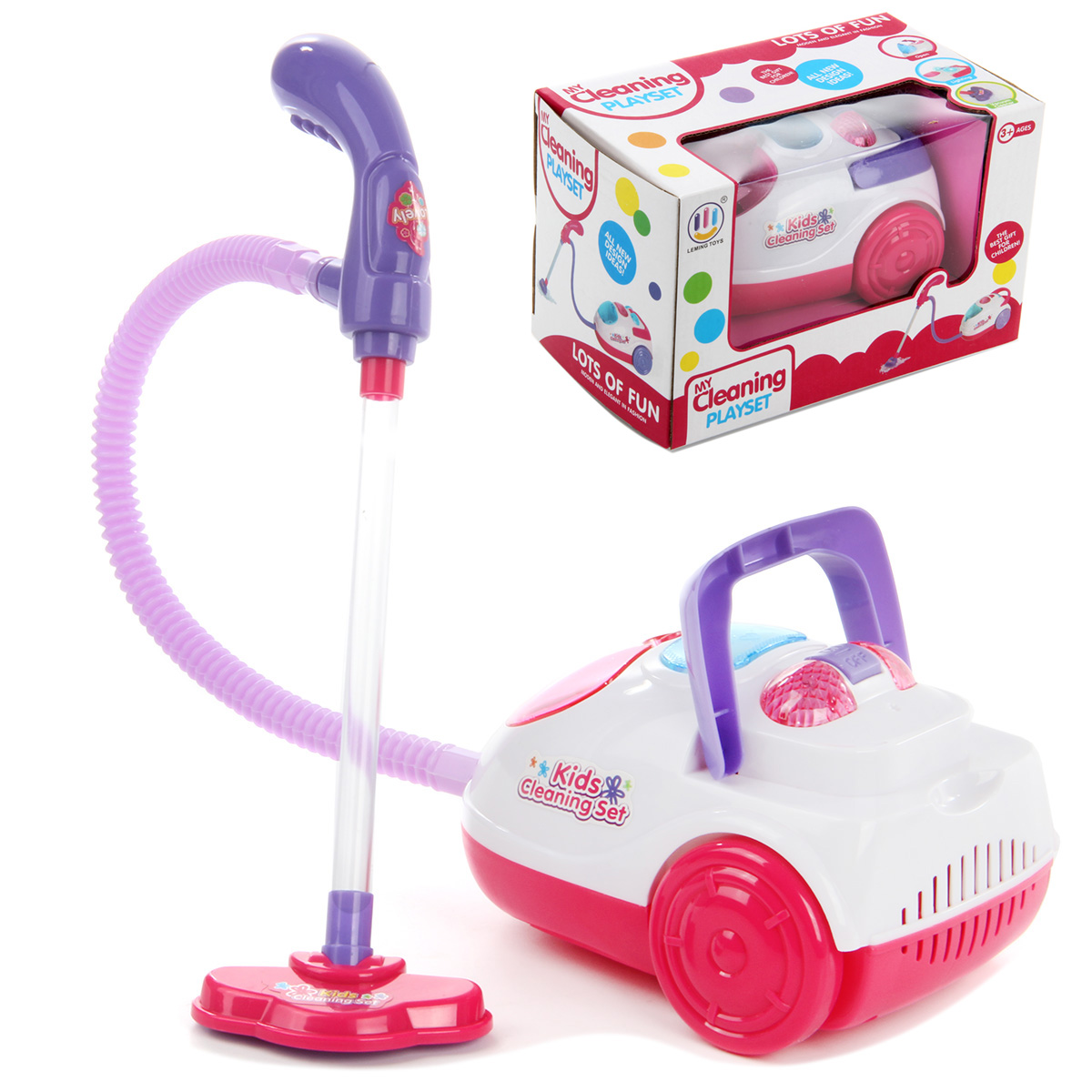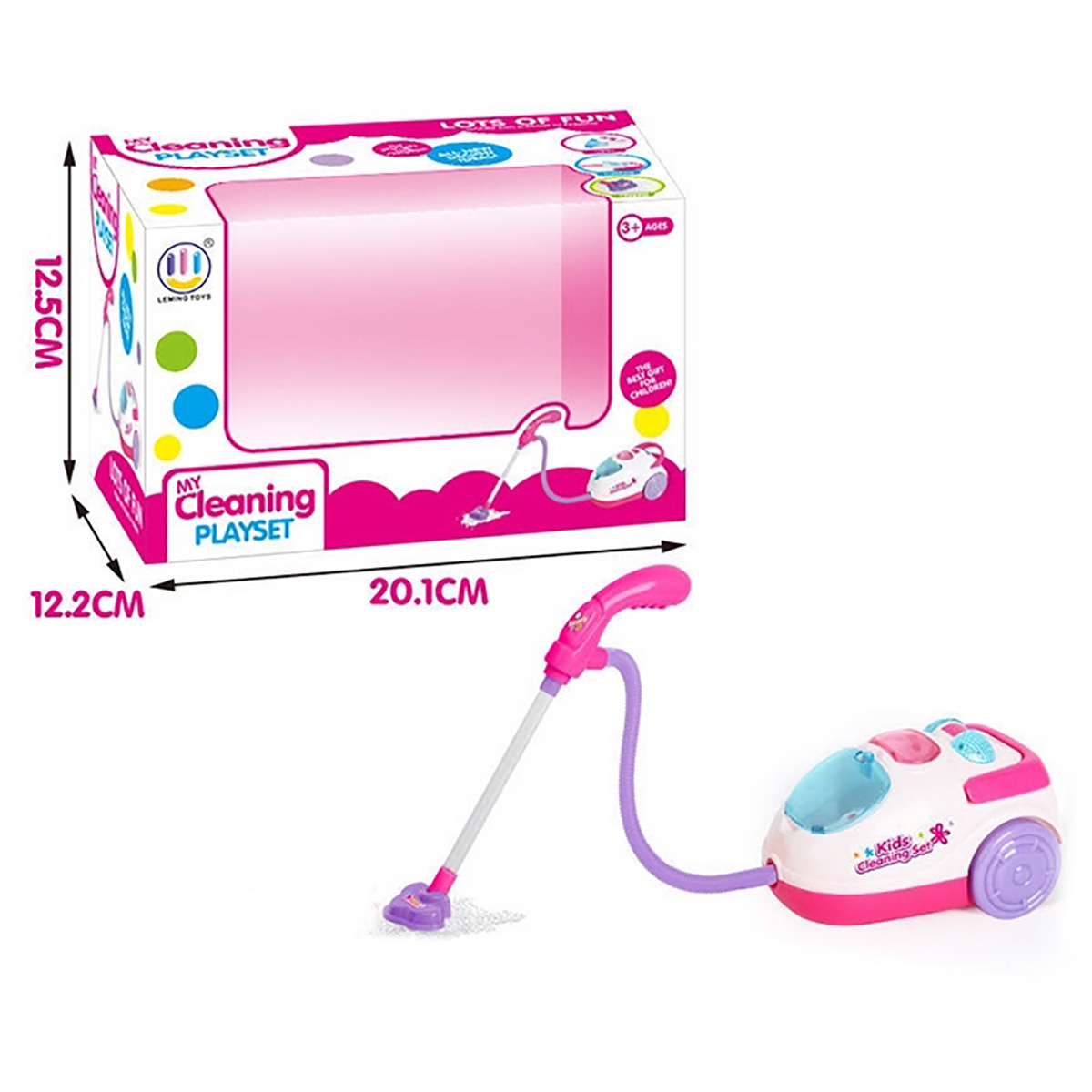 Этот игрушечный пылесос придется по душе каждой маленькой хозяюшке. Реалистичный дизайн, яркие цвета, простота использования, звуковые и световые эффекты - мечта, а не игрушка. В комплект входят пылесос и шарики-имитация мусора. Функционал пылесоса: - издает звук работы настоящей техники; - собирает шарики-имитацию мусора с пола; - розовые отсеки подсвечиваются; - пылесос катается вперед-назад; - отсеки с мусором открываются. Благодаря такой игрушке ребенок будет с удовольствием развивать мелкую и крупную моторику, координацию движений, слуховое и зрительное восприятие, воображение, научится соблюдать порядок у себя в комнате. Пылесос работает от 2 батареек АА, не входят в комплект. Игрушка изготовлена из качественного и безопасного полимерного материала. Размеры пылесоса: 15*11*9 см. Длина трубки: 50 см. Размеры коробки: 20*12*13 см.
