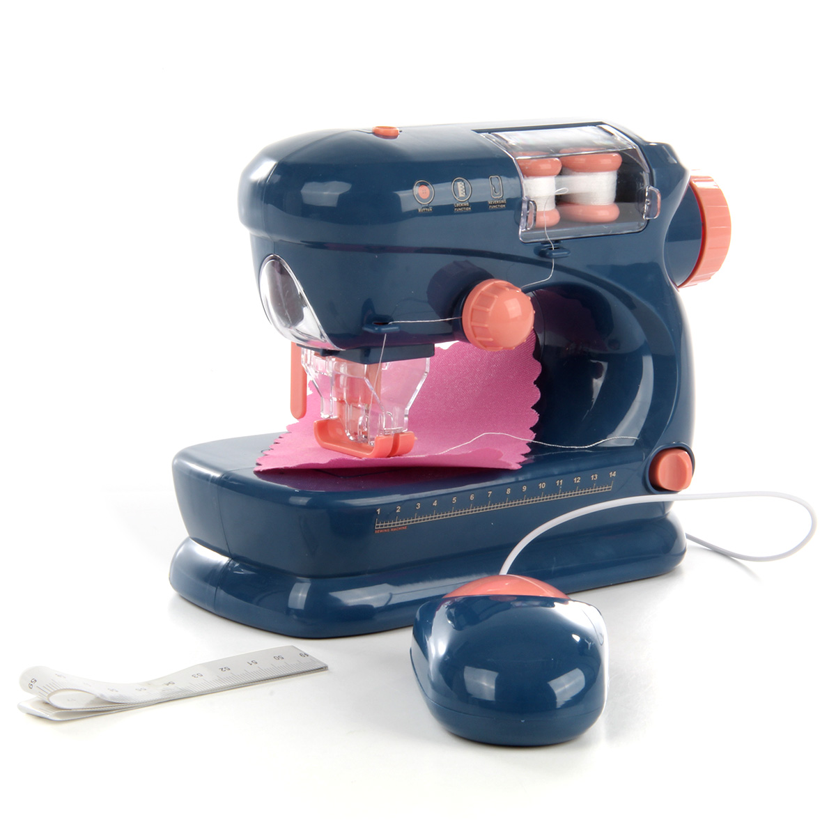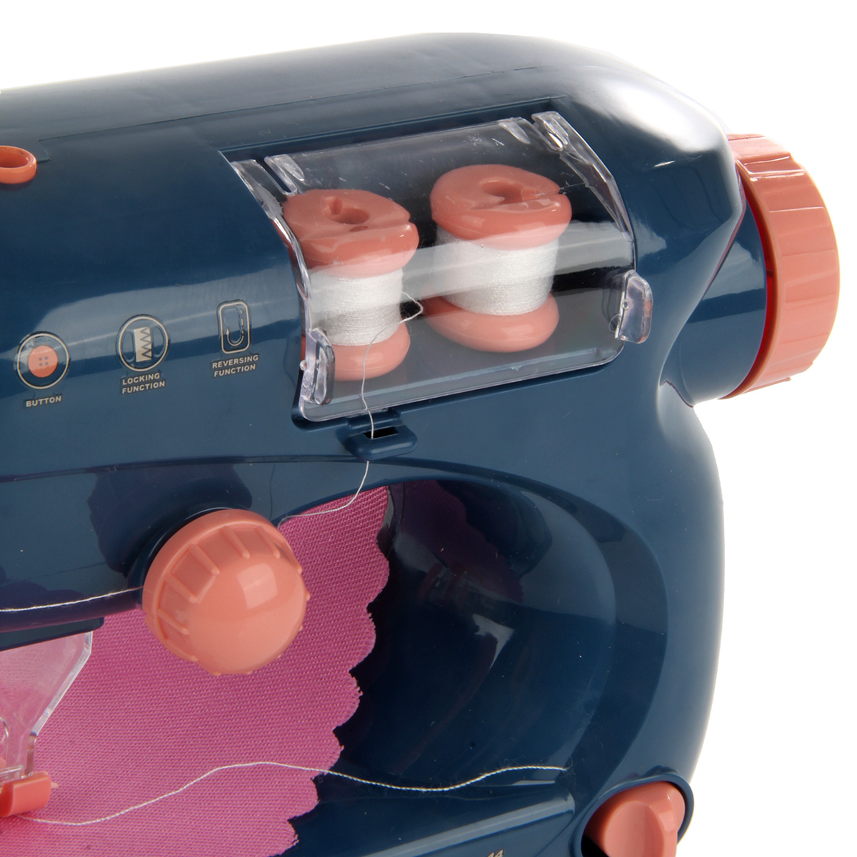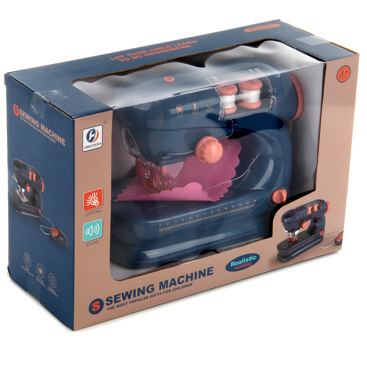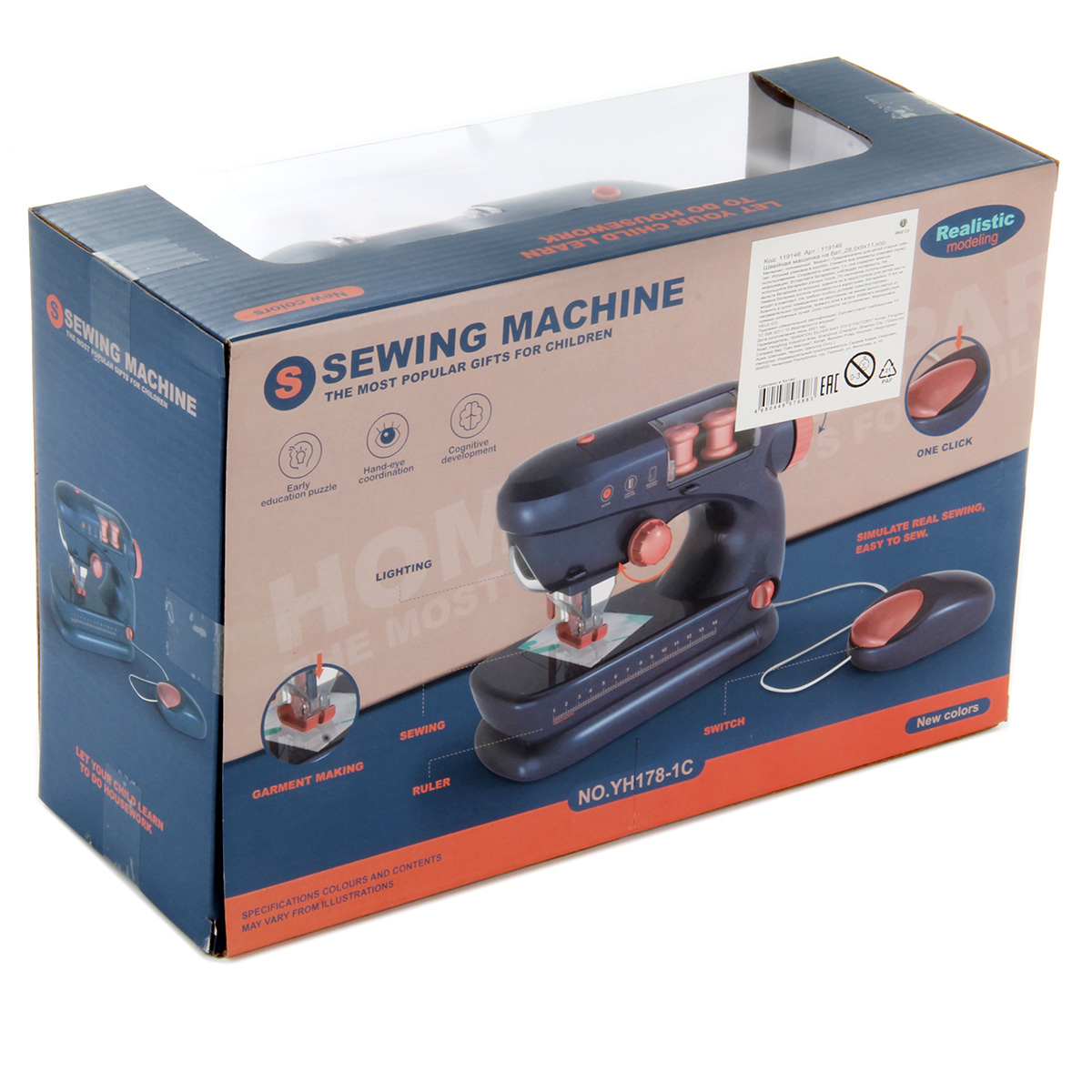 Игрушка бытовая техника в красивой расцветке. Швейная машинка умеет делать строчку, проигрывает мелодию и имеет эффектную подсветку. Игрушка на батарейках с защитой для пальцев, безопасно для ребенка, съемные катушки ниток. Детская игрушка изготовлена из прочных и долговечных материалов, станет замечательным подарком для детей на Новый год и День рождения.