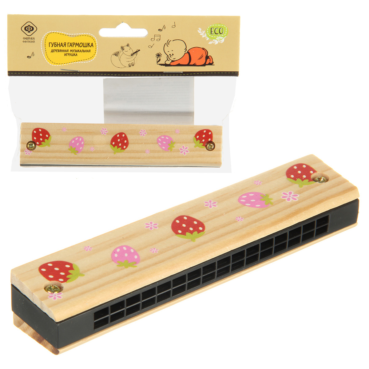 Губная гармошка - легкий и удобный в обращении музыкальный инструмент, выполненный в яркой расцветке, не оставит равнодушным ни одного малыша. Играть на гармошке следует, как на обычном инструменте, будет издавать соответствующий звук. Игрушка развивает слух, чувство ритма и музыкальное восприятие, координацию движений и мелкую моторику рук. Помогает детям тренировать память и концентрацию внимания. Игрушка изготовлена из экологически чистого и долговечного материала - дерева, деревянные детали гладко отшлифованы, не имеют острых углов, сколов и зазубрин. Есть элементы металла. Упакована в пакет с картонным хедером с отверстием. Размеры игрушки: 13*2,5*3 см. Размеры игрушки в упаковке: 16*2,5*11 см.