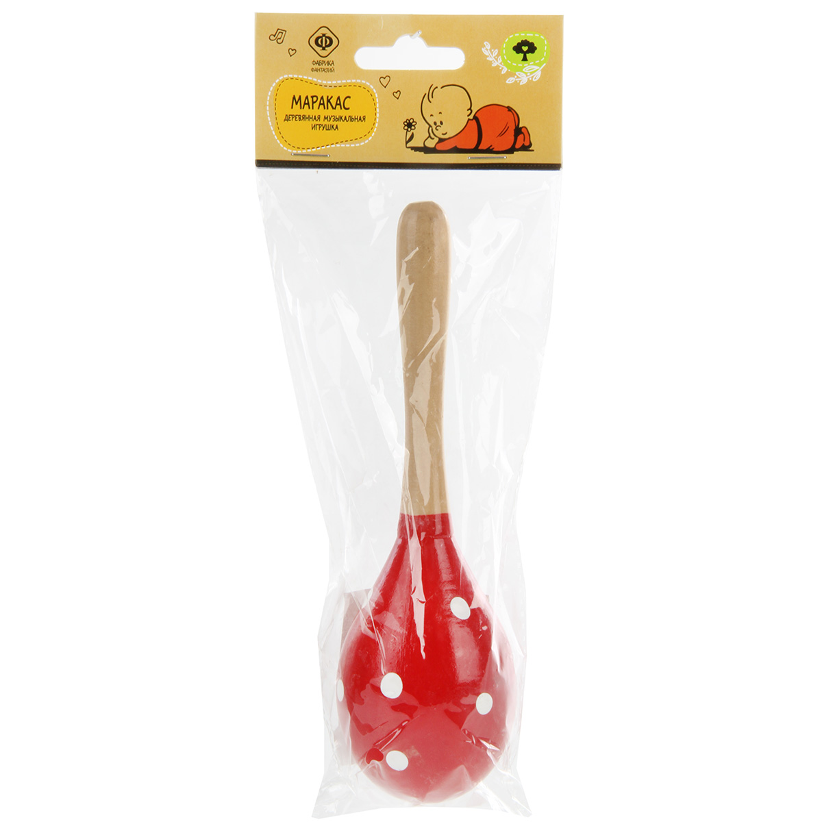 Маракас - удобный в обращении музыкальный инструмент, выполненный в яркой расцветке, не оставит равнодушным ни одного малыша. Играть на маракасе следует, как на обычном инструменте (взяв в руку, встряхивать его), маракас будет издавать соответствующий звук. Игрушка развивает слух, координацию движений, мелкую моторику рук и концентрацию внимания. Игрушка изготовлена из экологически чистого и долговечного материала - дерева. Деревянные детали гладко отшлифованы, не имеют острых углов, сколов и зазубрин. Игрушка упакована в пакет с картонным хедером с отверстием. Размеры игрушки: 20*6*6 см. Размеры игрушки в упаковке: 10*6*23 см.