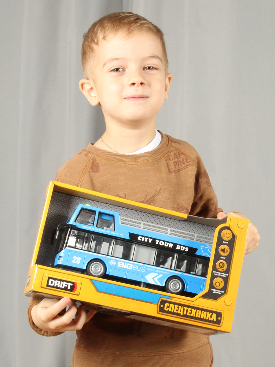 Детский игрушечный автобус со светом, звуком и фрикционным механизмом станет замечательным дополнением в коллекцию городского транспорта. Изготовлен из прочных и долговечных материалов. Оформлен в стилизованном дизайне и приятной расцветке. Игрушка автобус катается вперёд и назад. Коллекционная модель автобуса оснащена прорезиненными колёсами. Нажатие кнопок на крыше включает подсветку и запускает звуки общественного транспорта. Прокрутка колеса рядом с дверью открывает и закрывает дверь. Такой детский игрушечный транспорт станет замечательным подарком мальчику на новый год, день рождения, 23 февраля и на любой другой повод. Изготовлено из пластика и резины. Работает на батарейках AG13 3 шт., входят в комплект. Размеры детской игрушки 29х11х6 см. Размеры упаковки 32х12х19 см.