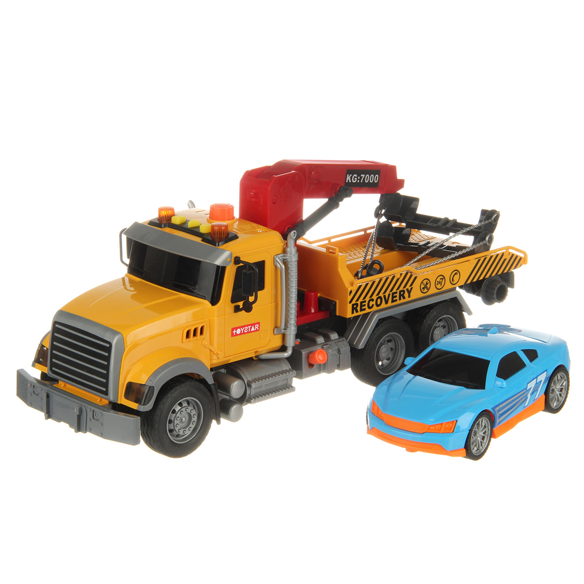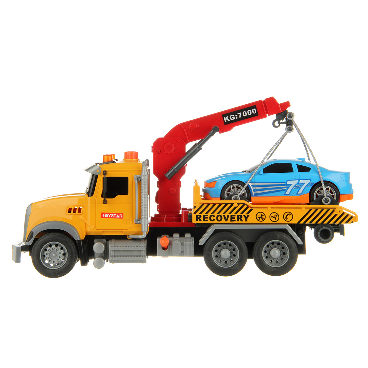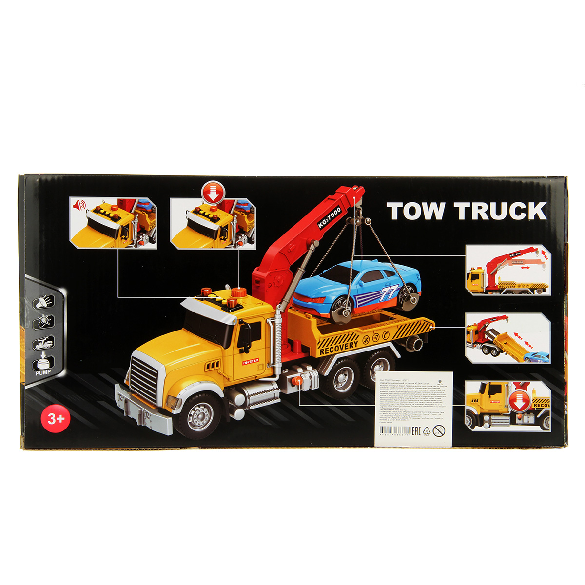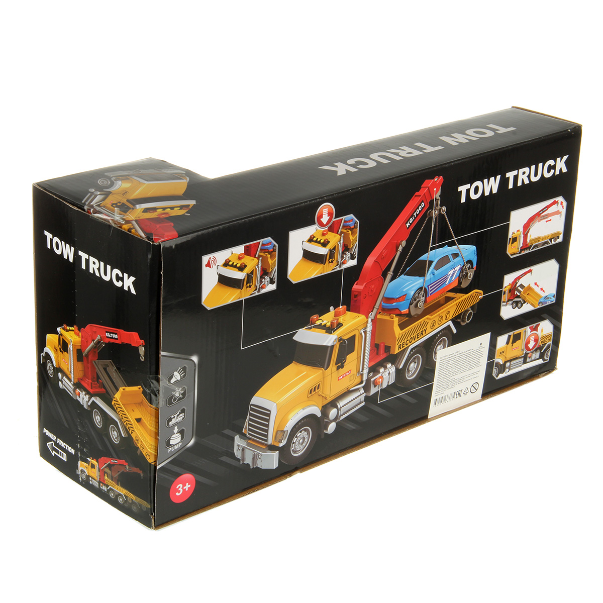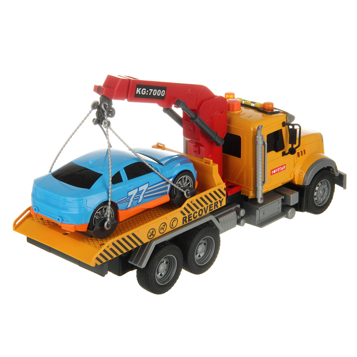 Игрушечный эвакуатор изготовлен из прочных и долговечных материалов.