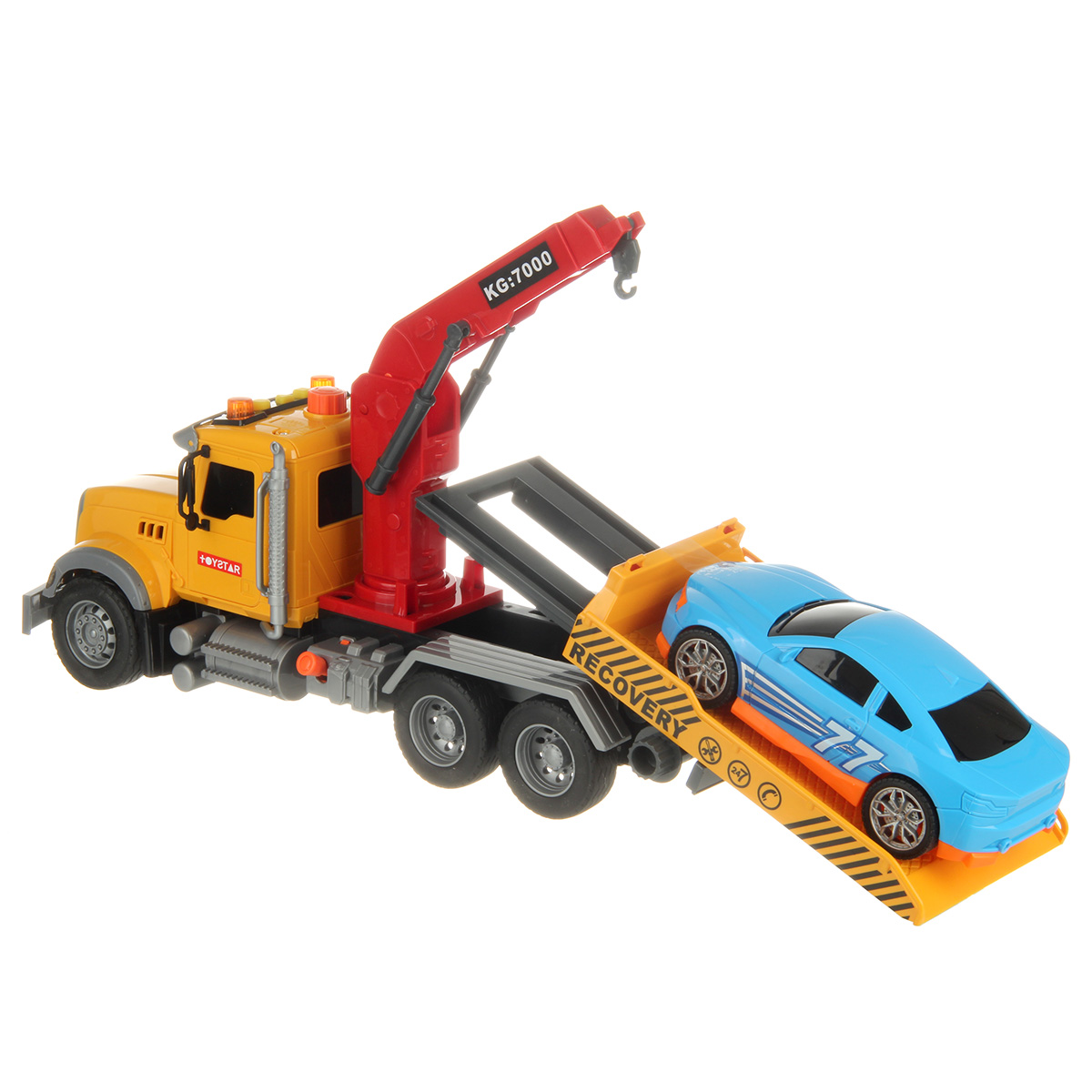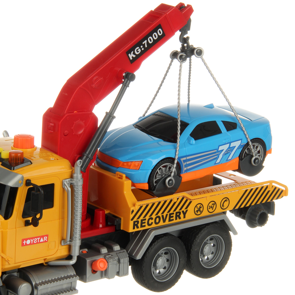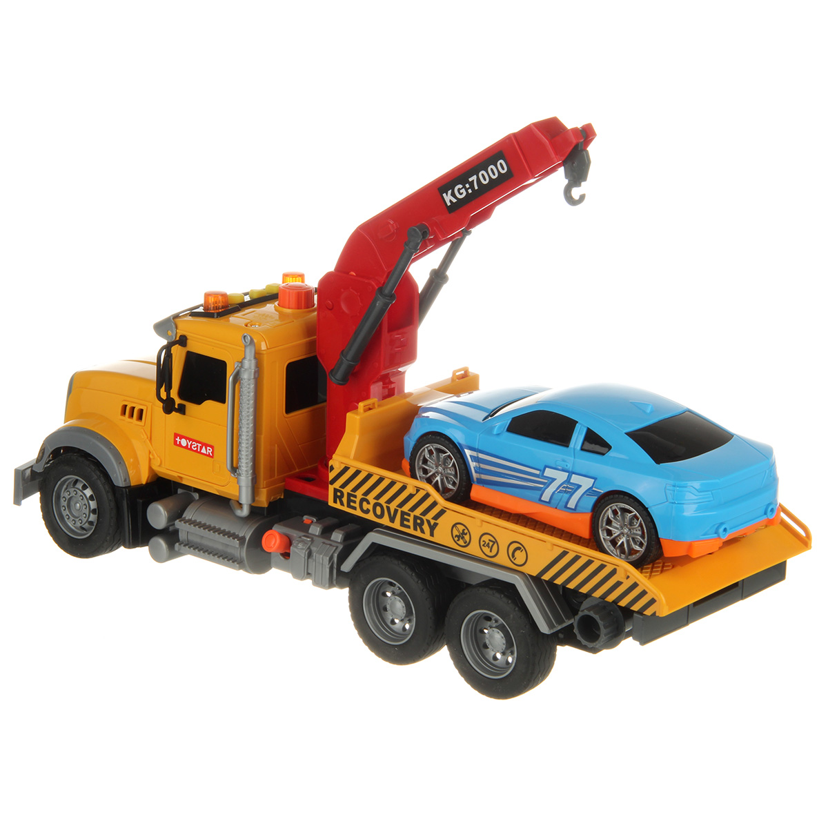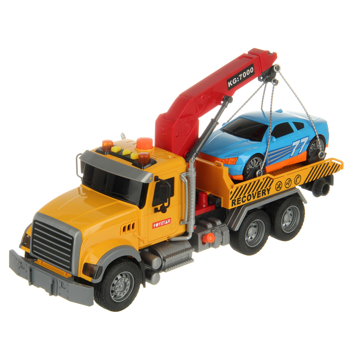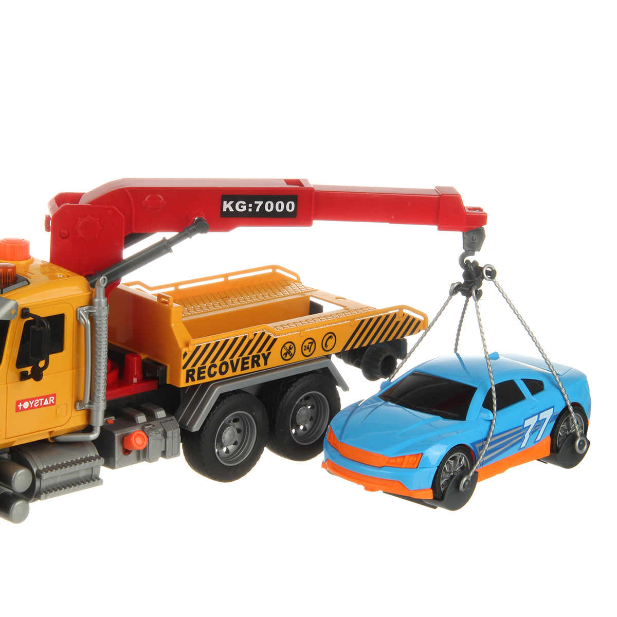 Игрушечный эвакуатор изготовлен из прочных и долговечных материалов.