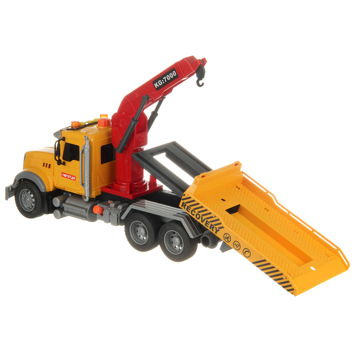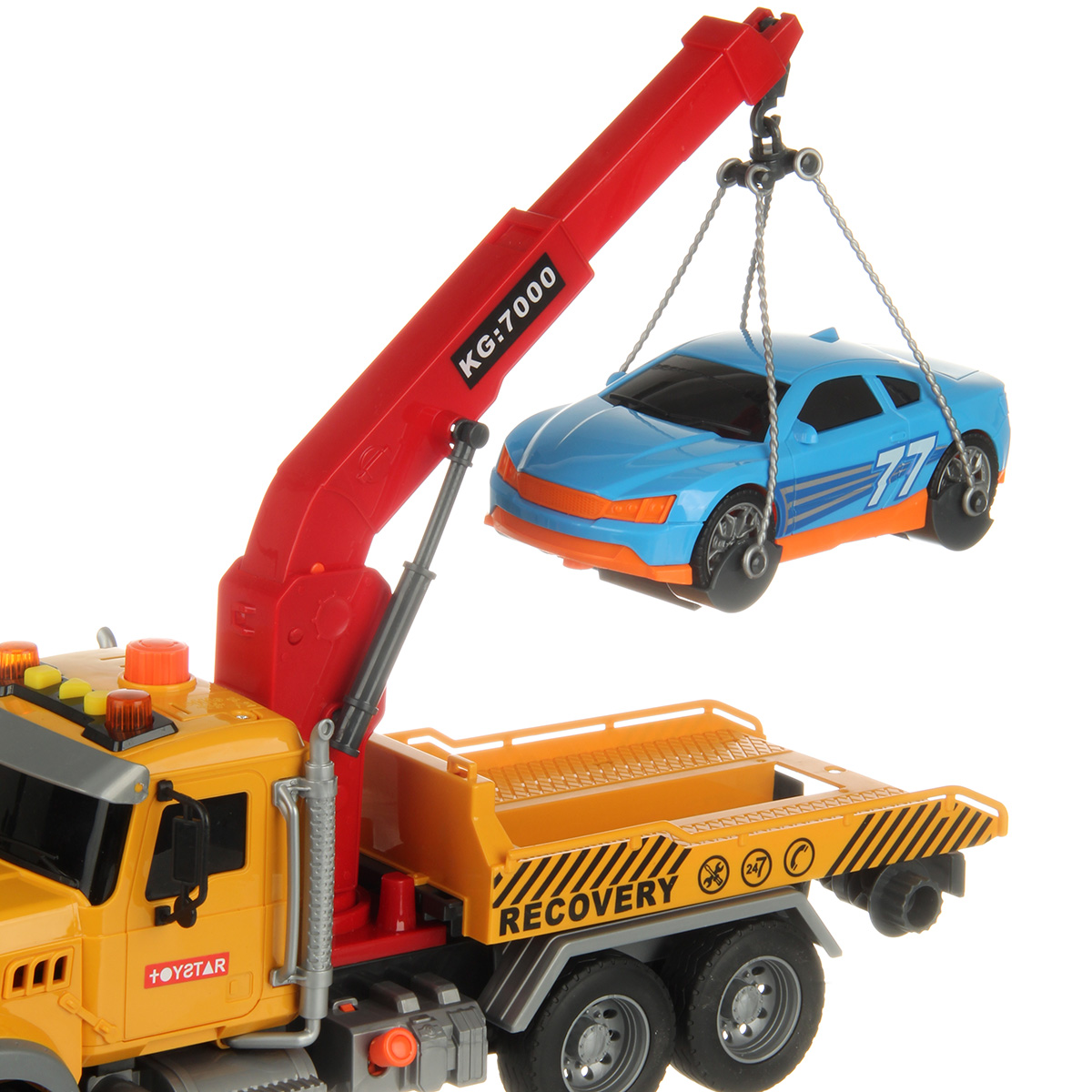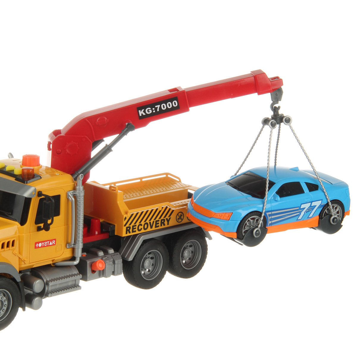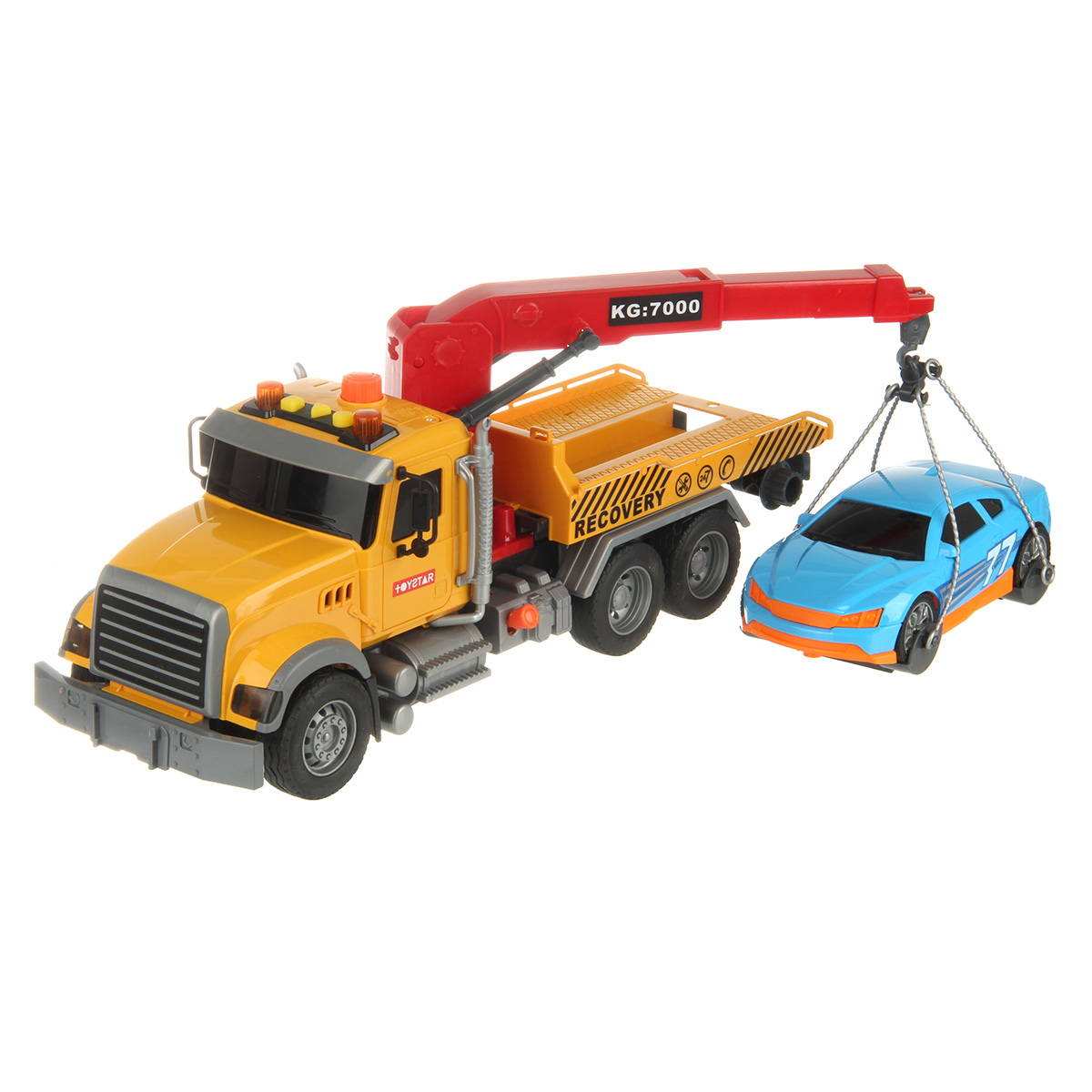 Игрушечный эвакуатор изготовлен из прочных и долговечных материалов.