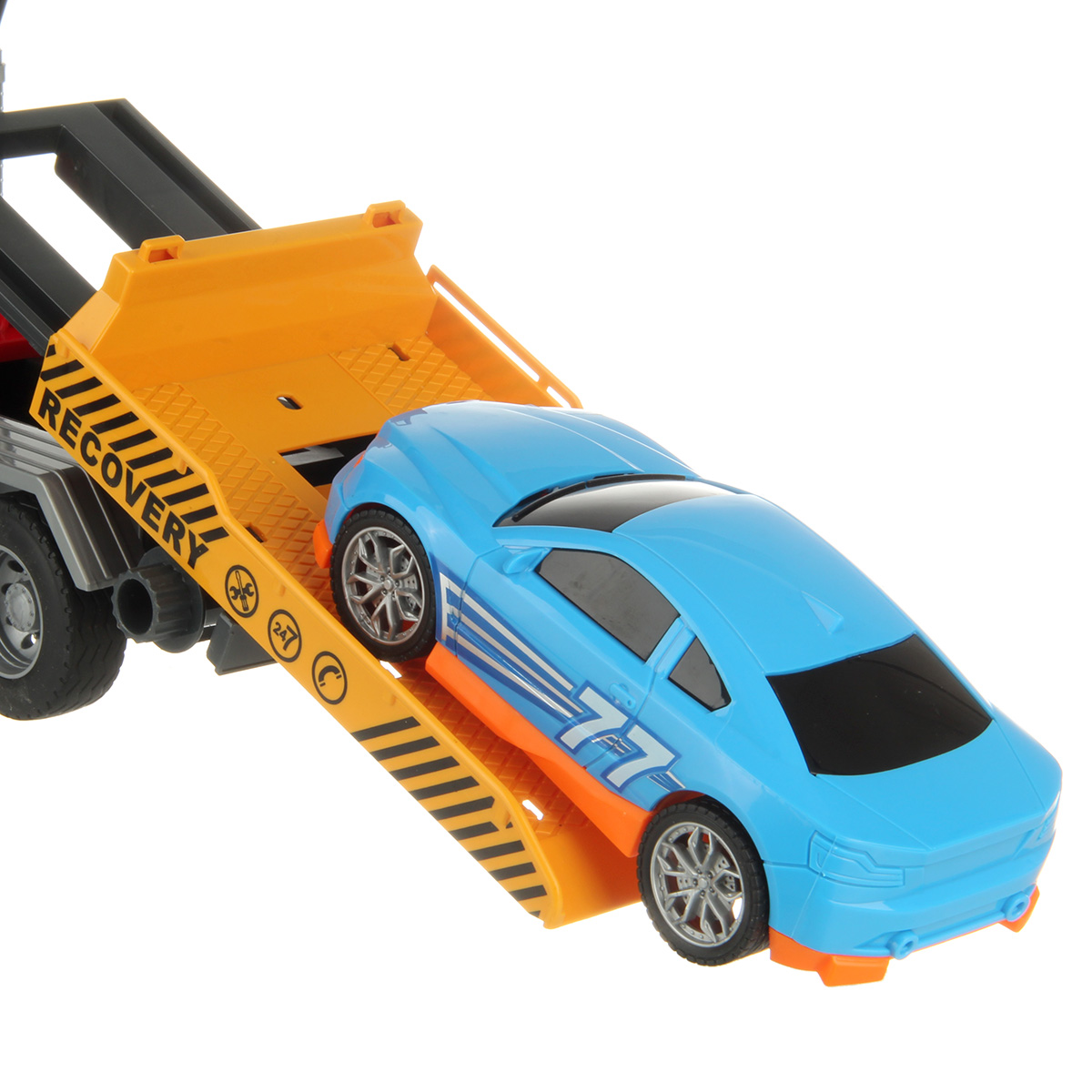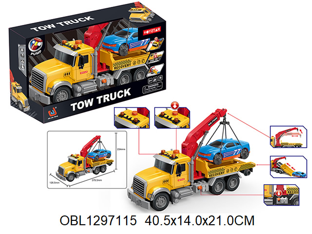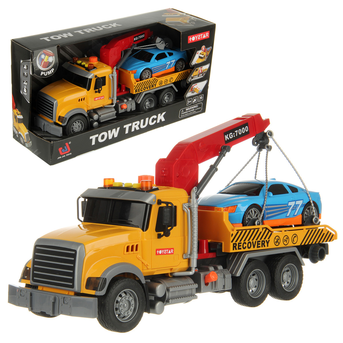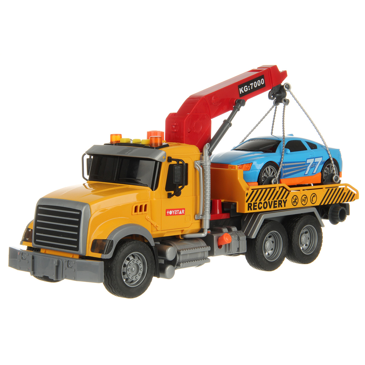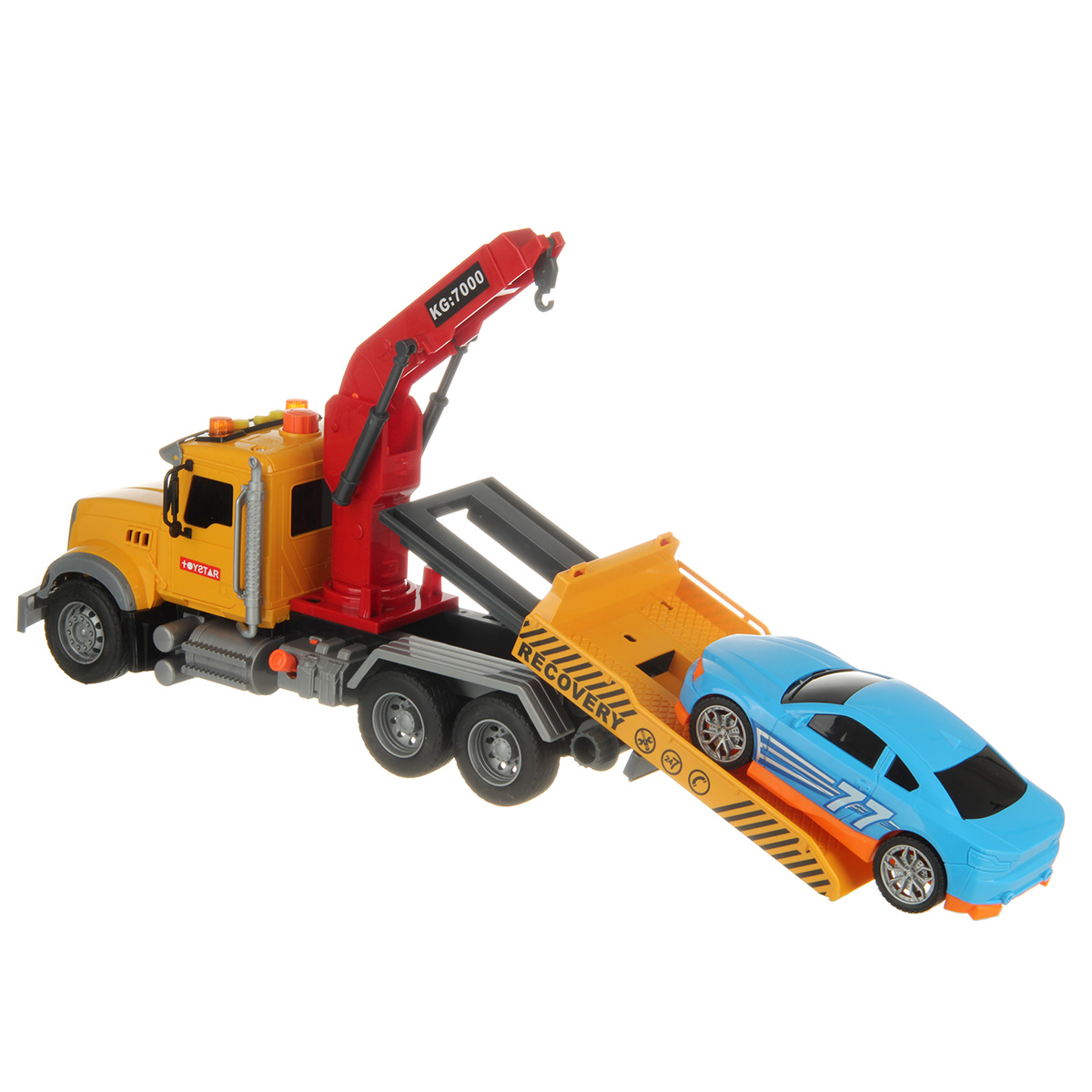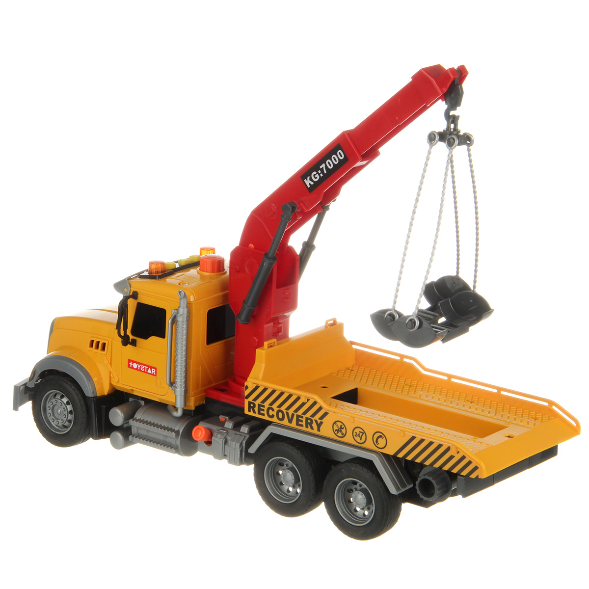 Игрушечный эвакуатор изготовлен из прочных и долговечных материалов.