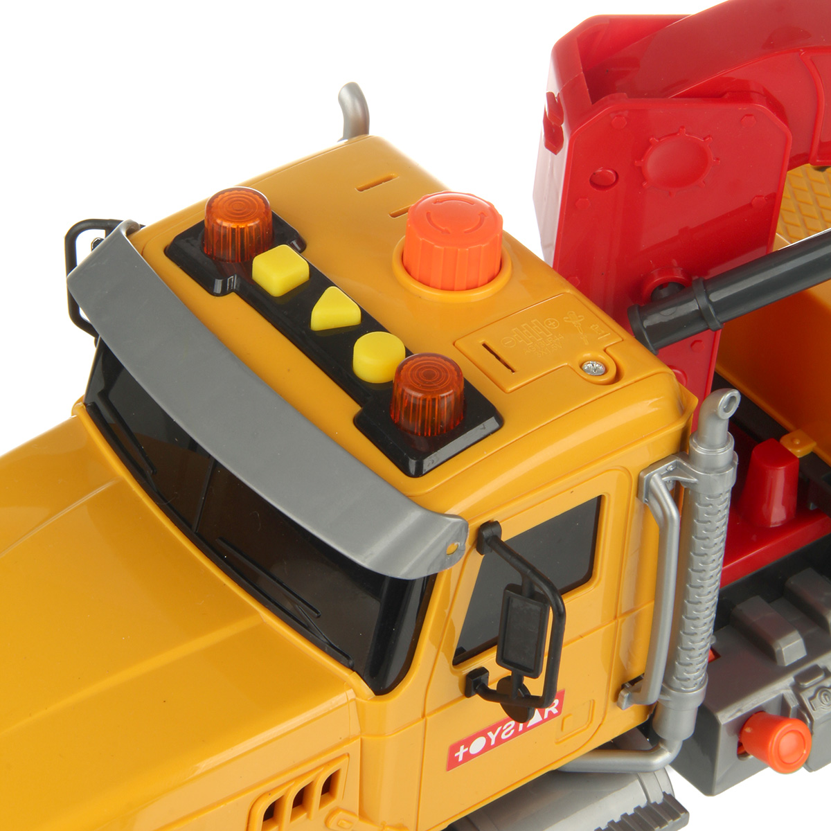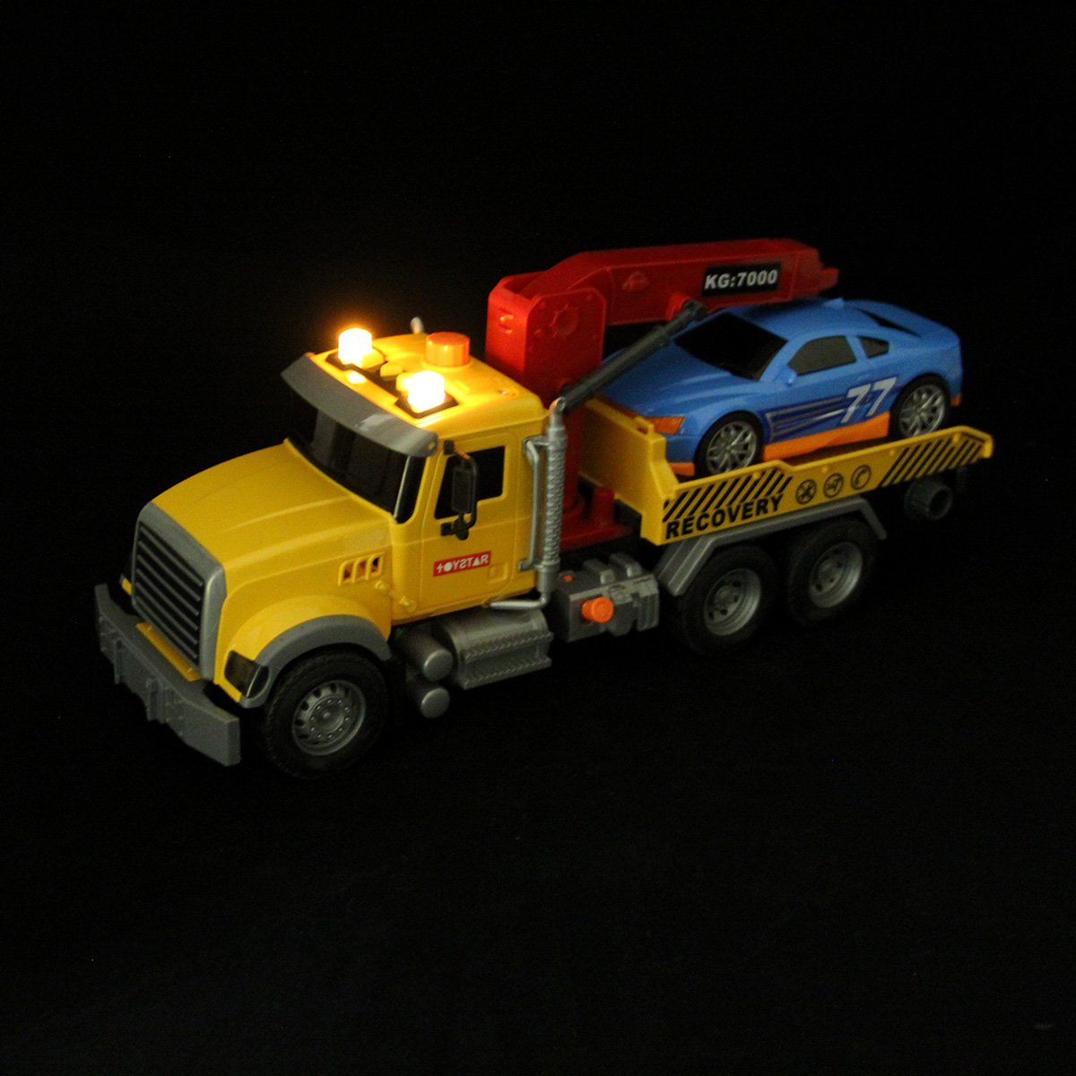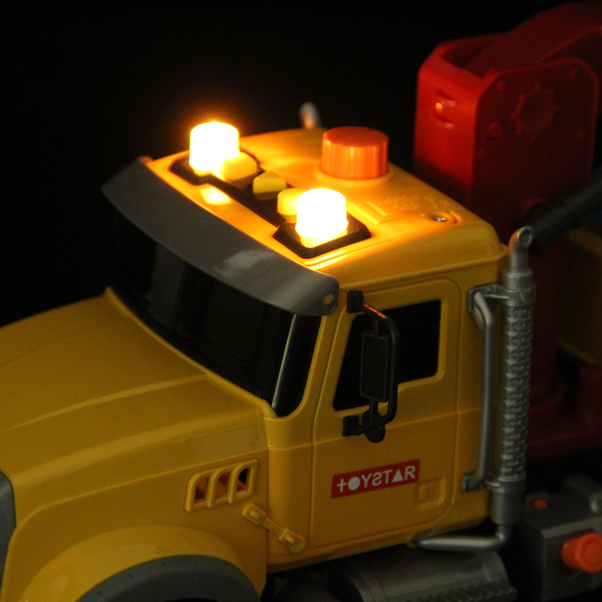 5. Звуковые и световые эффекты. При нажатии кнопок на кабине эвакуатор издает звуки гудка, заводящегося двигателя, работающего транспорта, аварийного хода, боковые лампочки подсвечиваются.