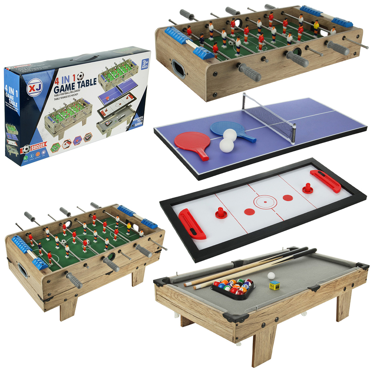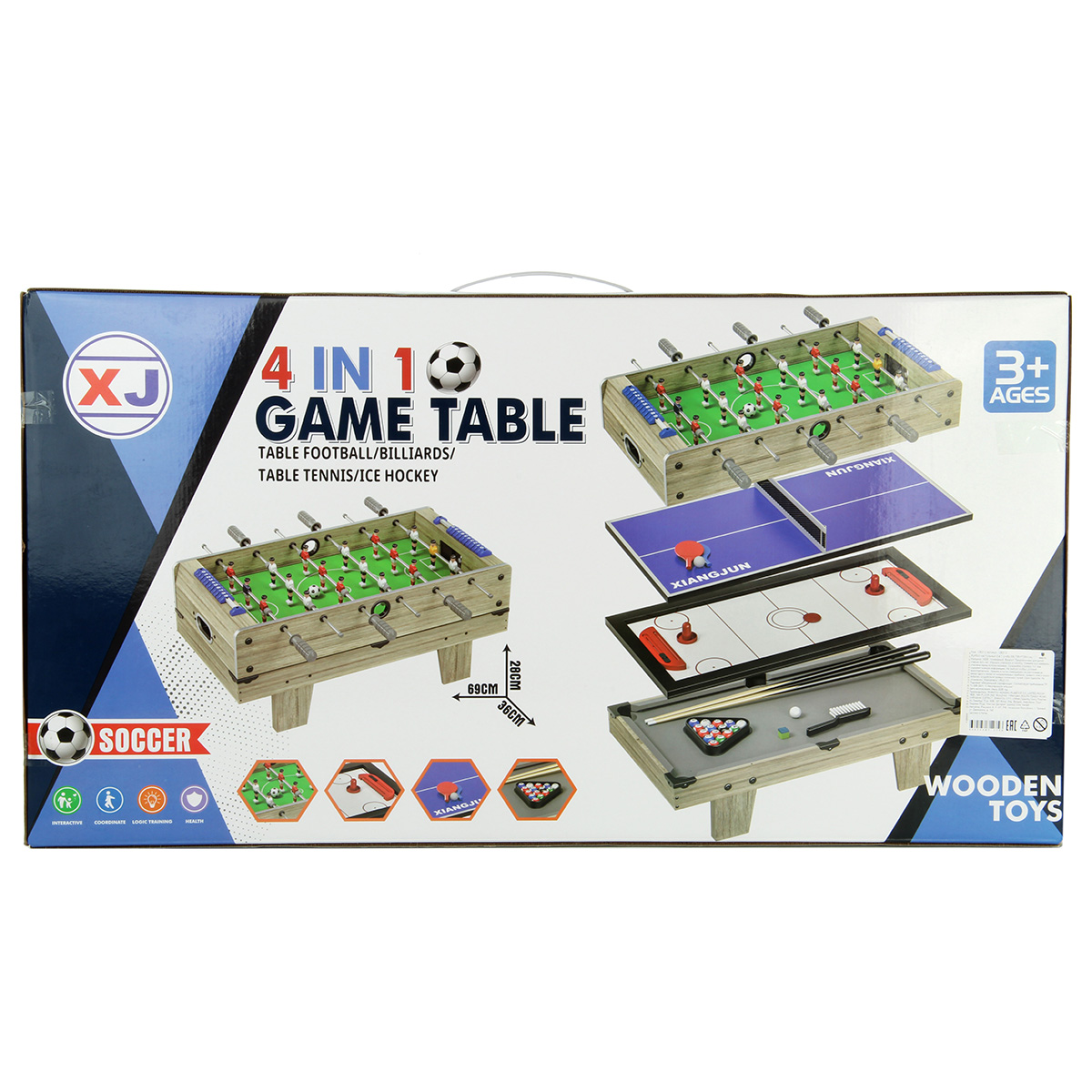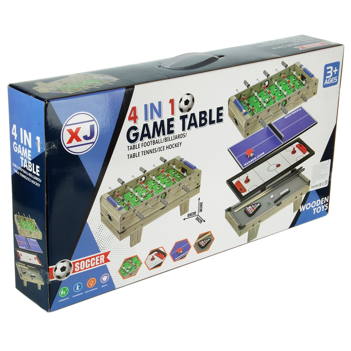 4 игры в одном наборе, детский настольный футбол, пинг понг, хоккей, мини бильярд для детей. Корпуса площадок из МДФ, подробная и понятная инструкция по сборке, все необходимые дополнительные элементы для игр в комплекте, возможность собрать футбольную игровую площадку с ножками и без ножек. Биты с защитами для пальцев, можно вести счет, текстильное покрытие бильярдного стола. Экологически чистый материал МДФ, качественное исполнение, внимание к деталям, хорошее приобретение для дома, дачи или офиса. Отличная спортивная игра для детей и для всей семьи. Помогает в развитии важных навыков, мелкой и крупной моторики, тренирует скорость реакции, концентрацию внимания. Станет замечательным подарком для детей на Новый год и День рождения.