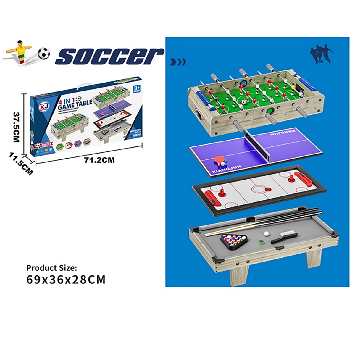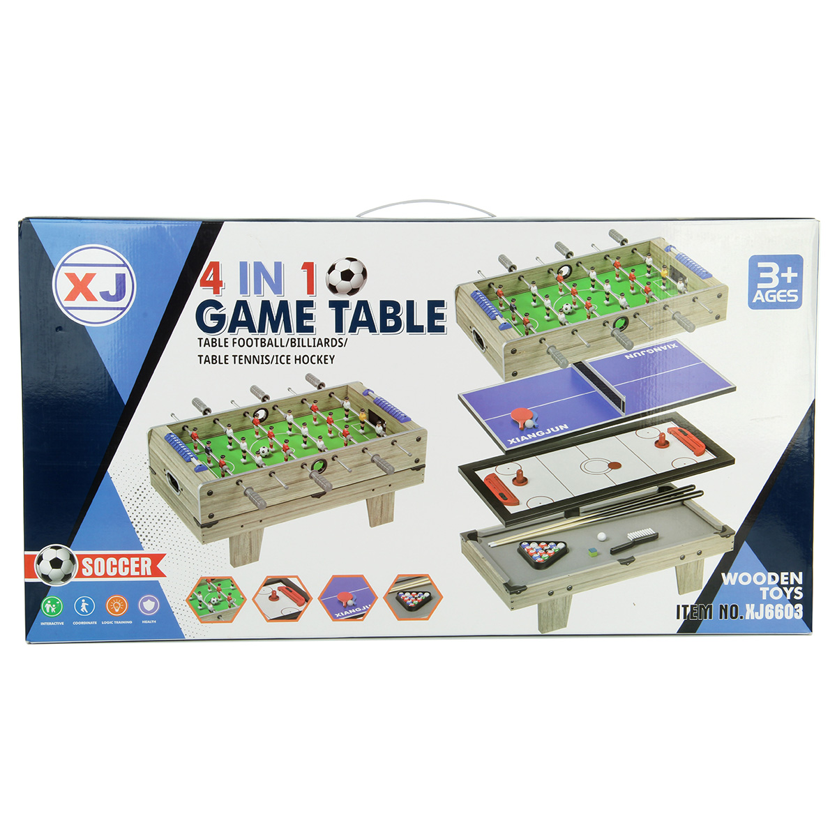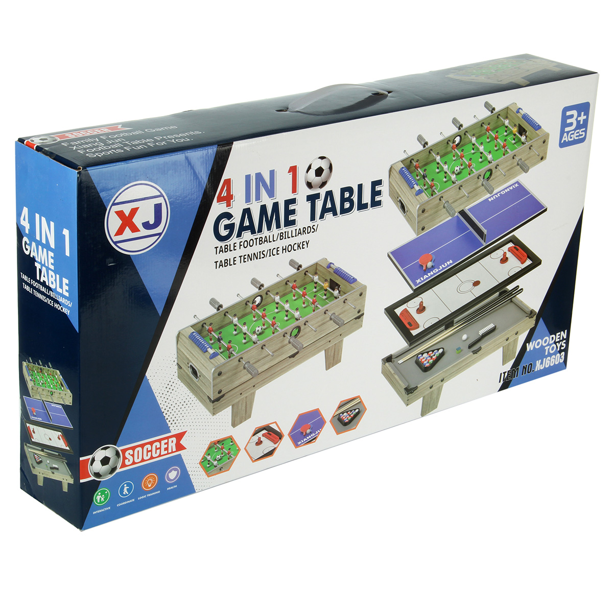4 игры в одном наборе, детский настольный футбол, пинг понг, хоккей, мини бильярд для детей. Корпуса площадок из МДФ, подробная и понятная инструкция по сборке, все необходимые дополнительные элементы для игр в комплекте, возможность собрать футбольную игровую площадку с ножками и без ножек. Биты с защитами для пальцев, можно вести счет, текстильное покрытие бильярдного стола. Экологически чистый материал МДФ, качественное исполнение, внимание к деталям, хорошее приобретение для дома, дачи или офиса. Отличная спортивная игра для детей и для всей семьи. Помогает в развитии важных навыков, мелкой и крупной моторики, тренирует скорость реакции, концентрацию внимания. Станет замечательным подарком для детей на Новый год и День рождения.