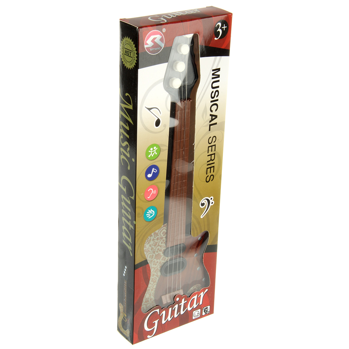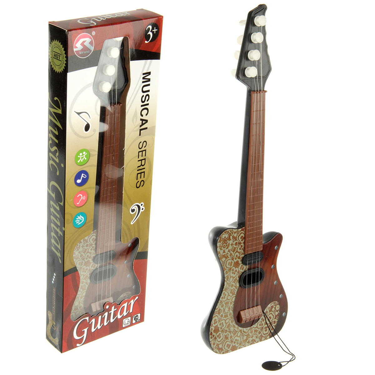 Игрушка развивает артистические способности ребенка, музыкальный слух, зрительное восприятие, внимание, память, мелкую моторику рук и координацию движений. Гитара станет хорошим подарком.