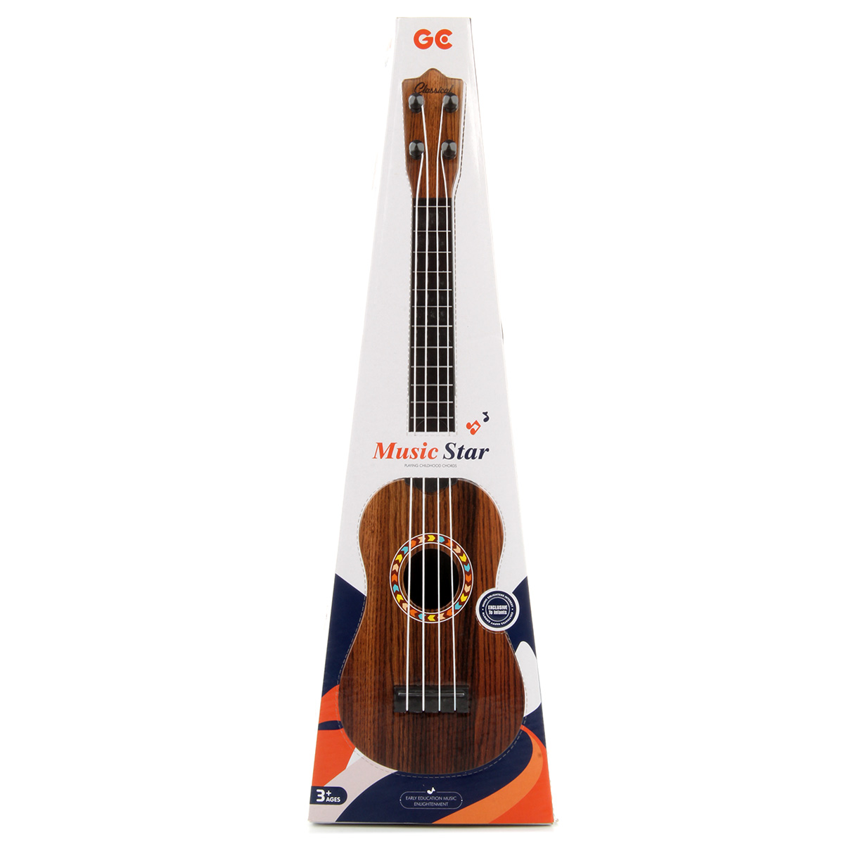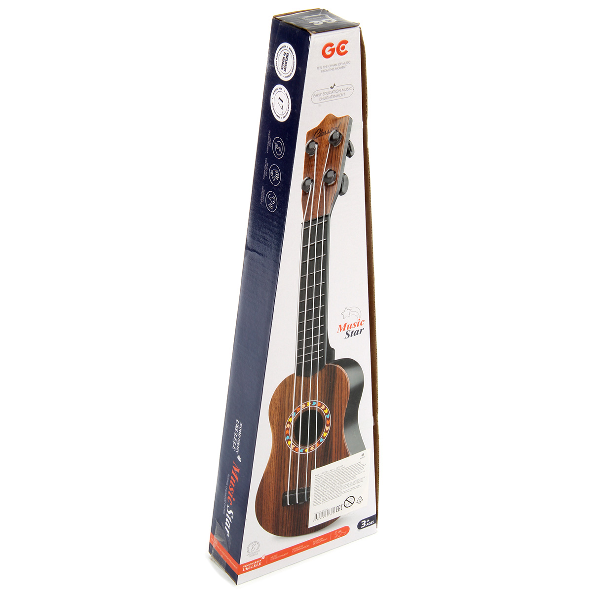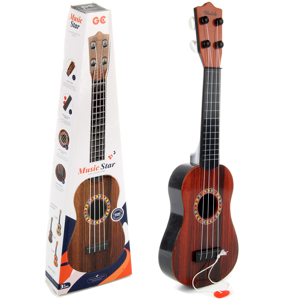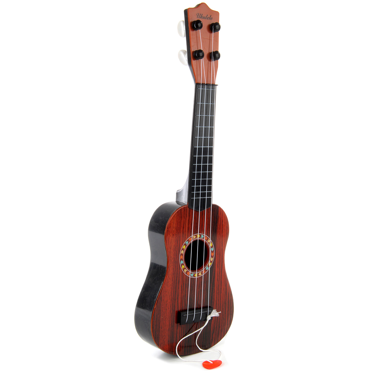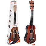 Игрушечная гитара с нейлоновыми струнами, 4 струны. Реалистичный дизайн, красивая и насыщенная расцветка, удобно ложится в руки. В комплект входят гитара и медиатор на веревочке. Подкручивая колки, можно настраивать инструмент. Играть следует, как на обычном инструменте, издает соответствующие звуки.