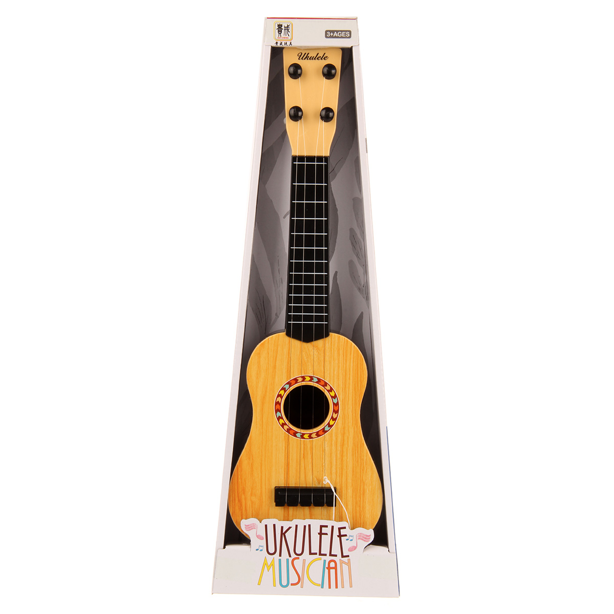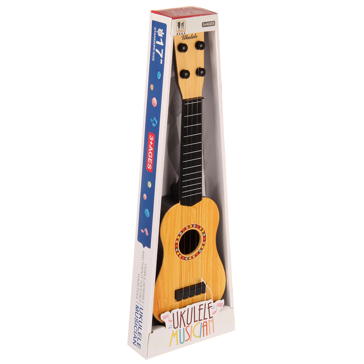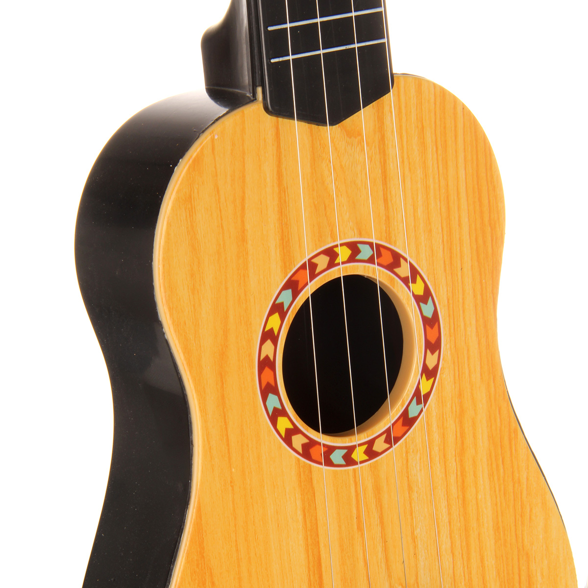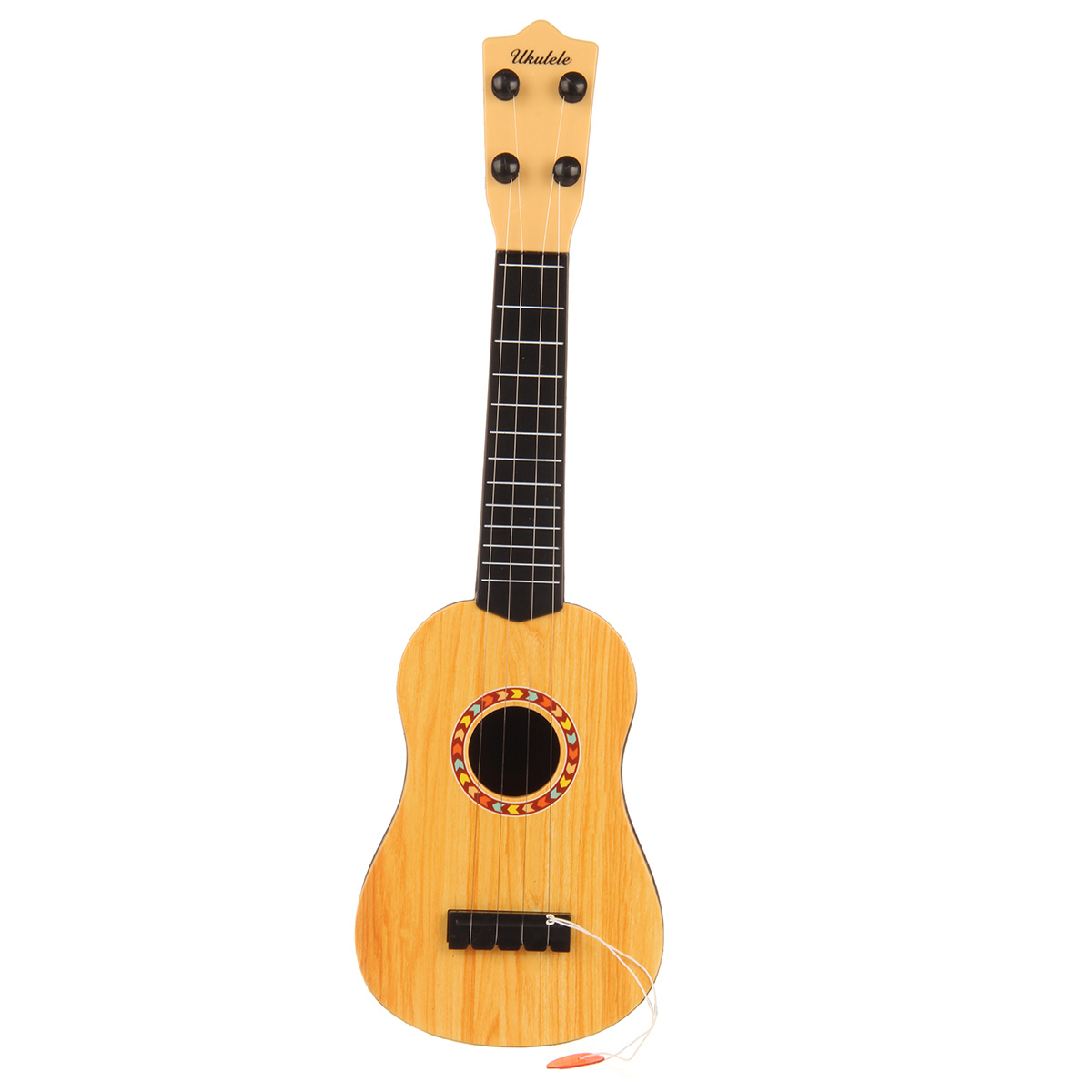 Игрушечная гитара с нейлоновыми струнами, 4 струны. Реалистичный дизайн, красивая и насыщенная расцветка, удобно ложится в руки. В комплект входят гитара и медиатор на веревочке. Подкручивая колки, можно настраивать инструмент. Играть следует, как на обычном инструменте, издает соответствующие звуки.