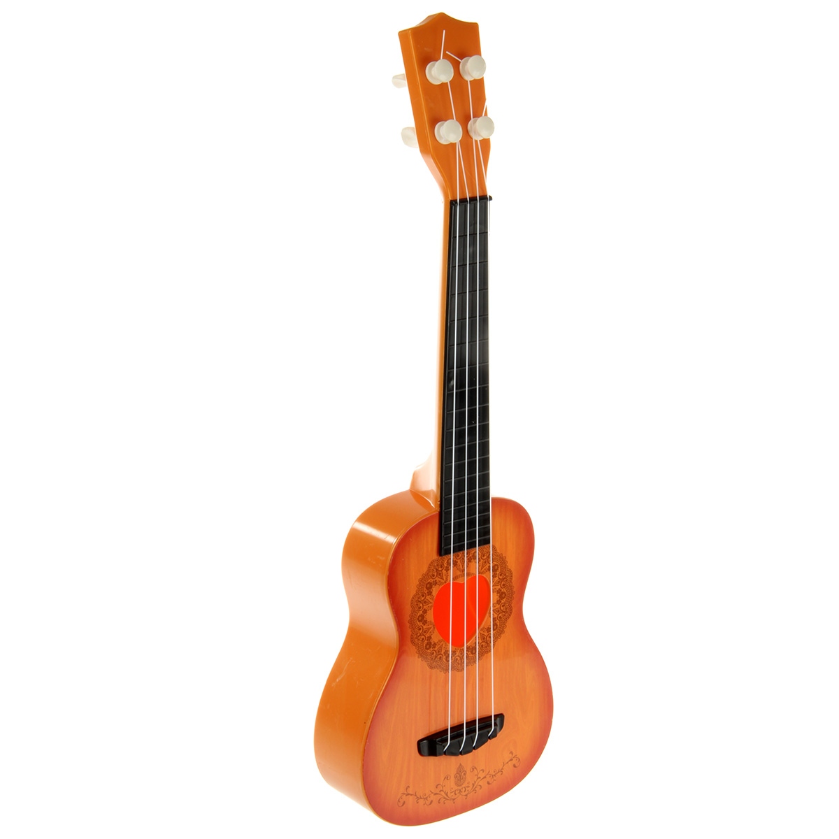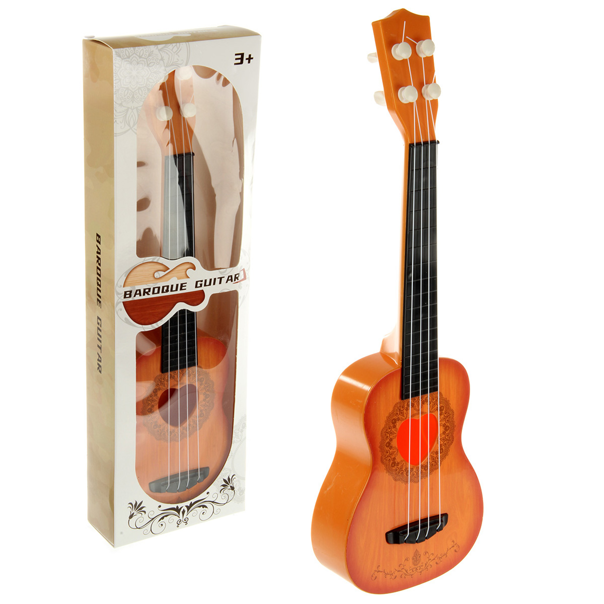 Лучший друг маленького музыканта и меломана - гитара. Подтягивая колки, можно настраивать инструмент. Играть на нем следует, как на обычной гитаре, будет издавать соответствующие звуки. Гитара отличается реалистичным дизайном и красивой расцветкой.