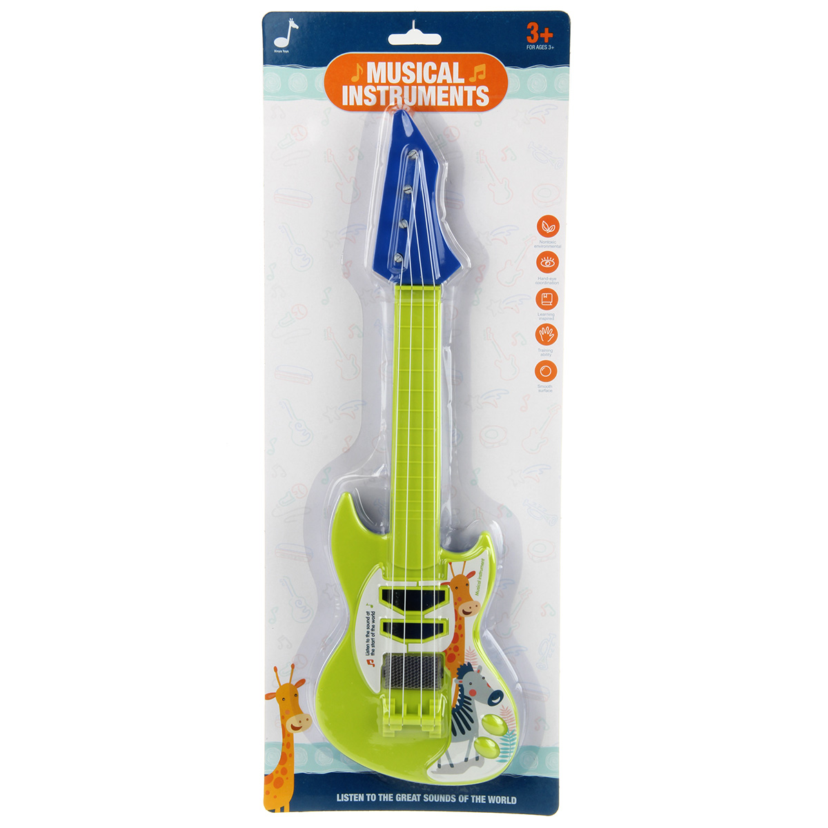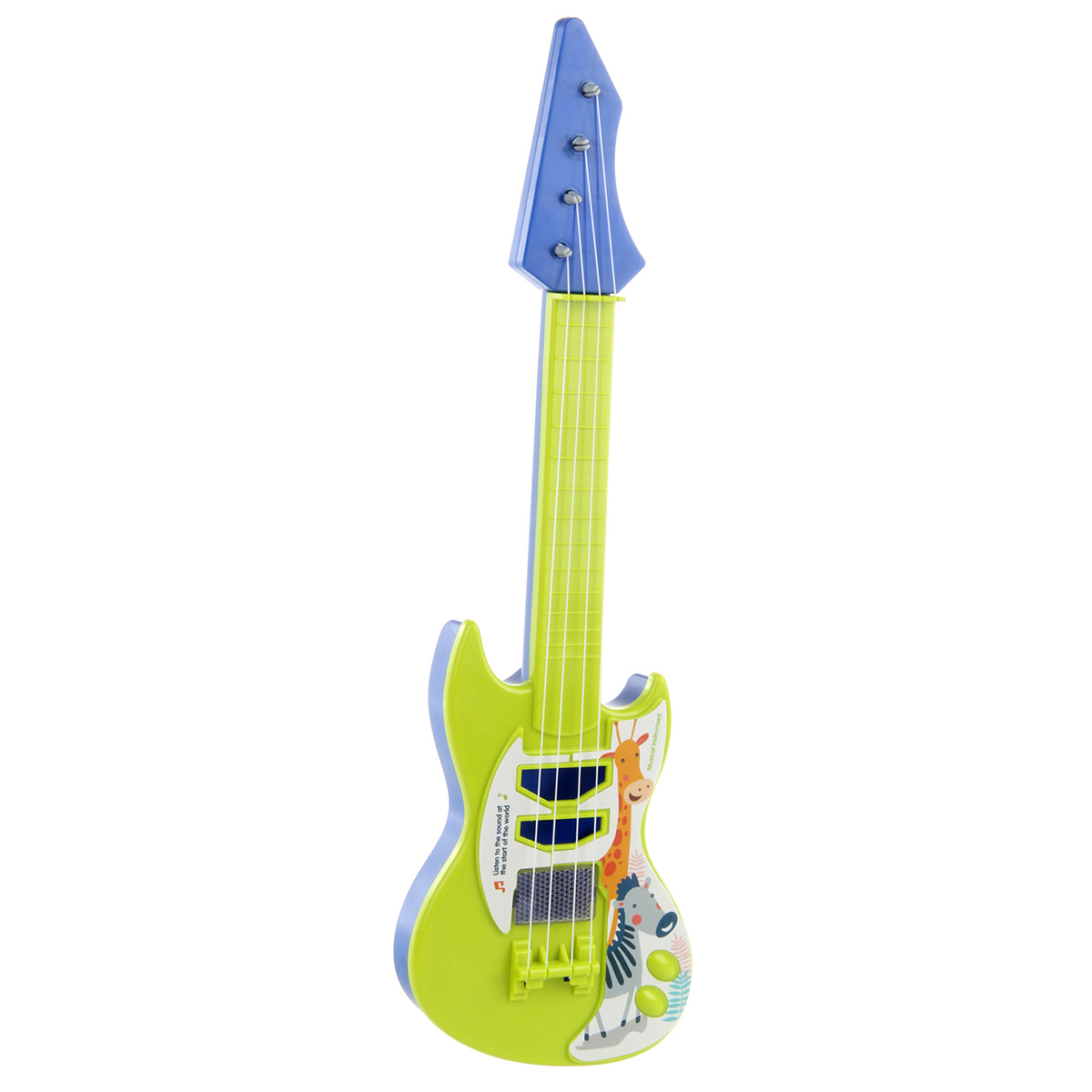 В комплект входят гитара и медиатор. Подтягивая колки, можно настраивать инструмент. Играть на нем следует, как на обычной гитаре. Игрушка отлично развивает артистические способности ребенка, музыкальный слух, зрительное восприятие, внимание, память, мелкую моторику рук и координацию движений.