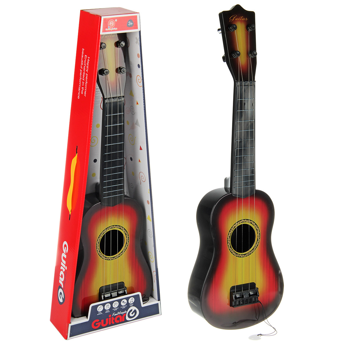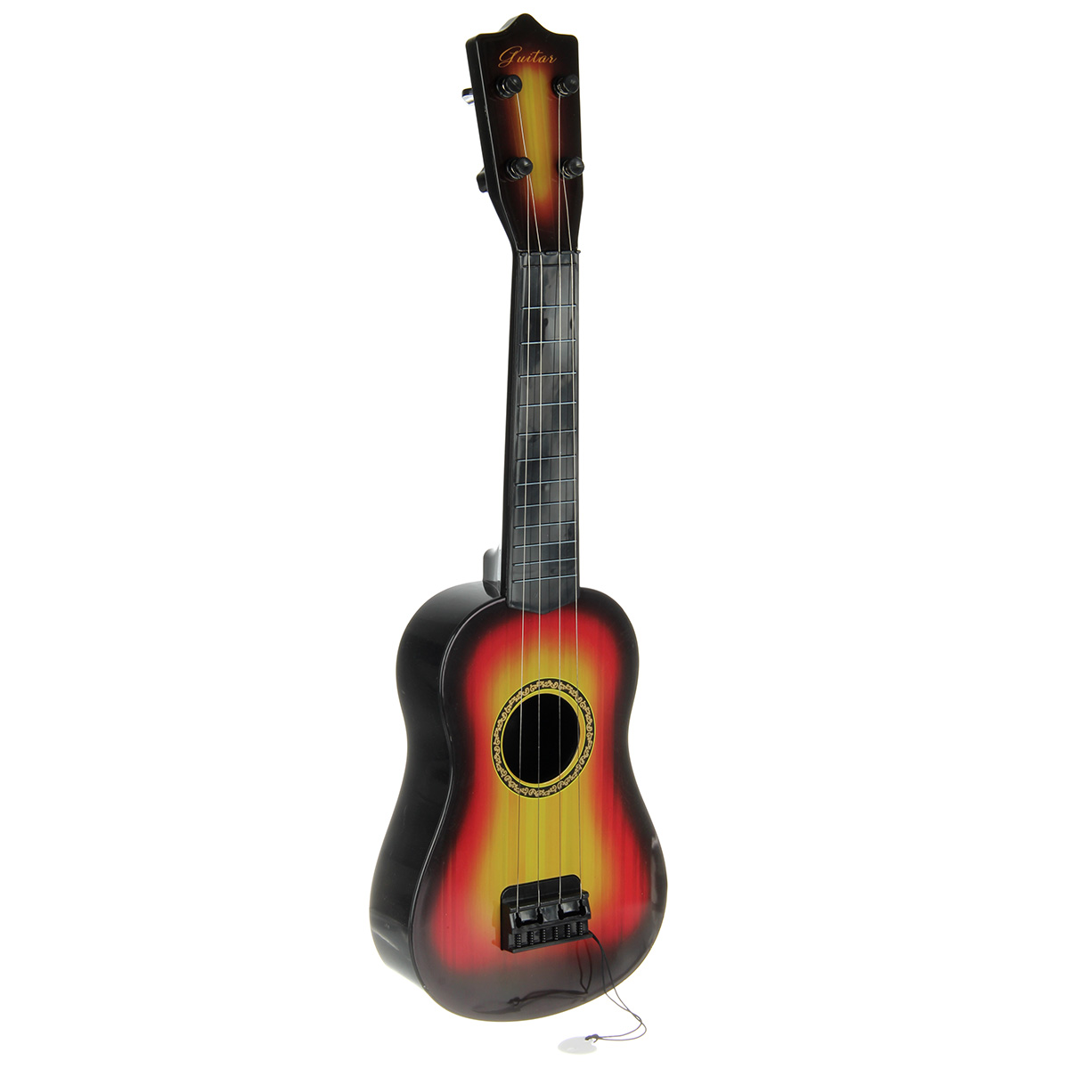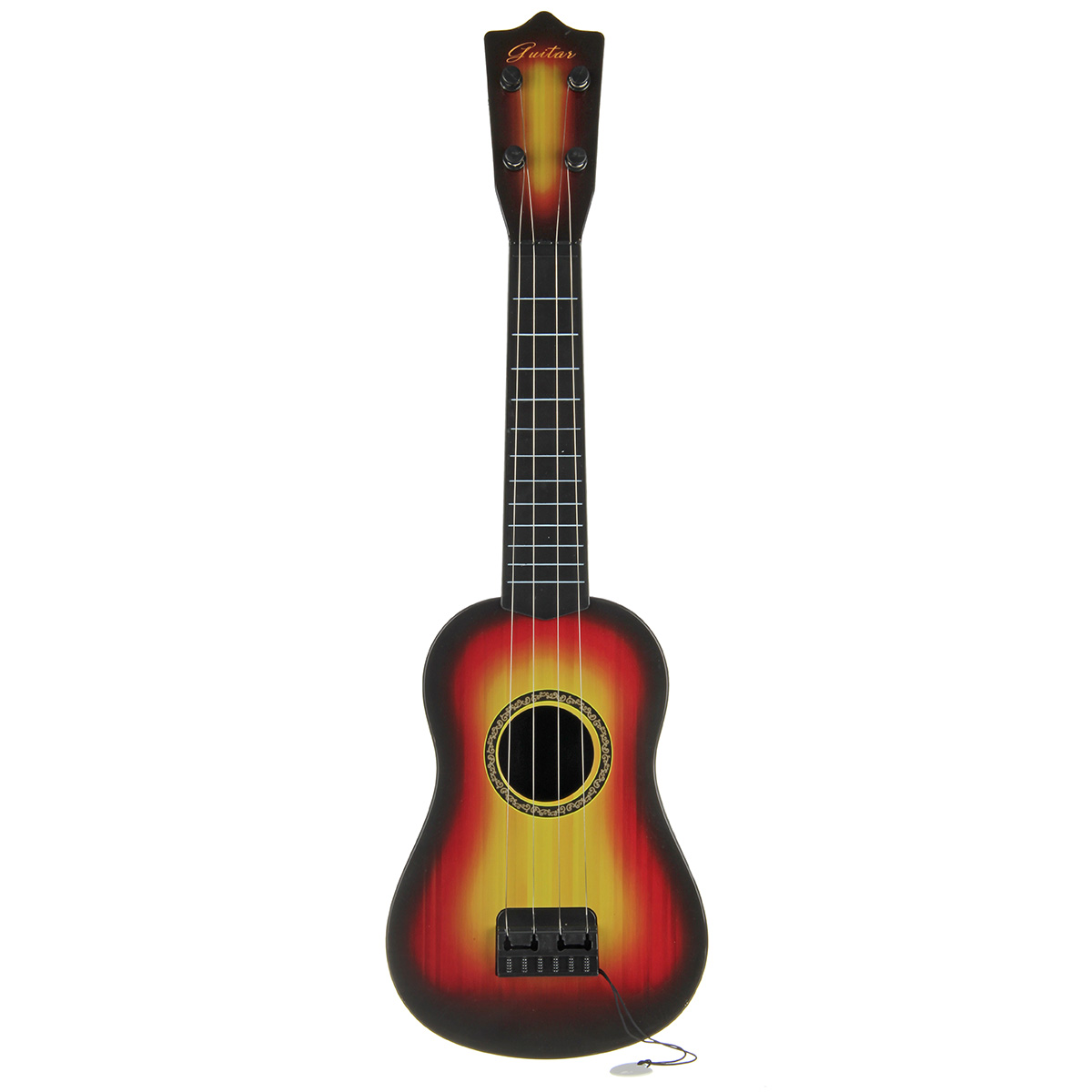 Игрушечная гитара в классической расцветке и качественном исполнении. Металлические струны, гарантирующие более звонкое, мелодичное и яркое звучание, также у металлических струн более долгий срок эксплуатации в отличие от нейлоновых. Музыкальный инструмент имеет медиатор на веревочке, всегда под рукой, не потеряется. Музыкальная игрушка в компактном размере, удобно держать в руках и брать с собой, изготовлена из прочных и долговечных материалов, отличается вниманием к деталям. Игрушка станет замечательным подарком мальчику и девочке на Новый год и День рождения.