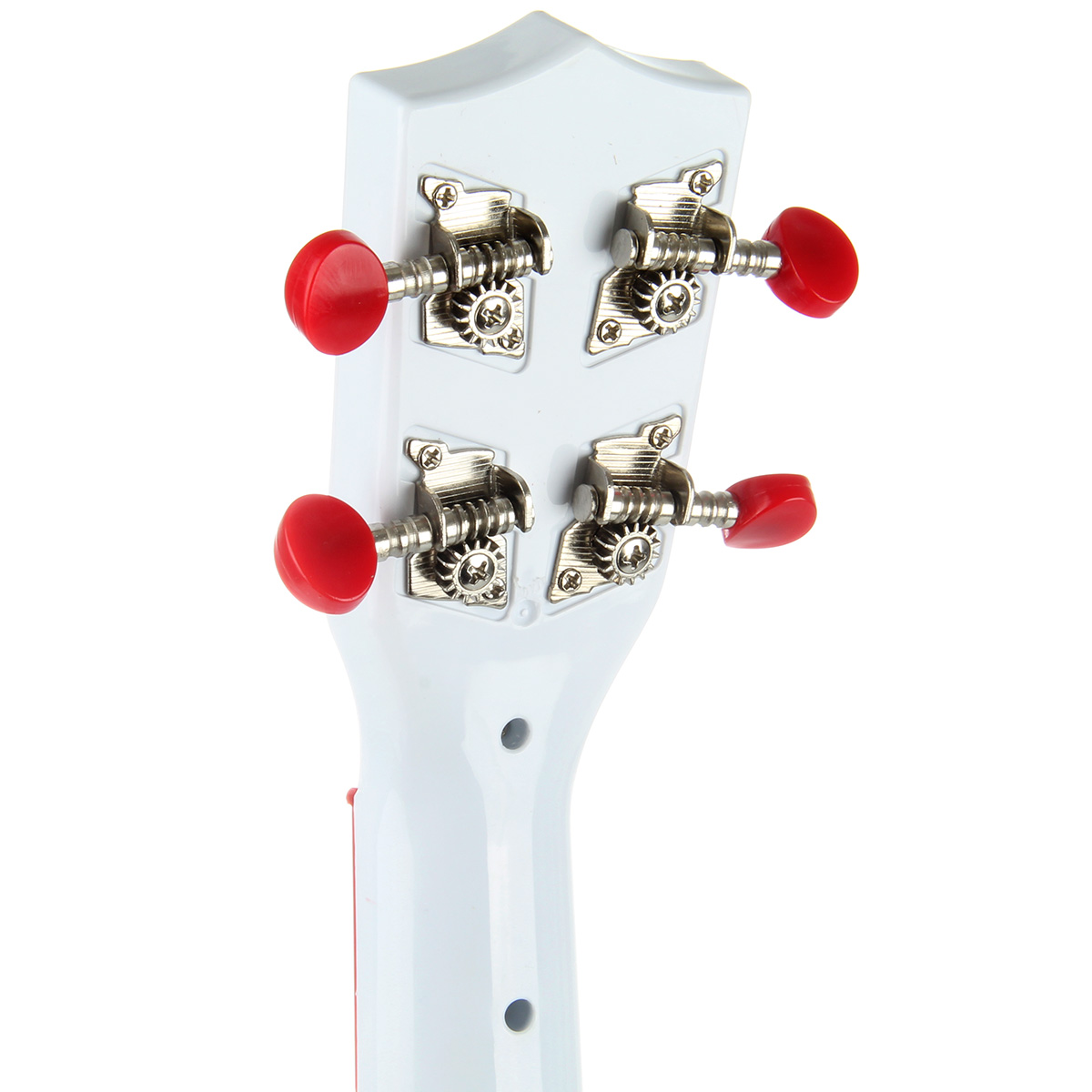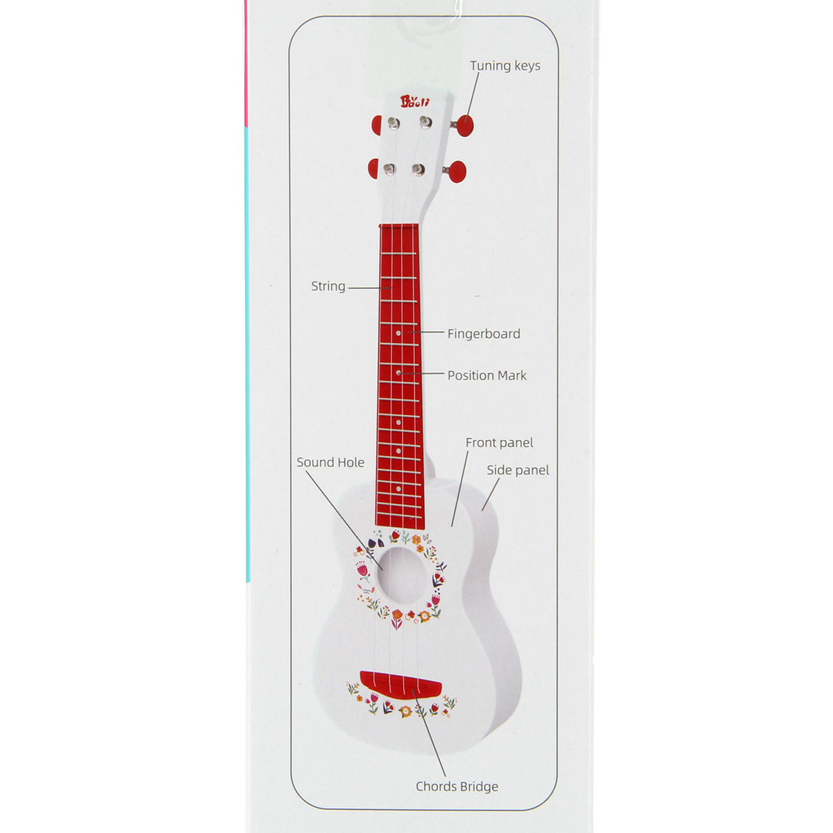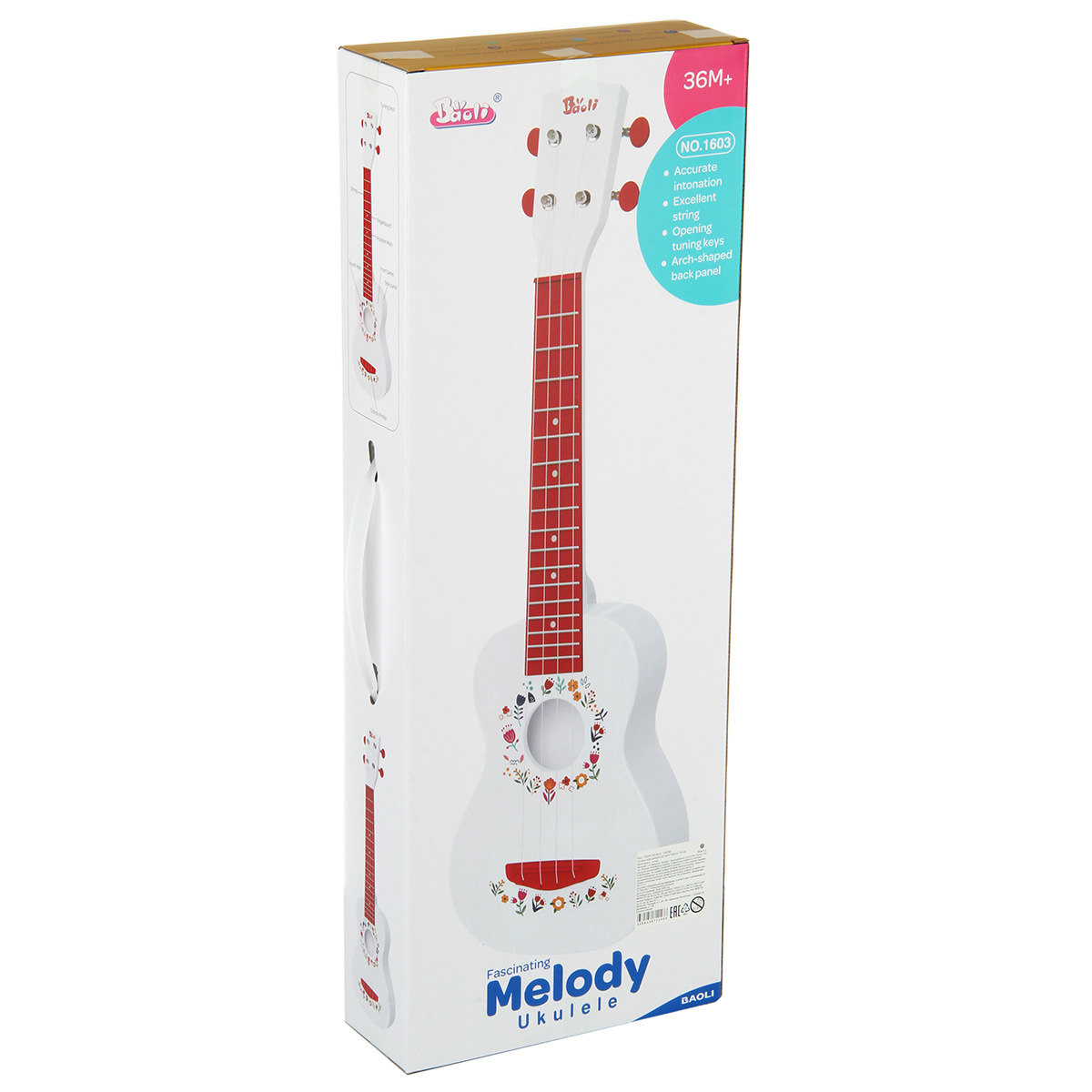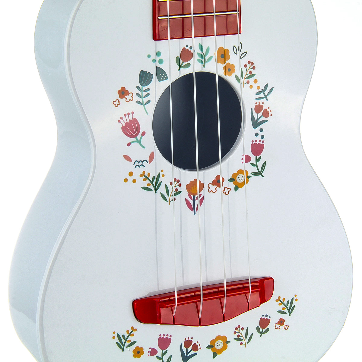 Игрушка укулеле в благородном белом цвете и классическом элегантном дизайне. Имеет высоту инструмента концерт укулеле, который отличается более широким диапазоном звучания, чем укулеле сопрано. Большое количество ладов и компактные размеры, длинный гриф, позволяющий более широкое расположение ладов, что дает более плавное ощущение игры. Силиконовые струны, комфортно для детских пальчиков, идеальный инструмент для начального обучения игре. Высокое качество исполнения и долговечные материалы, прочные металлические колки, гарантирующие лучшую настройку укулеле, надежная фурнитура. Музыкальный инструмент станет замечательным подарком для детей на Новый год и День рождения.