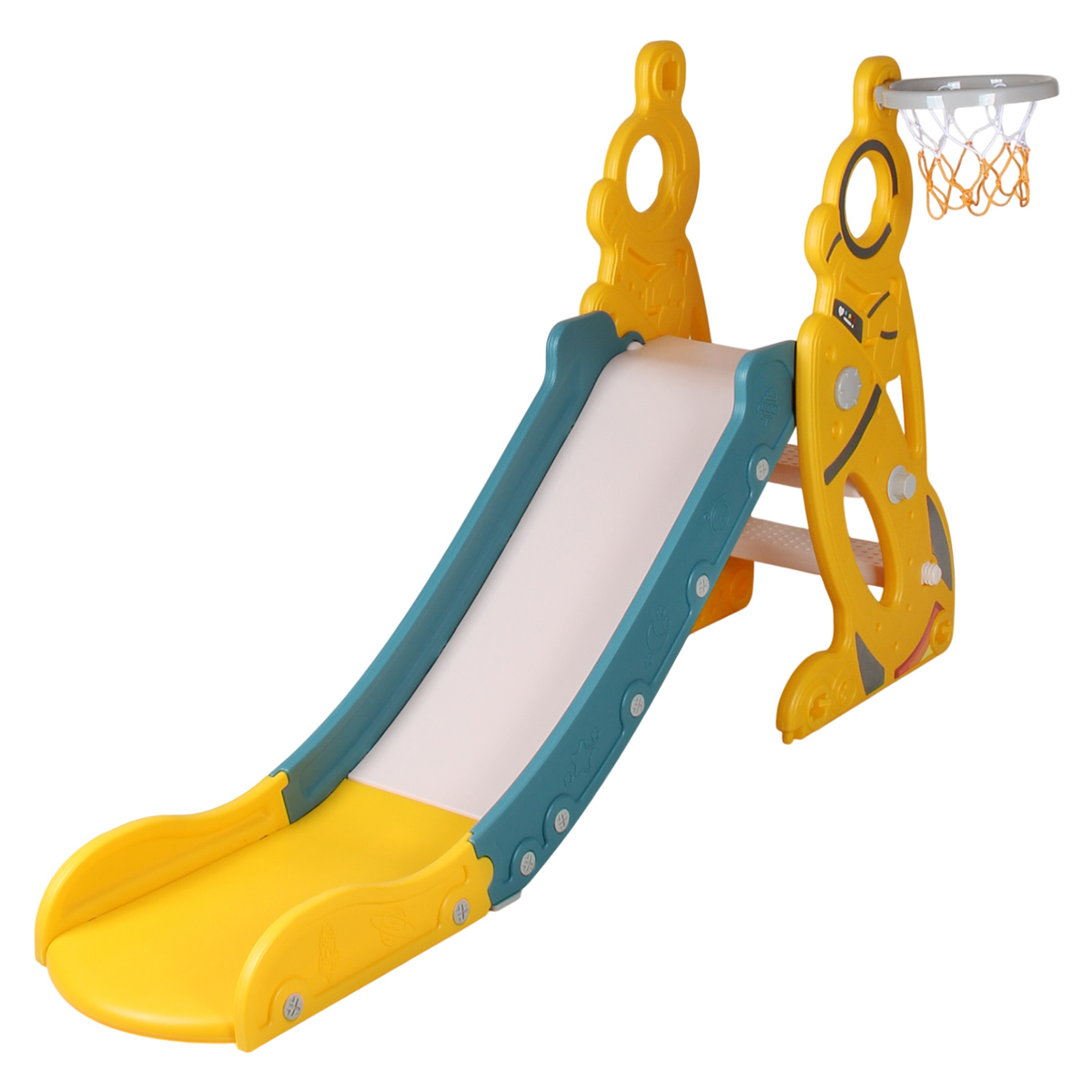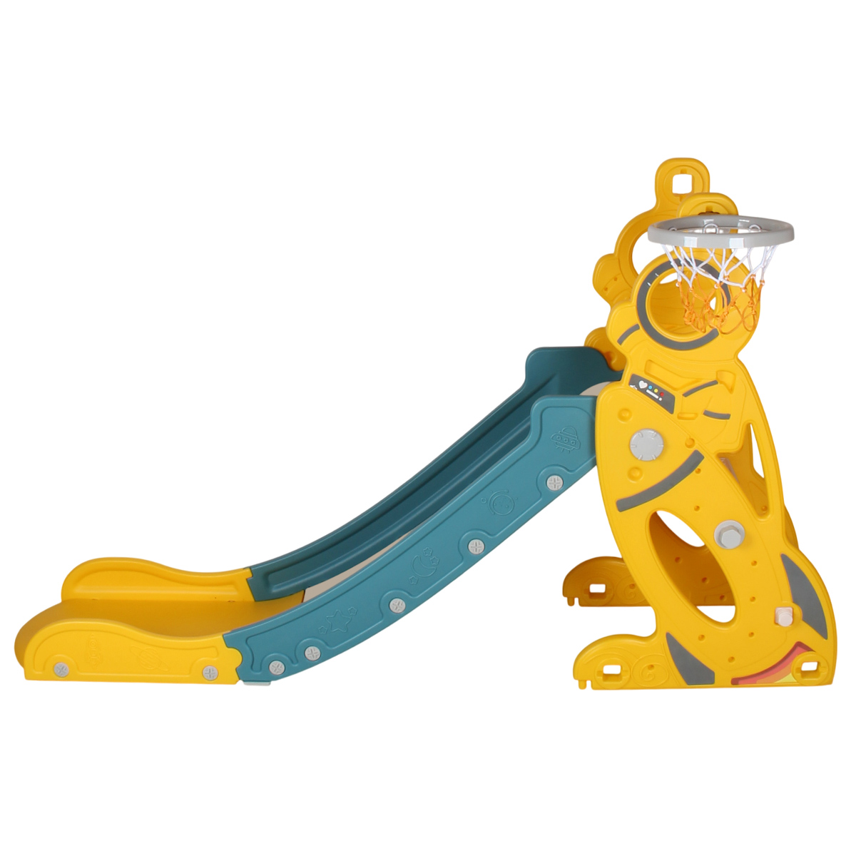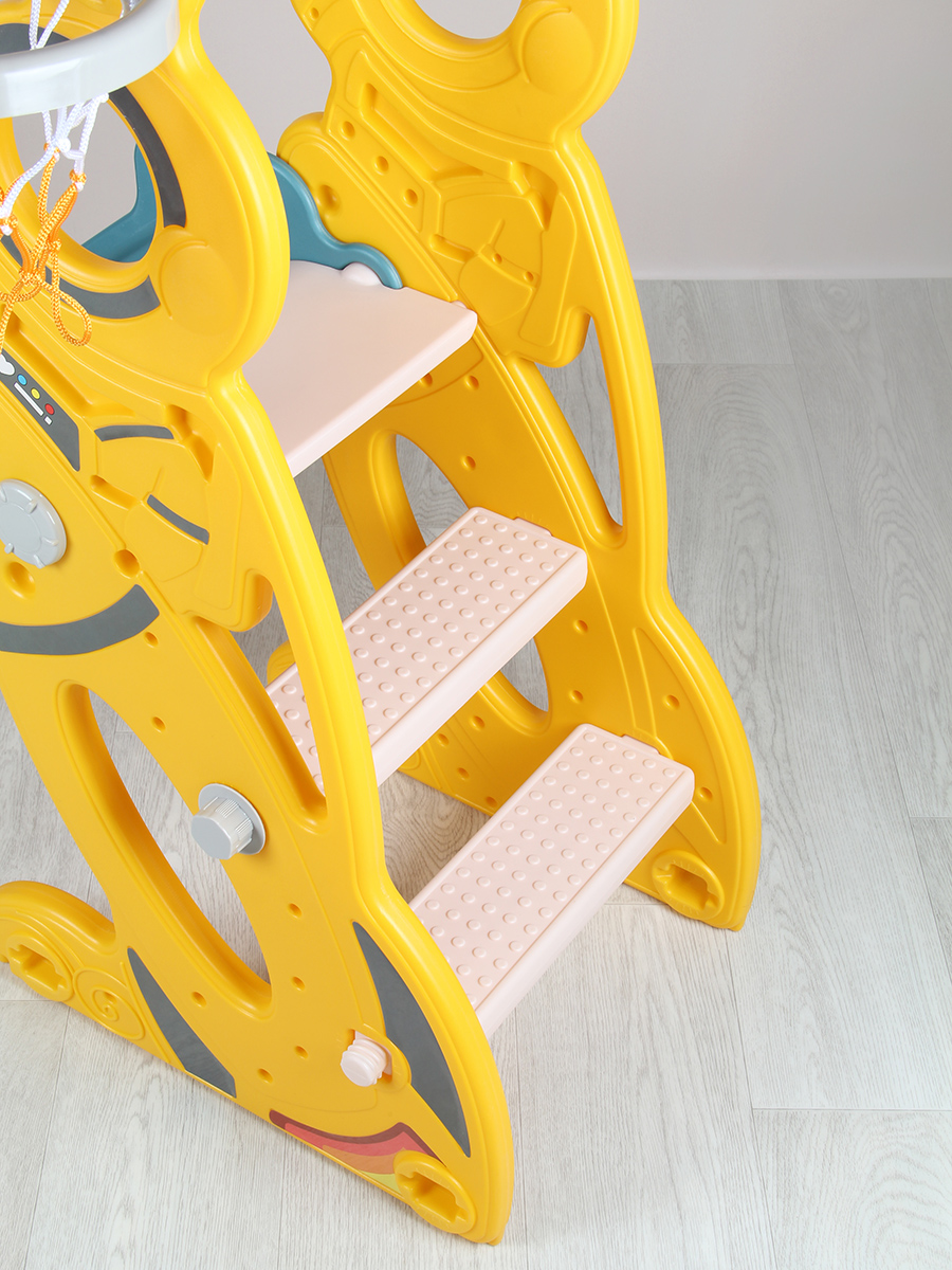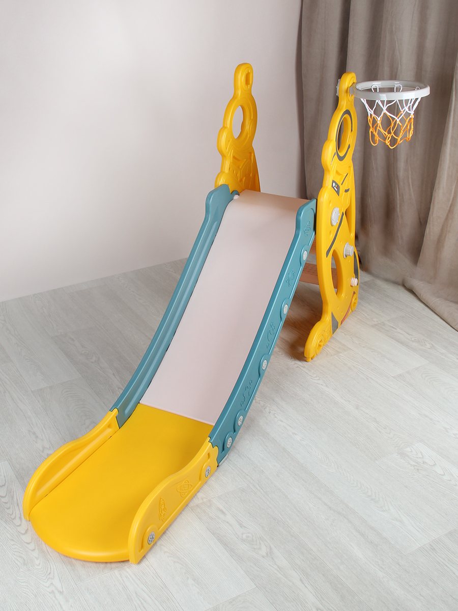 Многофункциональная игрушка, горка для малыша и баскетбол для весёлых игр. Детский игровой комплекс изготовлен из прочных и долговечных материалов, безопасно для ребёнка. Оформлен в стилизованном дизайне и яркой расцветке. В комплекте игрового набора детали для сборки горки, баскетбольного кольца, баскетбольный мяч, инструкция по сборке, набор наклеек. Игрушка 2 в 1, детская горка и баскетбол. Детская горка подойдёт для дома и улицы, можно установить в квартире, на даче. Изготовлено из качественного полимера. Размер горки 141х37х91 см. Размер ступеньки 31х10х4 см. Длина ската 140 см. Ширина ската 31 см. Размер баскетбольного кольца с учетом крепежа 29х23х22 см. Диаметр сетки баскетбольного кольца 22 см. Высота сетки баскетбольного кольца 18 см. Диаметр баскетбольного шарика 15 см. Размер упаковки 93х20х51 см.