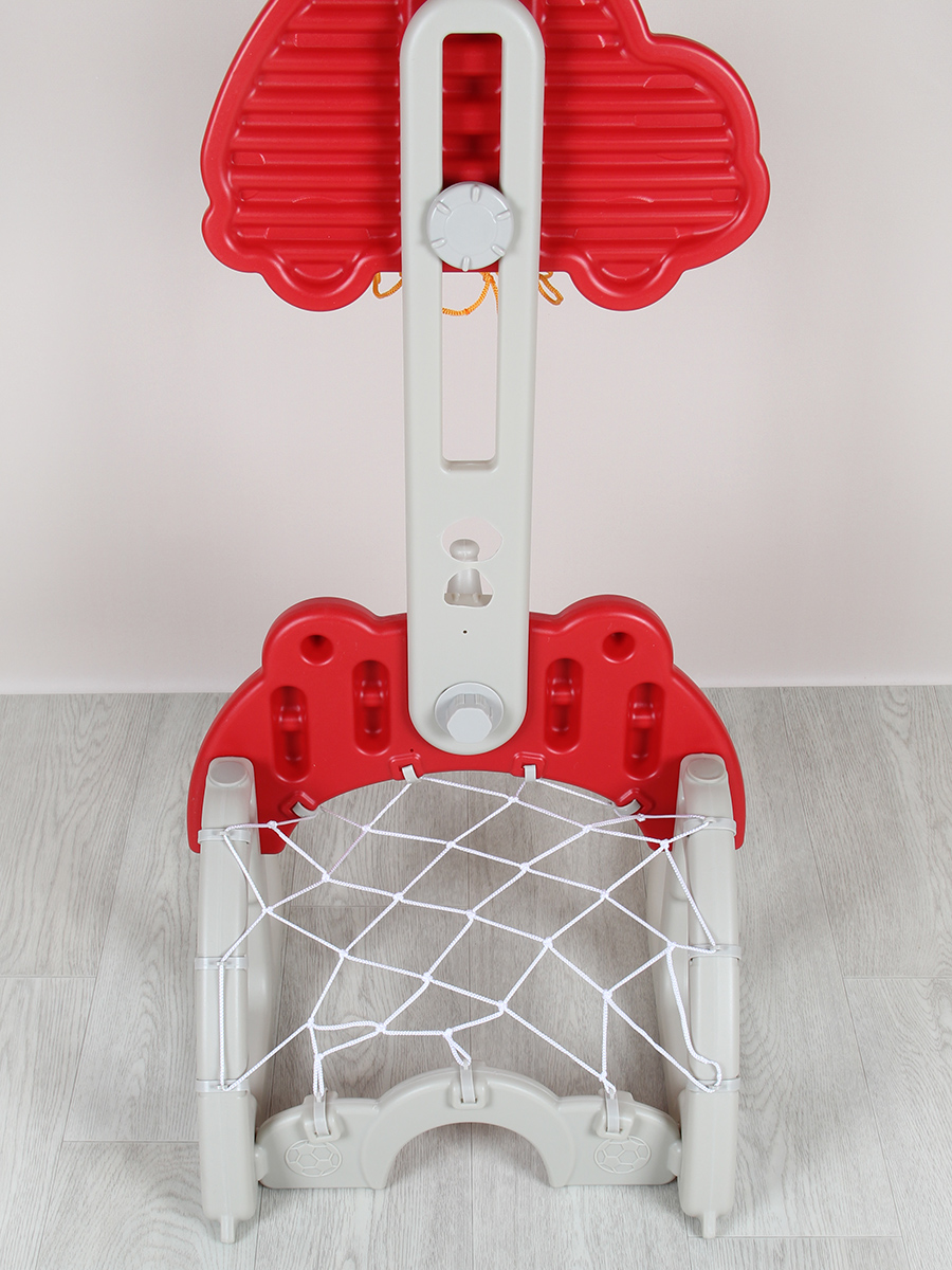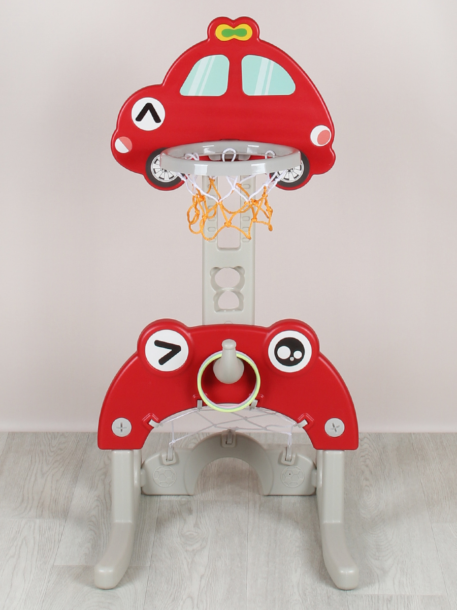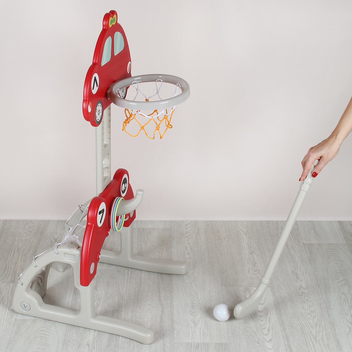 Многофункциональная игрушка, горка, стойка, гольф, футбол, баскетбол, кольцеброс для весёлых игр. Детский игровой комплекс изготовлен из прочных и долговечных материалов, безопасно для ребёнка. Детская горка оформлена в стилизованном дизайне и яркой расцветке. В комплекте игрового набора детали для сборки горки, стойки для баскетбола, футбольных ворот, кольцеброса и гольфа, набор наклеек, 3 кольца, 2 мяча, клюшка для гольфа, инструкция по сборке. Горка и стойка не соединяются друг с другом. Детская горка подойдёт для дома и улицы, можно установить в квартире, на даче. Полимер. Размер горки 141х37х91 см. Размер ступеньки 31х10х4 см. Длина ската 140 см. Ширина ската 31 см. Размер клюшки 12х3х55 см. Размер футбольных ворот 48х41х43 см. Высота футбольных ворот с учётом стойки баскетбольного кольца 86 см. Минимальная высота элемента в виде машинки с баскетбольным кольцом без учёта стойки 77 см. Максимальная высота элемента в виде машинки с баскетбольным кольцом 103 см. Размер баскетбольного кольца без учета крепления 22х16 см. Диаметр сетки баскетбольного кольца 19 см. Высота сетки 14 см. Размер кольцеброса 12х6 см. Диаметр кольца 12 см. Диаметр футбольного шарика 10 см. Диаметр баскетбольного шарика 15 см. Диаметр шарика для гольфа 4 см. Размер ворот для тенниса 32х1х13 см. Размер лунки для мяча 13х1х8 см. Размер упаковки 93х21х51 см.