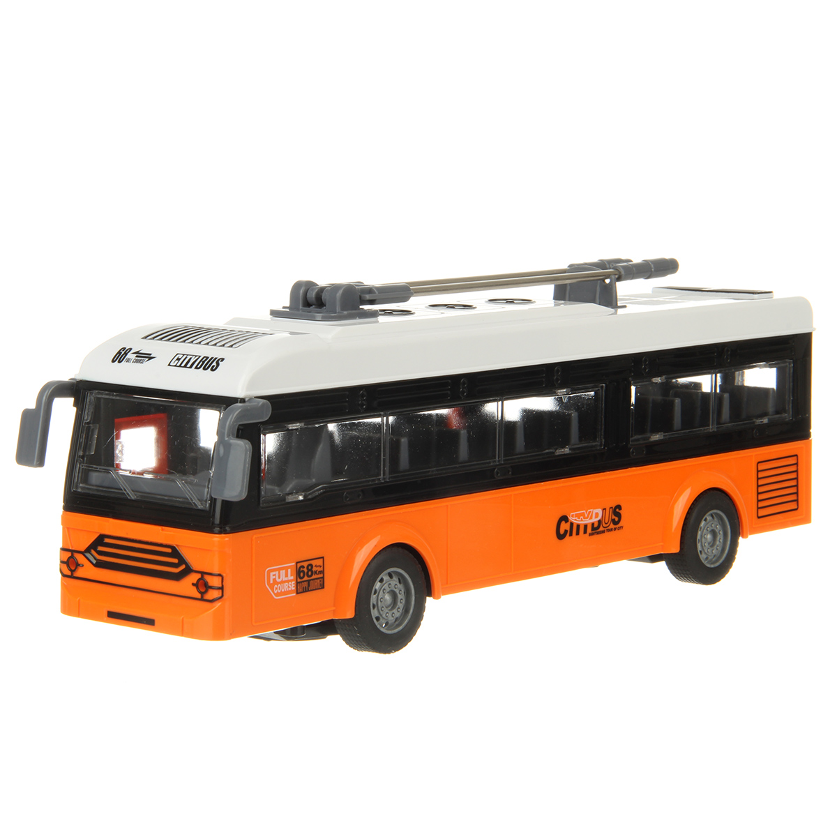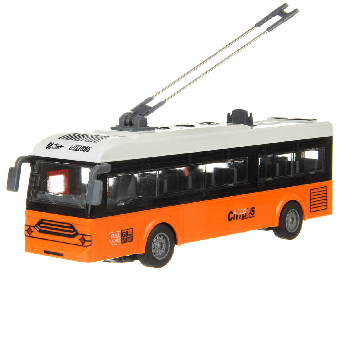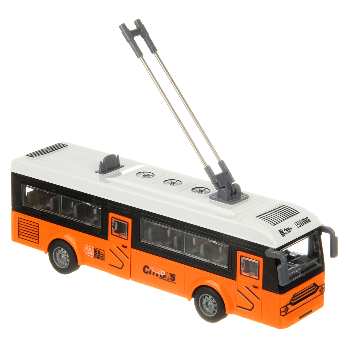 Игрушечный троллейбус изготовлен из прочных и долговечных материалов.