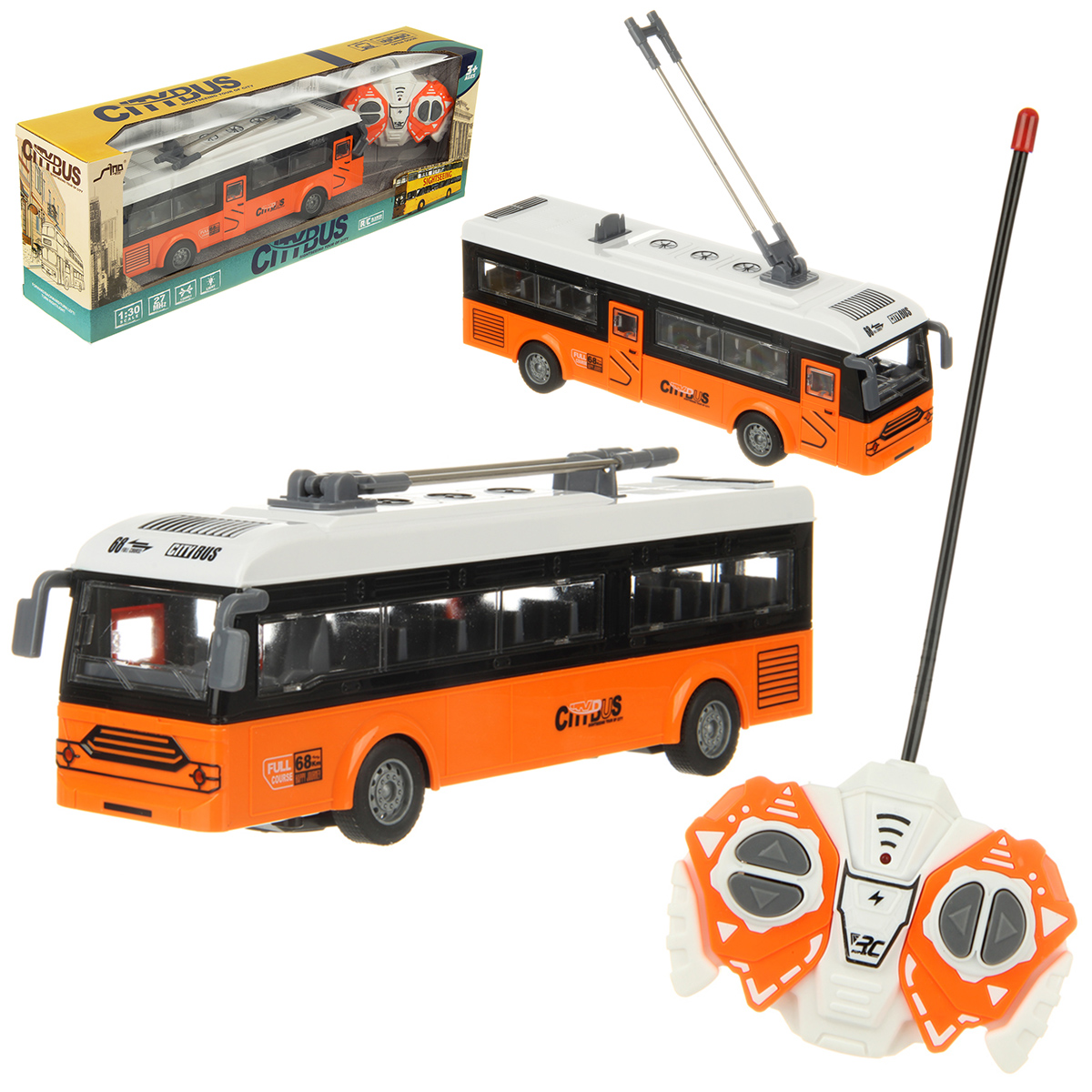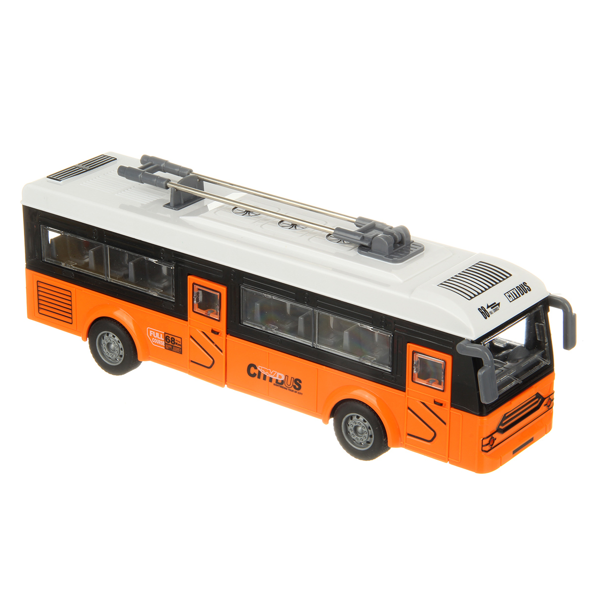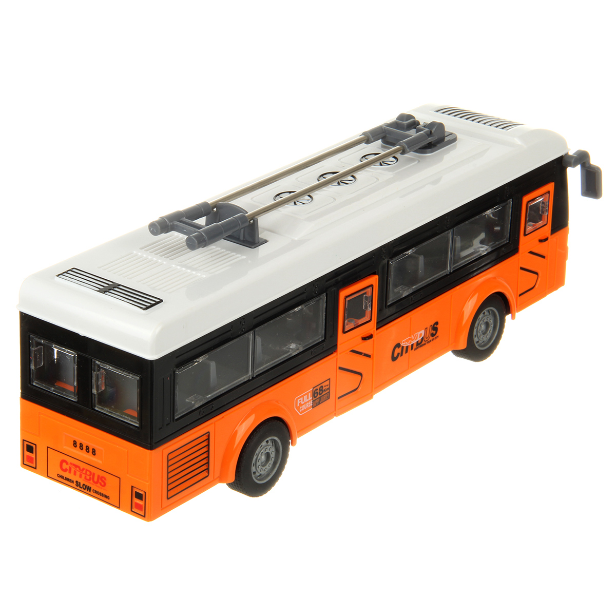 Игрушечный троллейбус изготовлен из прочных и долговечных материалов.