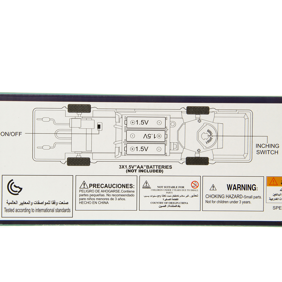 Машинка работает от 3 батареек АА, не входят в комплект.