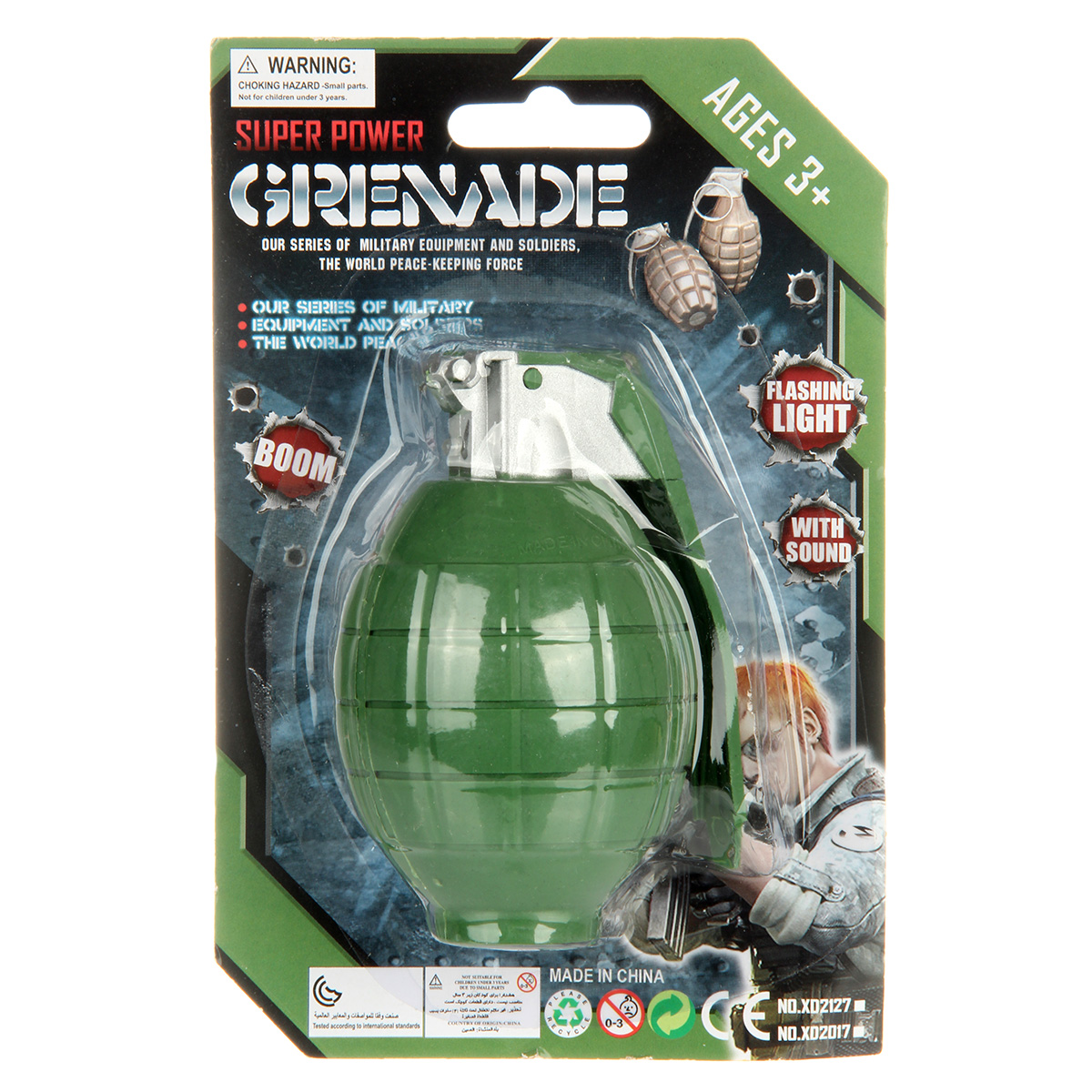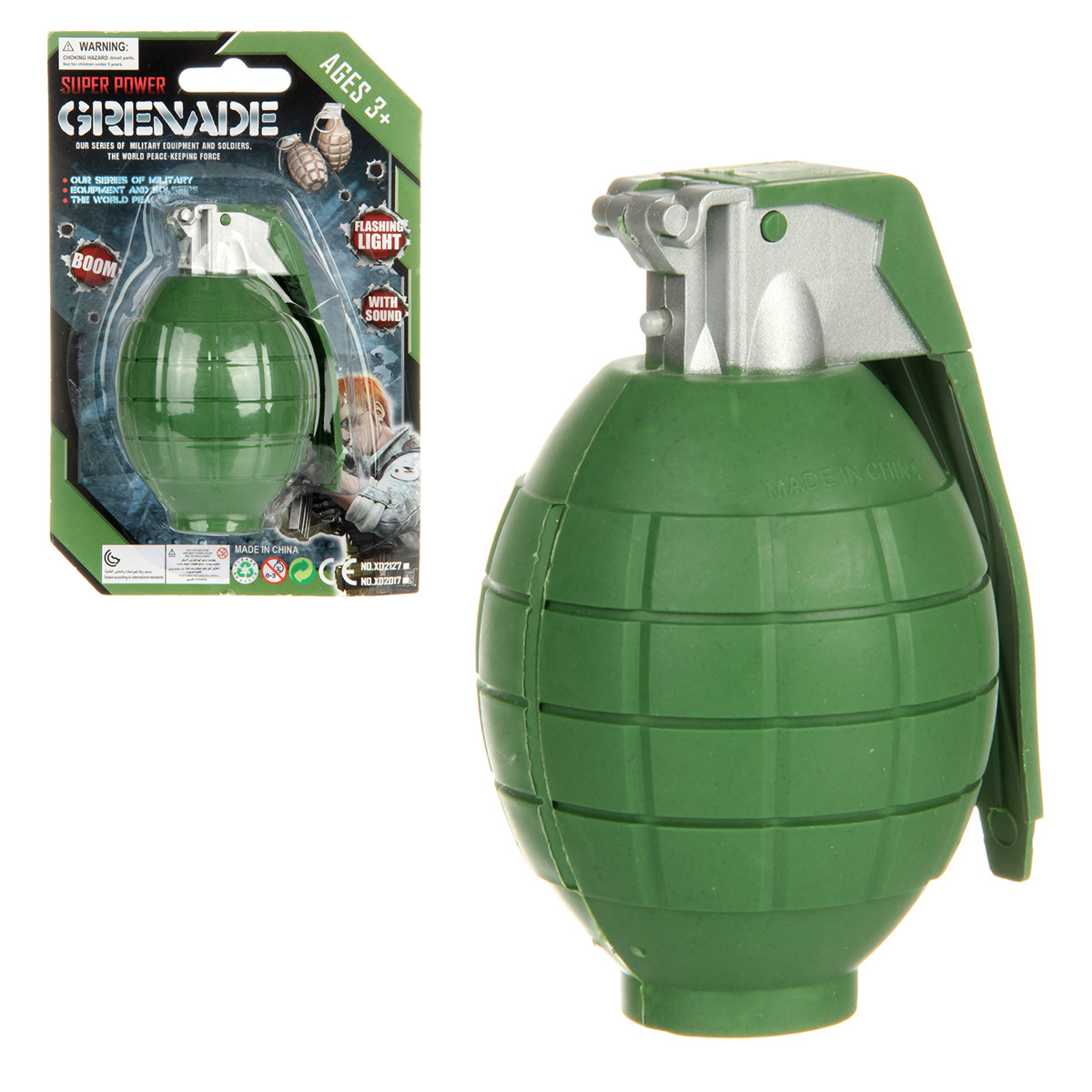Игрушечная граната - верный спутник храброго бойца. Компактная, удобно ложится в руку, занимает мало места. Если нажать на ее ручку, станут раздаваться звуки отсчета и взрыва, лампочка будет подсвечиваться. Игрушка развивает воображение, зрительное и слуховое восприятие, тренирует мелкую моторику рук и координацию движений, позволяет придумать множество увлекательных сюжетно-ролевых игр. Игрушка представлена в ассортименте. Игрушка работает от 2 батареек LR44, входят в комплект. Игрушка изготовлена из качественного и безопасного полимерного материала, упакована в блистер. Размеры игрушки: 7*6*10 см. Размеры игрушки в упаковке: 12*7*18 см.