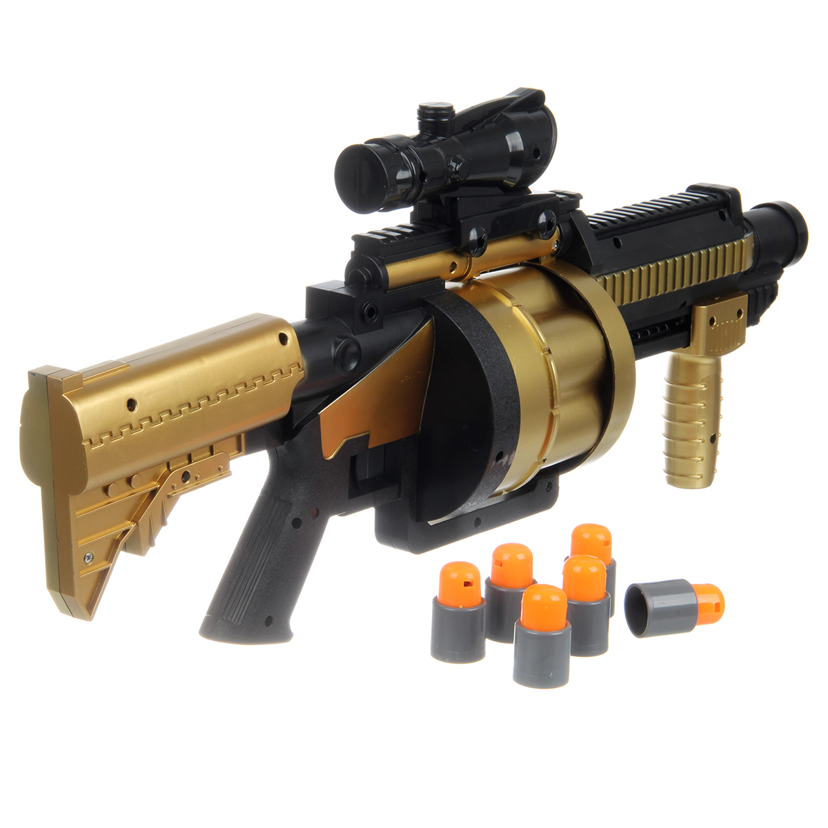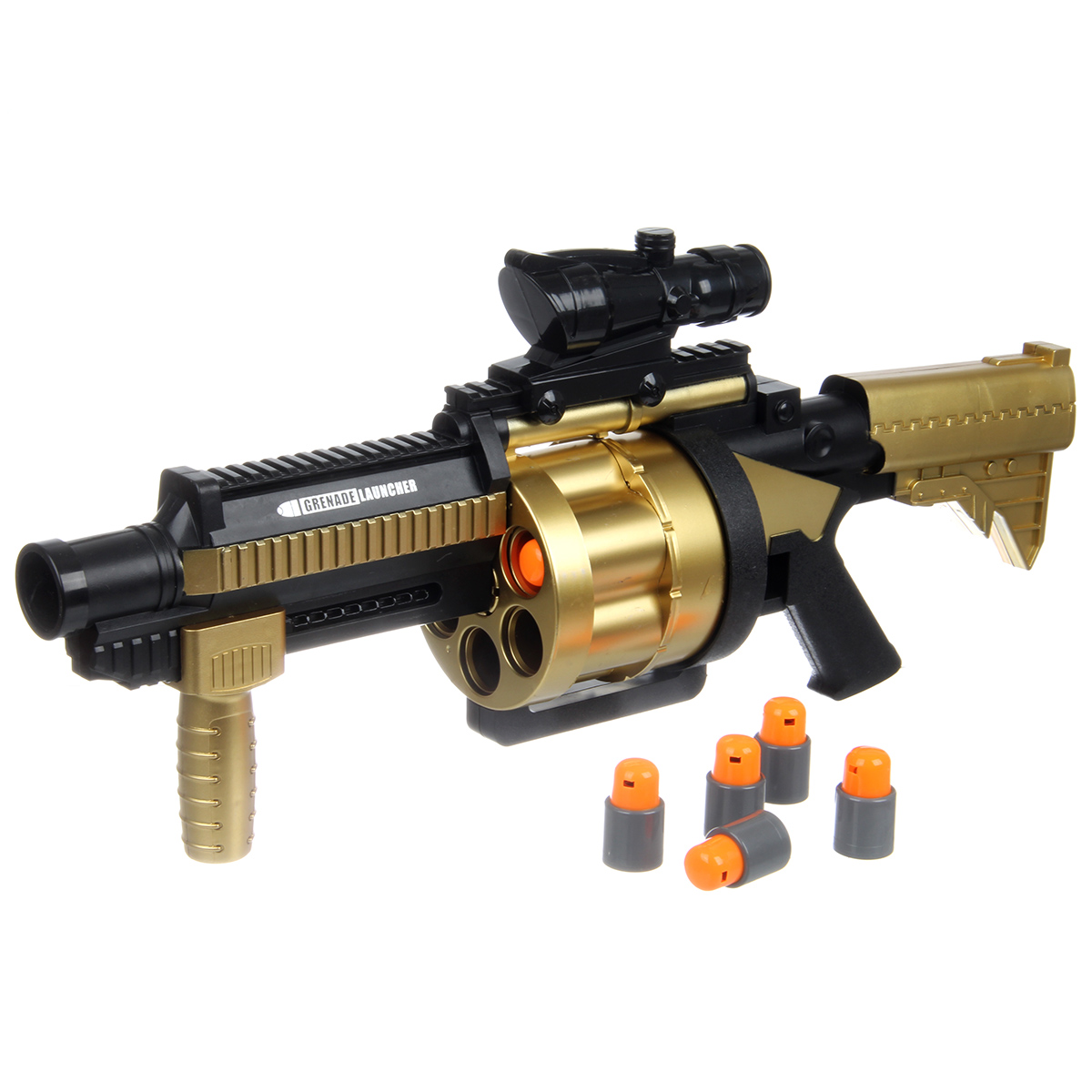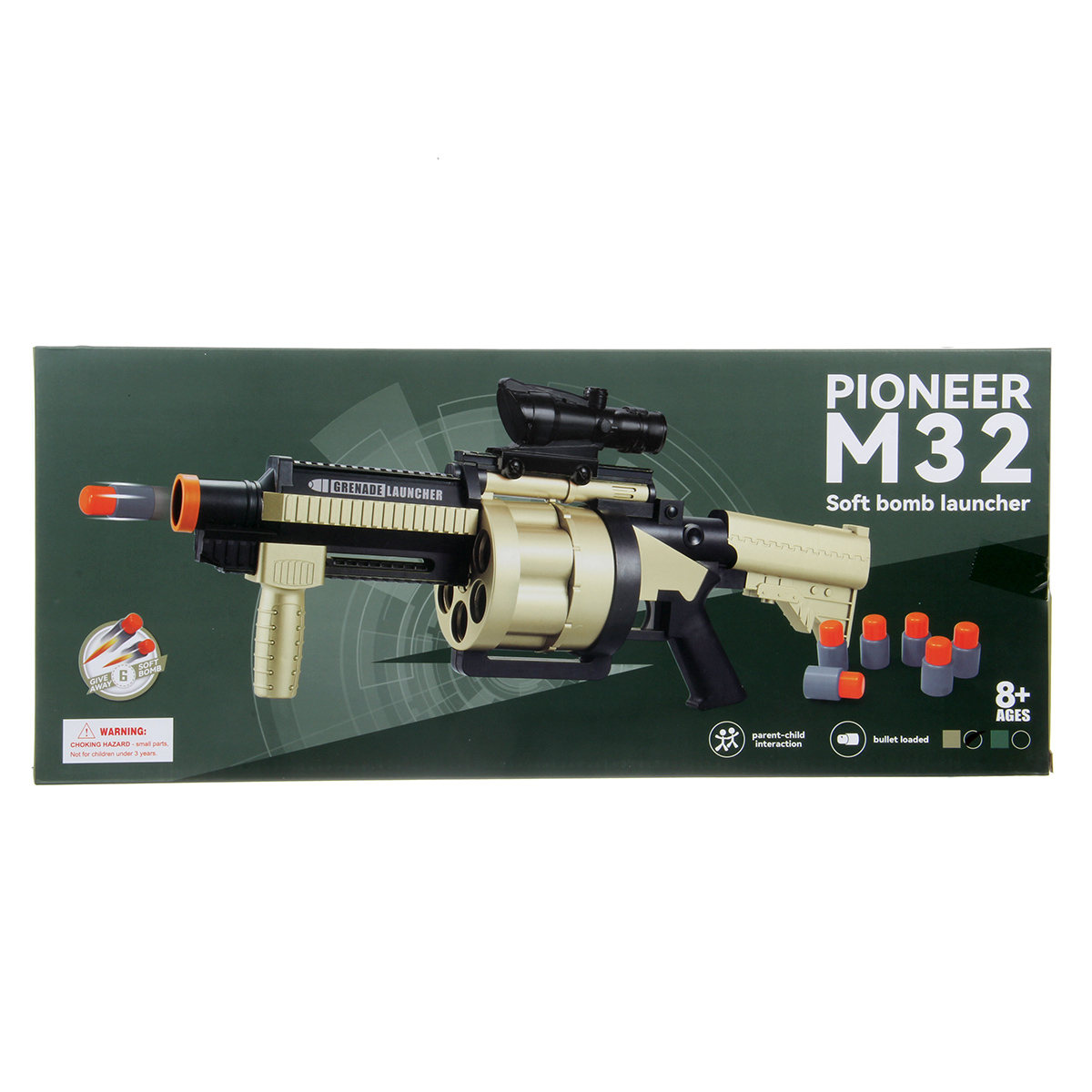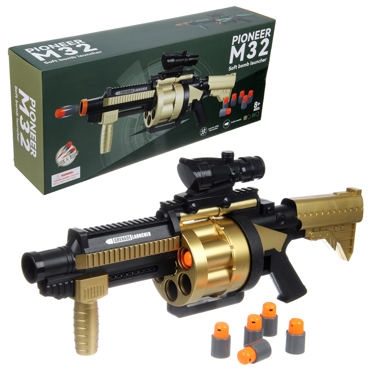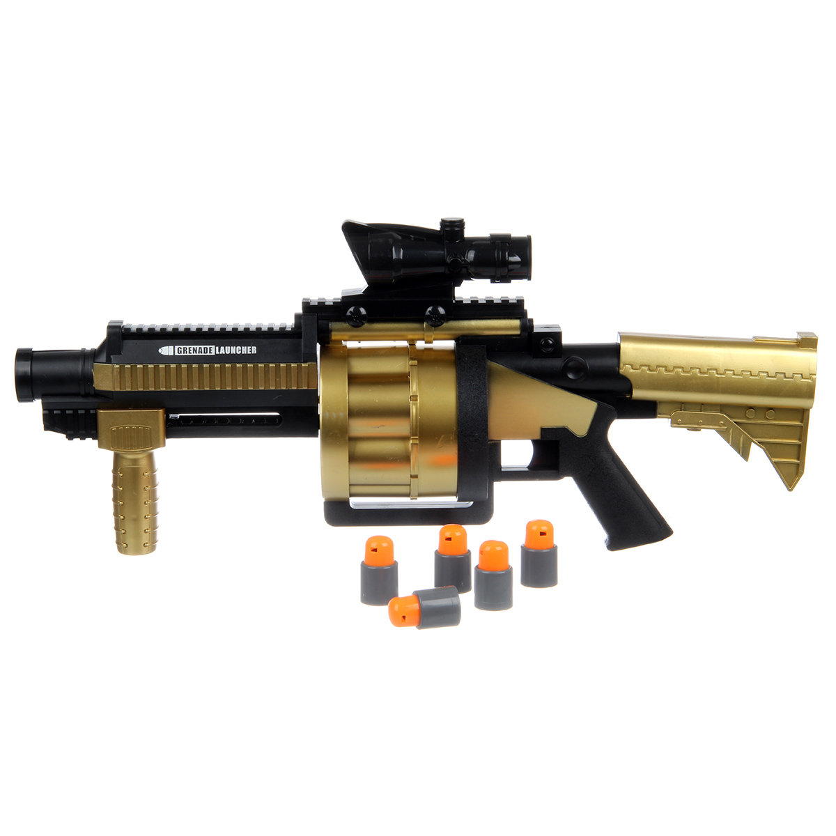 В наборе гранатомет и 6 патронов.