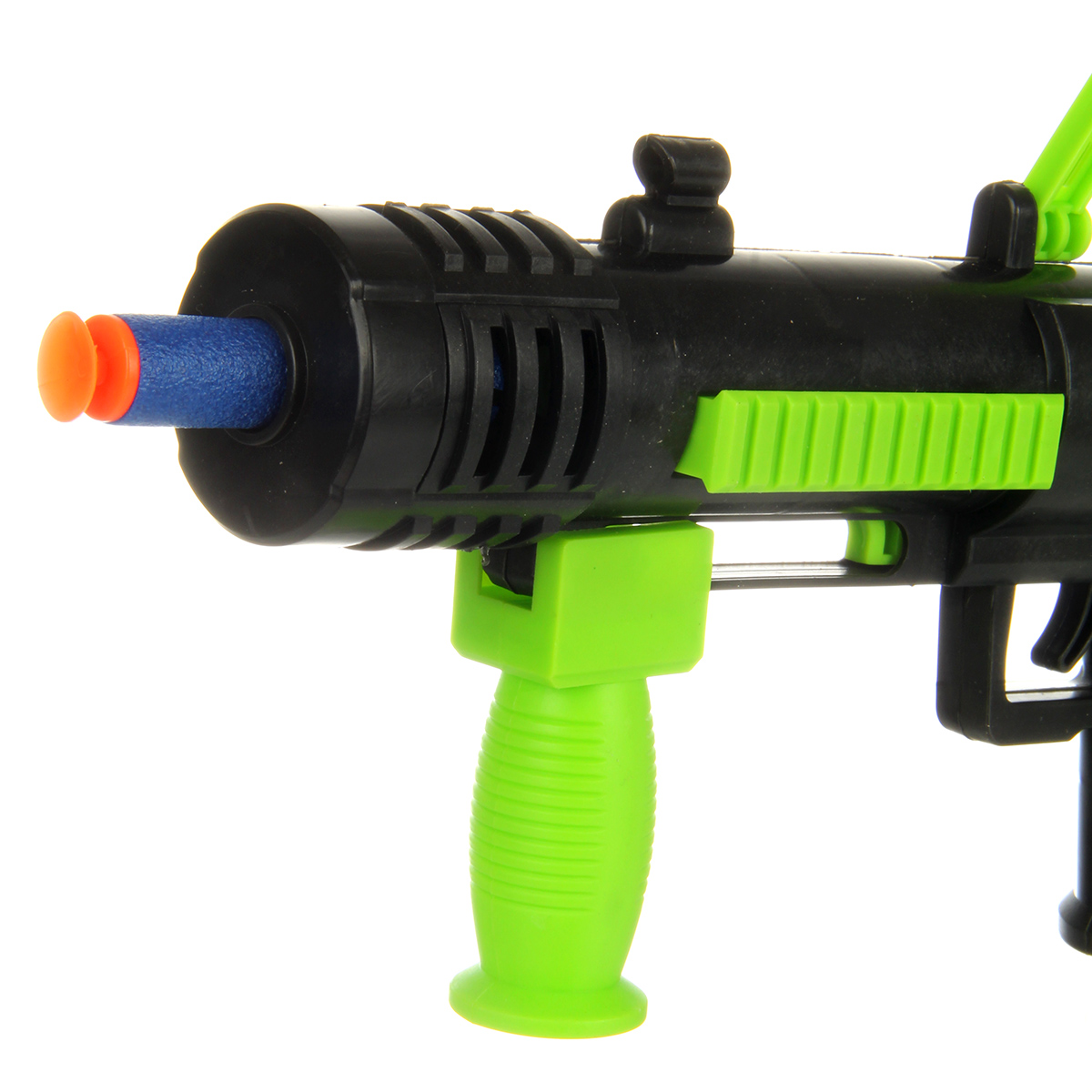 Игрушечное оружие изготовлено из прочных и долговечных материалов, выполнено в привлекательной расцветке, рукоять удобно ложится в ладонь.