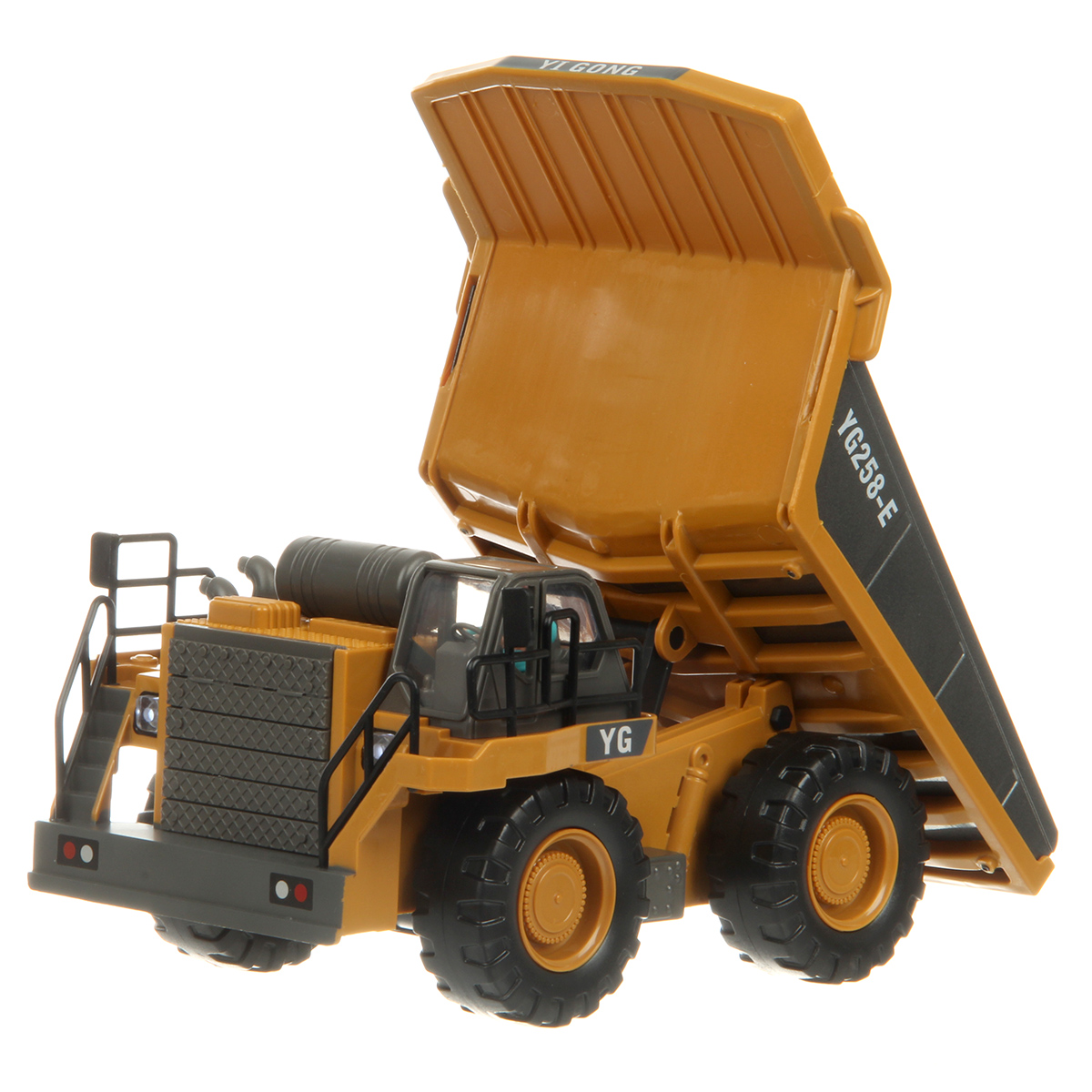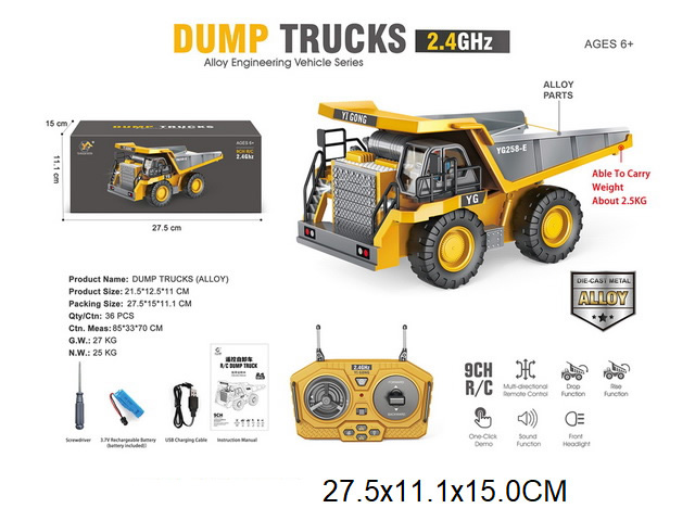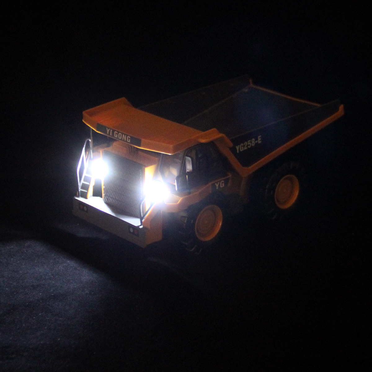 Игрушечный самосвал имеет множество функций, катается во все стороны, поднимает кузов, эффектная подсветка фар, можно играть в темное время суток.