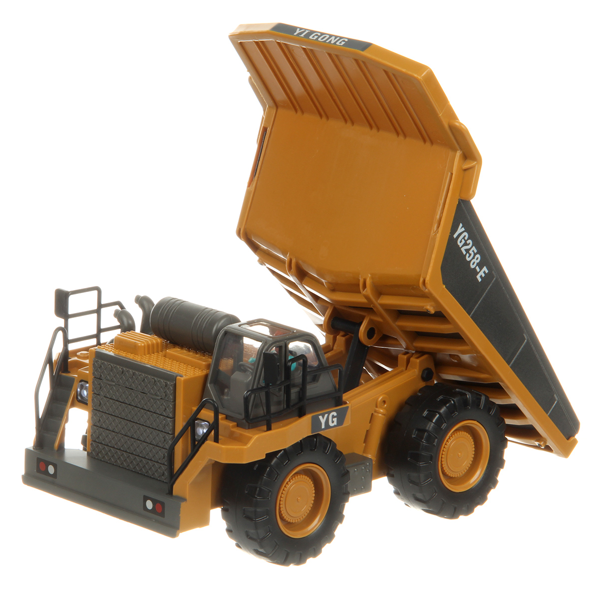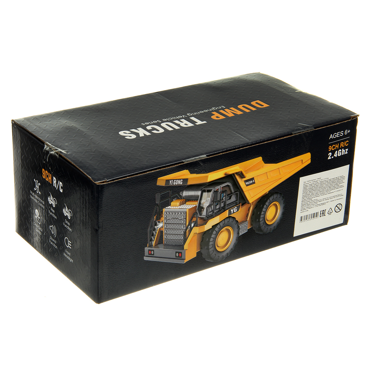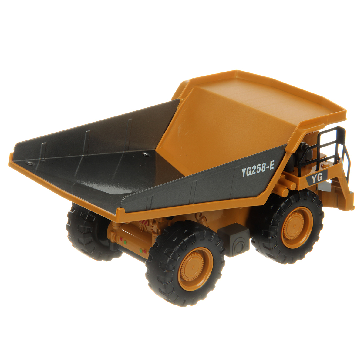 Игрушечный самосвал имеет множество функций, катается во все стороны, поднимает кузов, эффектная подсветка фар, можно играть в темное время суток.