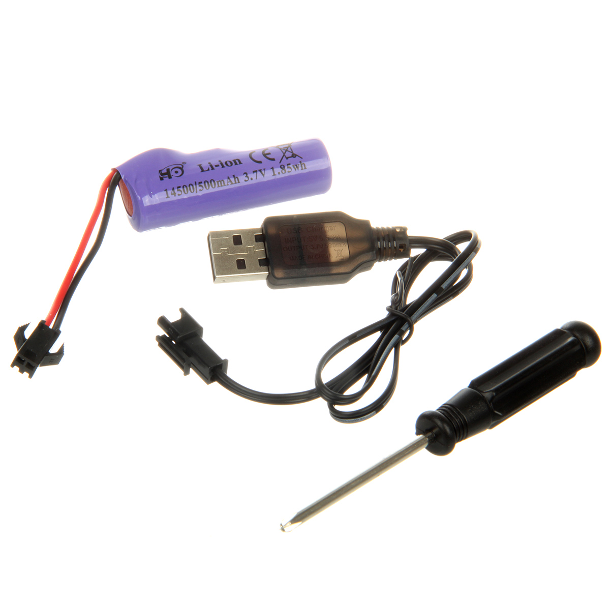 В наборе машинка, пульт управления, отвертка, USB кабель, аккумулятор 3.7V, инструкция на английском и китайском языках.