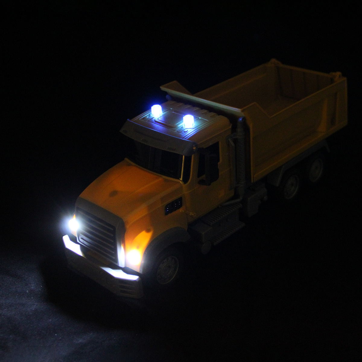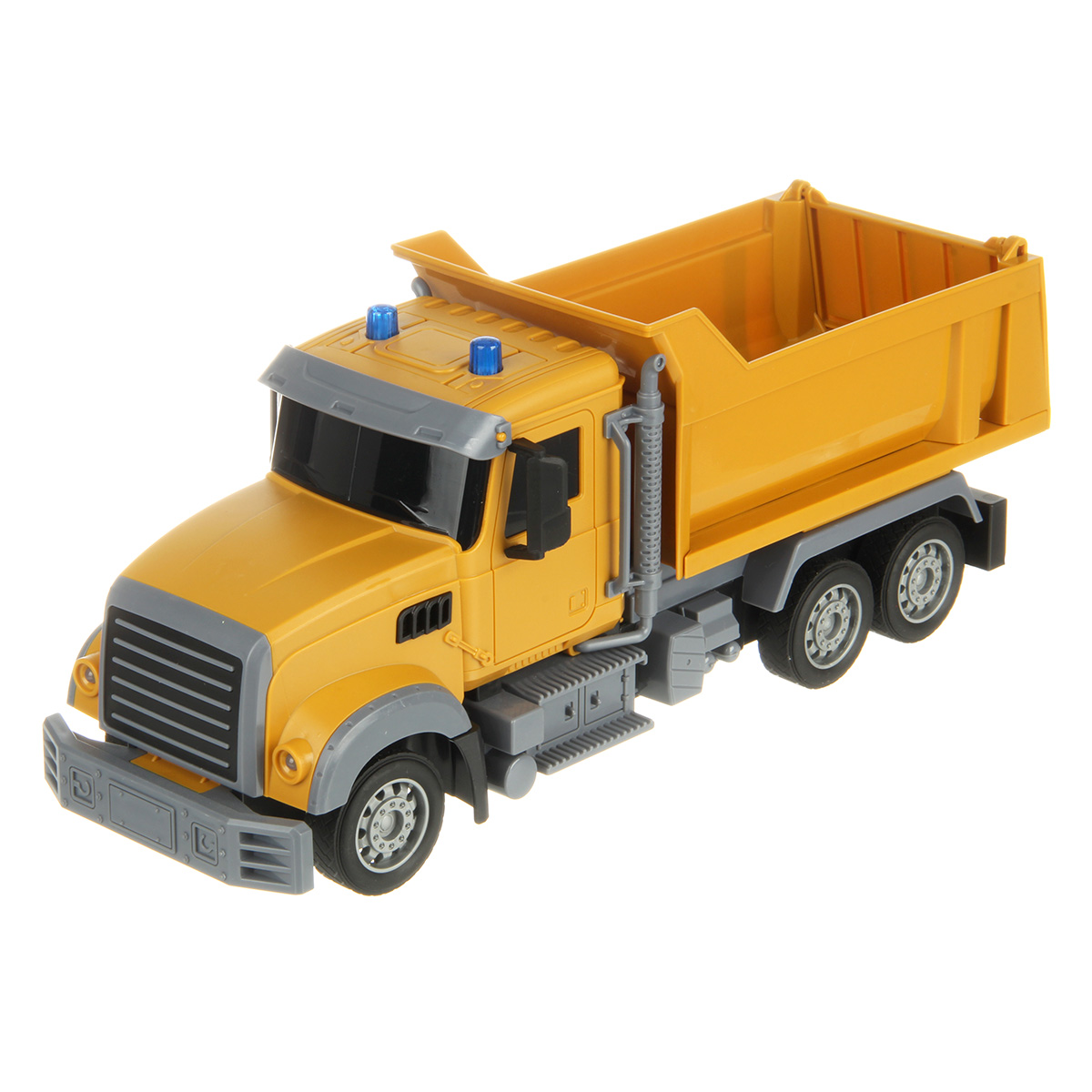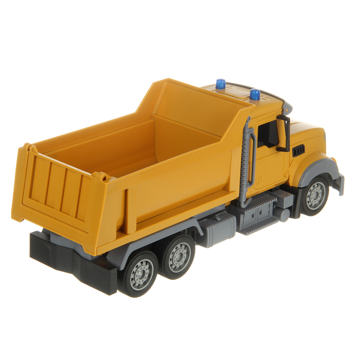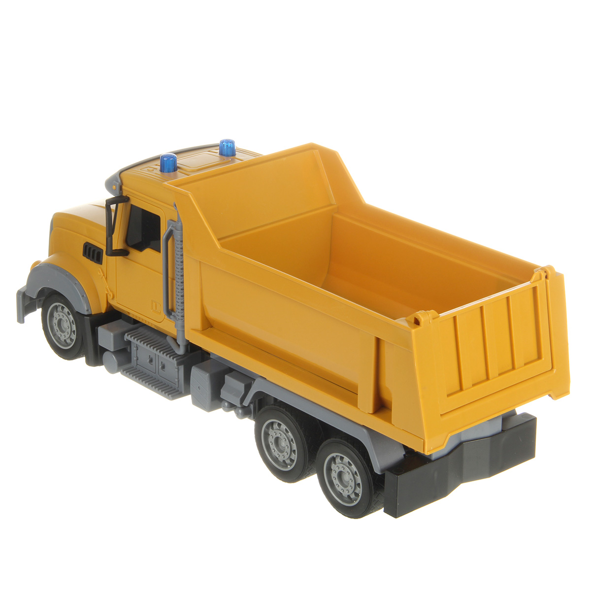 Самосвал со световыми эффектами изготовлен из прочных и долговечных материалов.