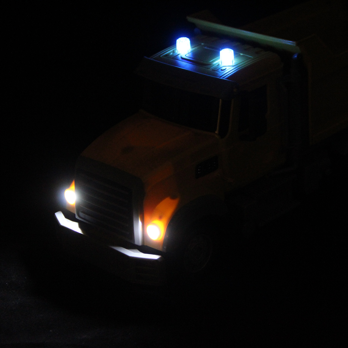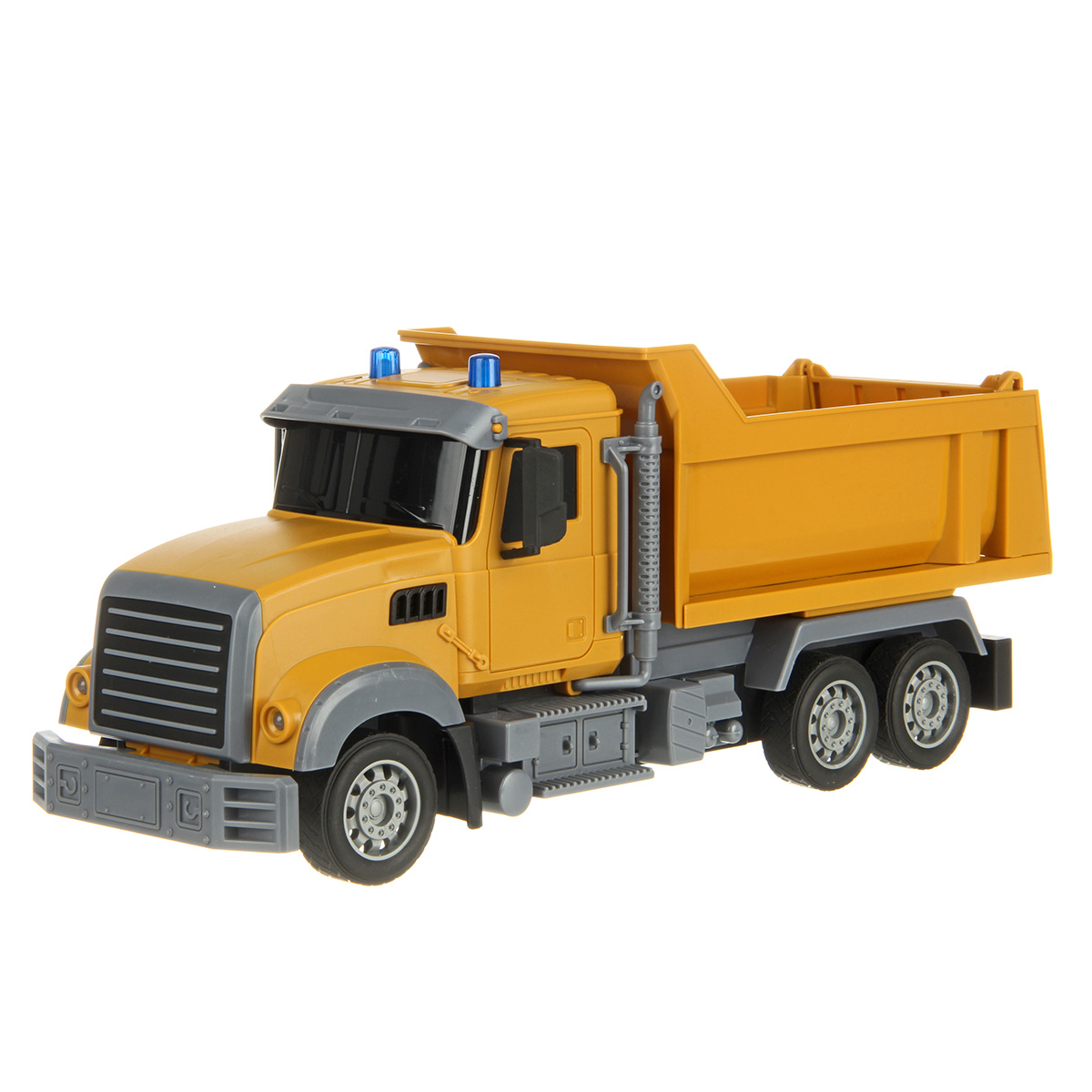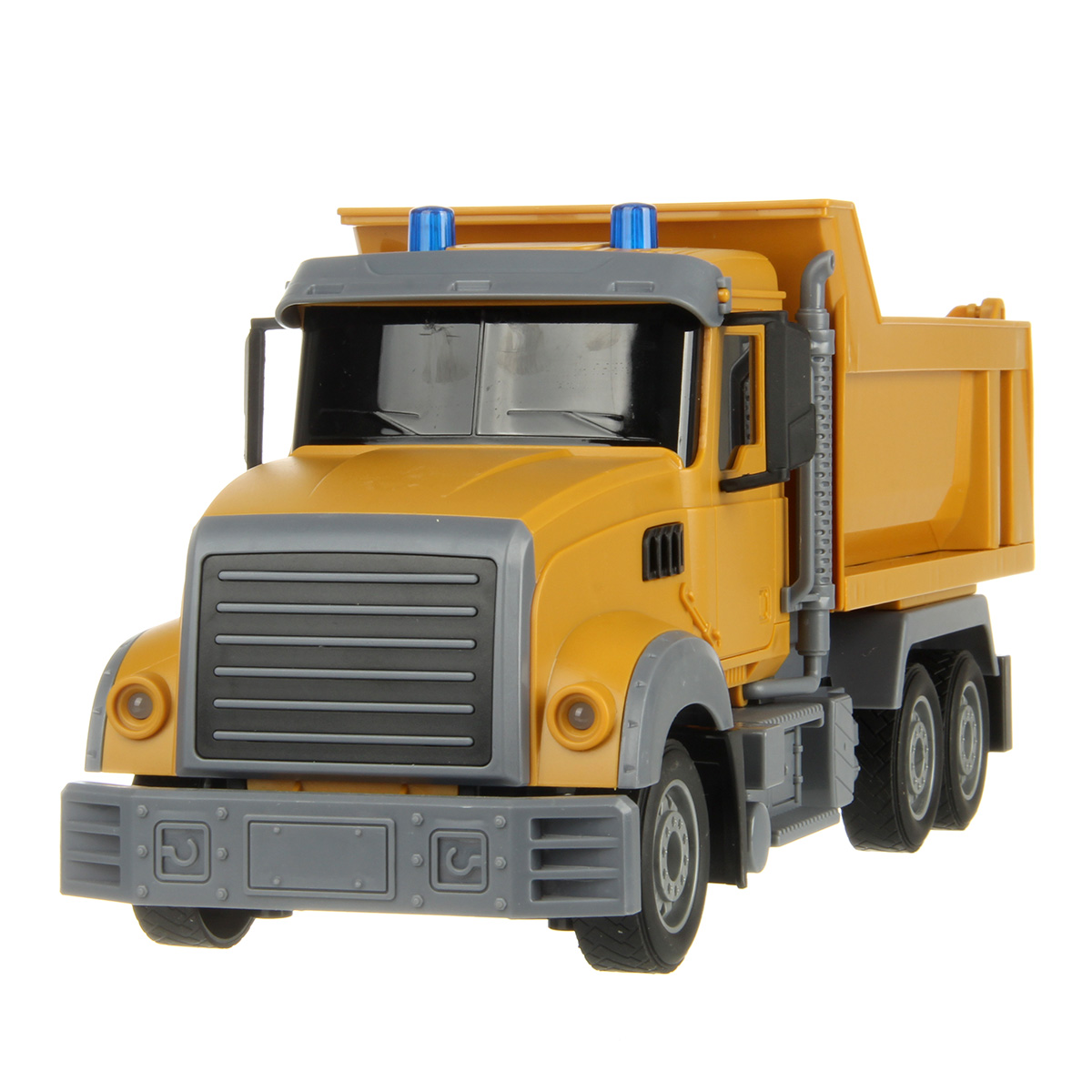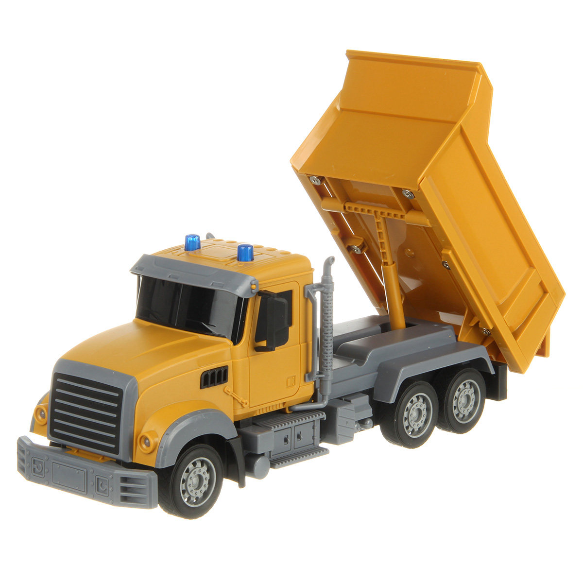 Самосвал со световыми эффектами изготовлен из прочных и долговечных материалов.