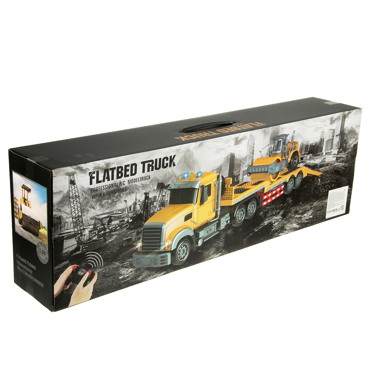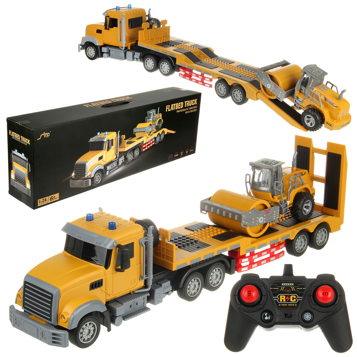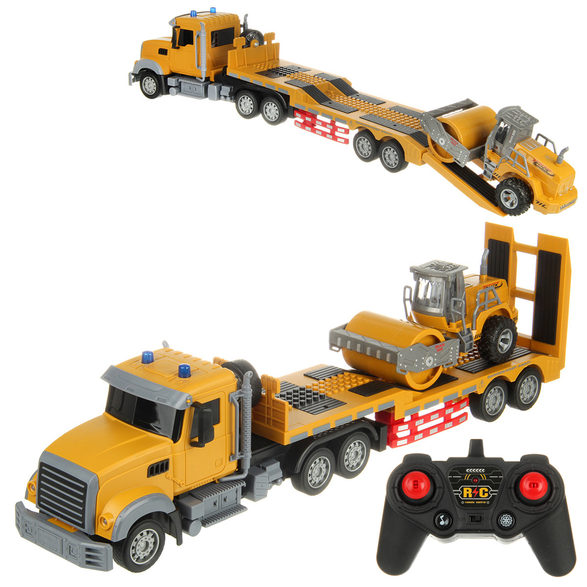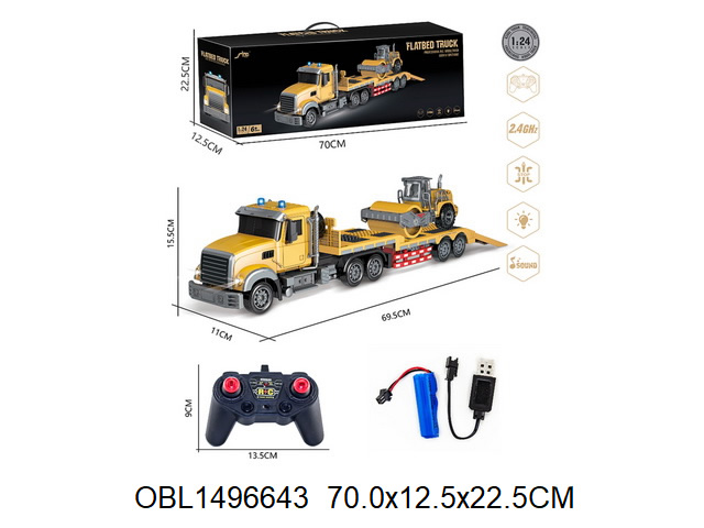 В комплекте машинка автовоз, трактор с катком, пульт управления, аккумулятор 3.7V, USB кабель.