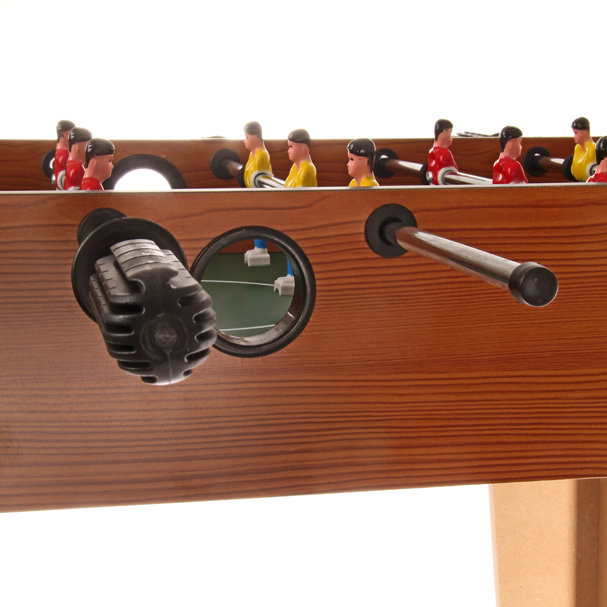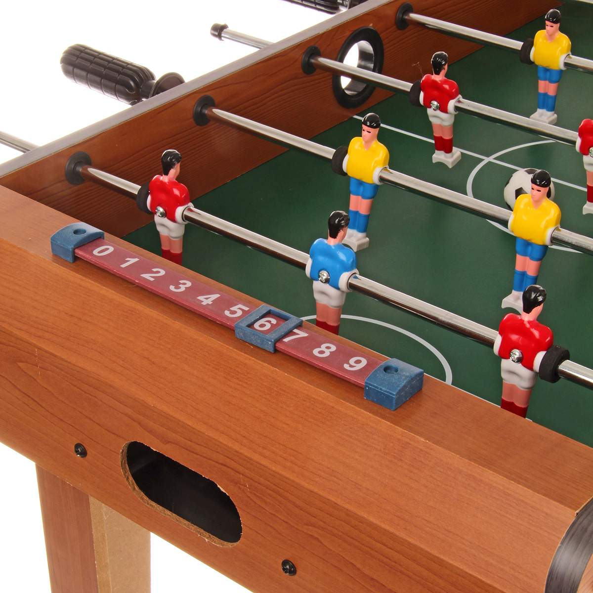 В комплекте детали для сборки игрового стола, 2 мяча, ключ, инструкция по сборке.