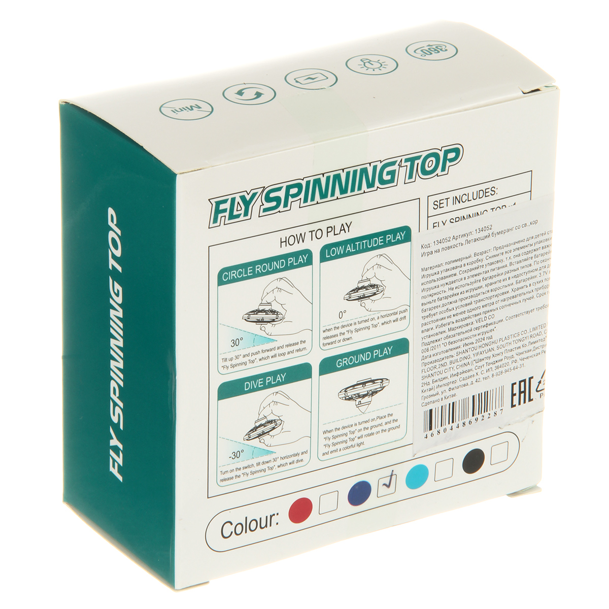 В комплекте игрушка бумеранг, USB зарядка, инструкция по применению на английском языке.