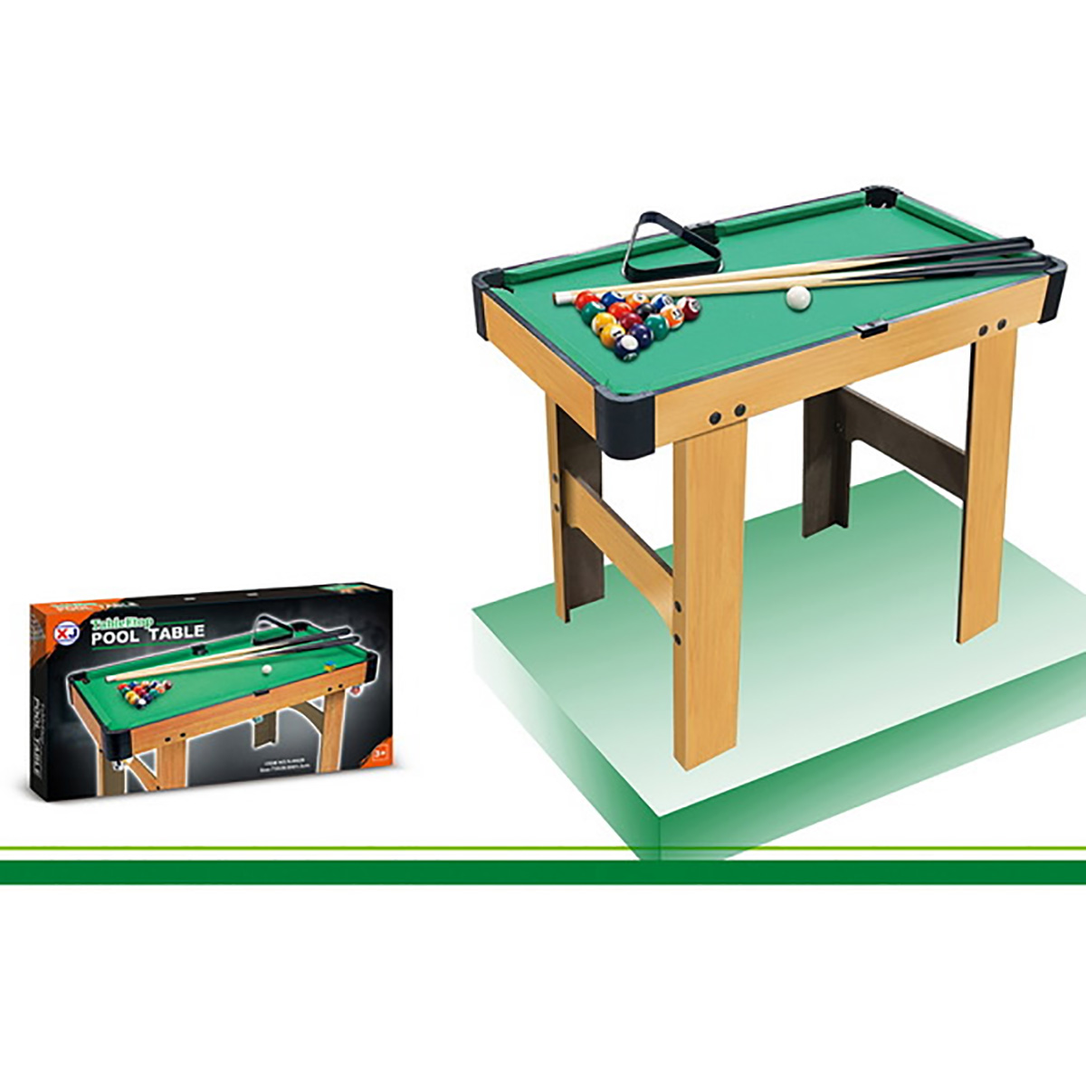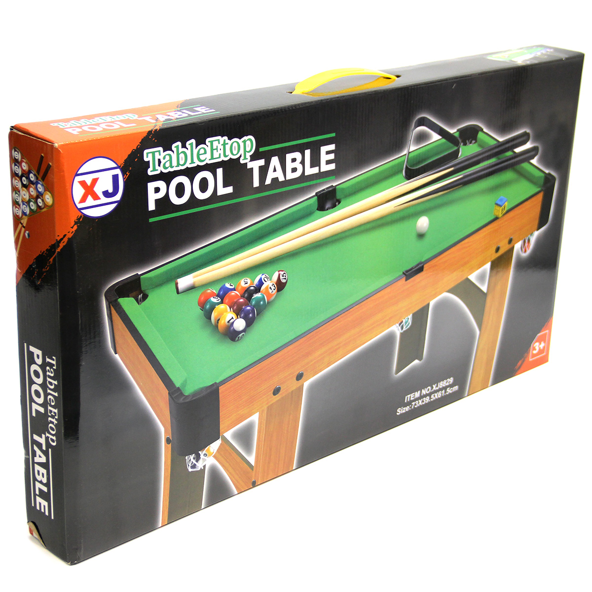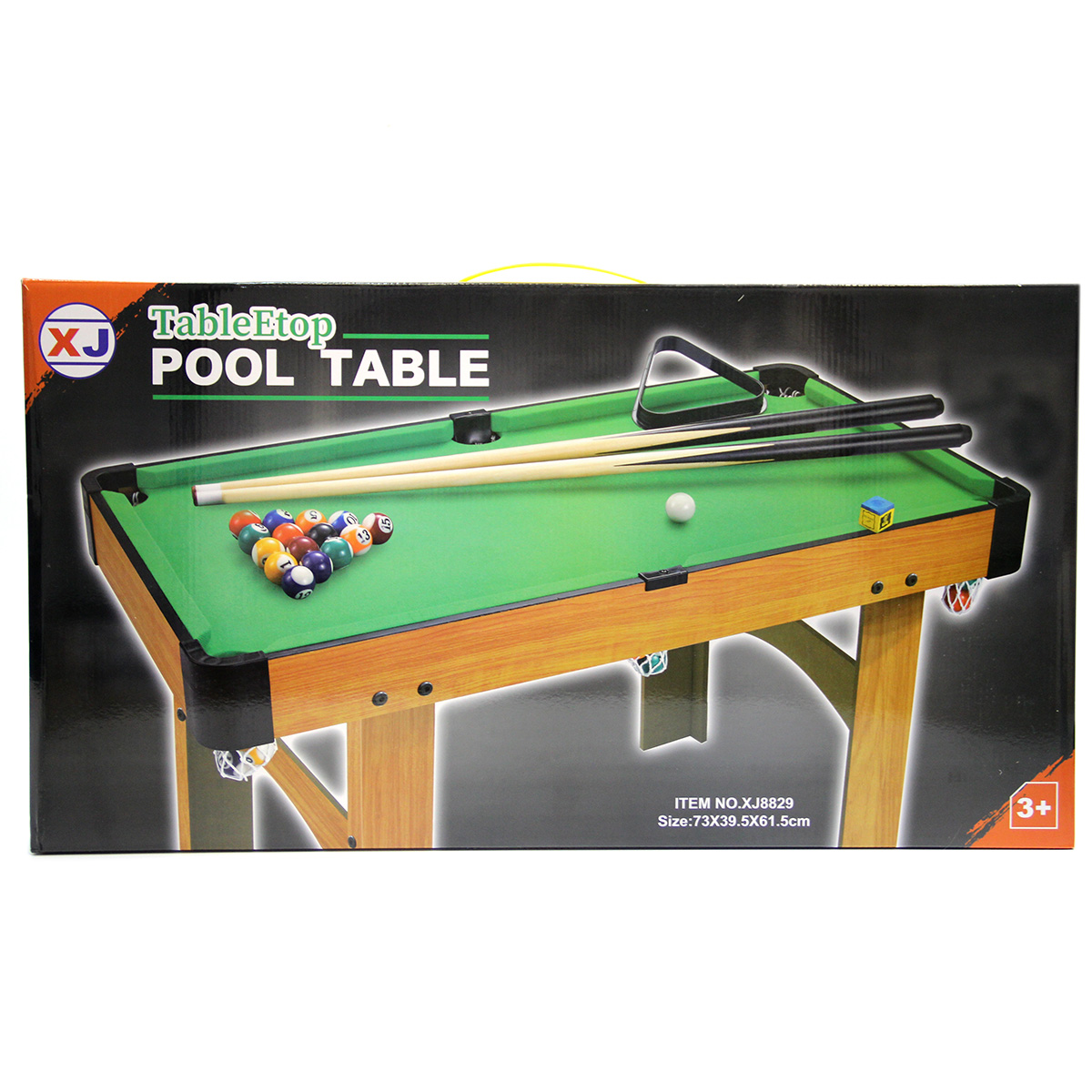 Яркий и красивый бильярдный столик с набором киев и шаров вызовет восторг у детей и взрослых. Игрушка станет любимым развлечением всей семьи и прекрасным вариантом проведения досуга для большой компании. В комплект входят 2 кия, набор шаров, треугольник, мел для бильярда, детали для сборки стола, шестигранный ключ, инструкция по сборке. Столик легко собирается и разбирается, в разобранном виде занимает мало места. Соберите столик, расставьте шарики в треугольнике, выберите противника - можно начинать игру. Игра в бильярд отлично тренирует зрительное восприятие, развивает логическое и пространственное мышление, мелкую моторику рук, координацию движений, концентрацию внимания, снимает стресс и напряжение. Набор станет замечательным подарком для всей семьи. Набор изготовлен из экологически чистой древесины и пластмассы. Размеры стола в собранном виде: 73*39*61 см. Размеры кия: 67*2,5*2,5 см. Диаметр шара: 2,5 см. Размеры коробки: 72*7*38 см.