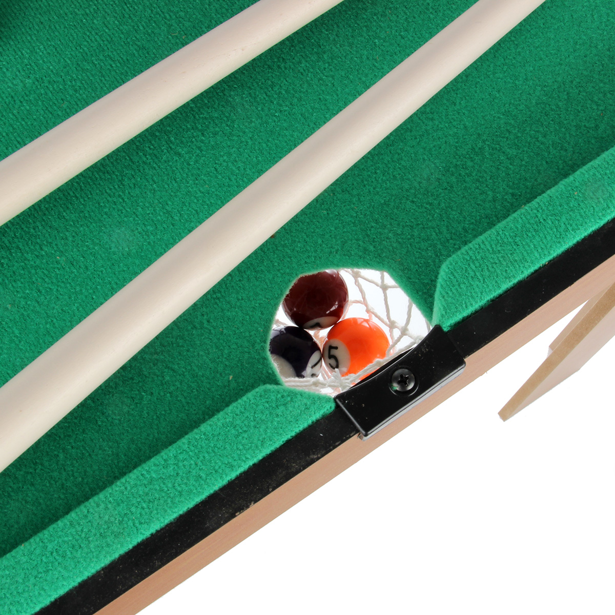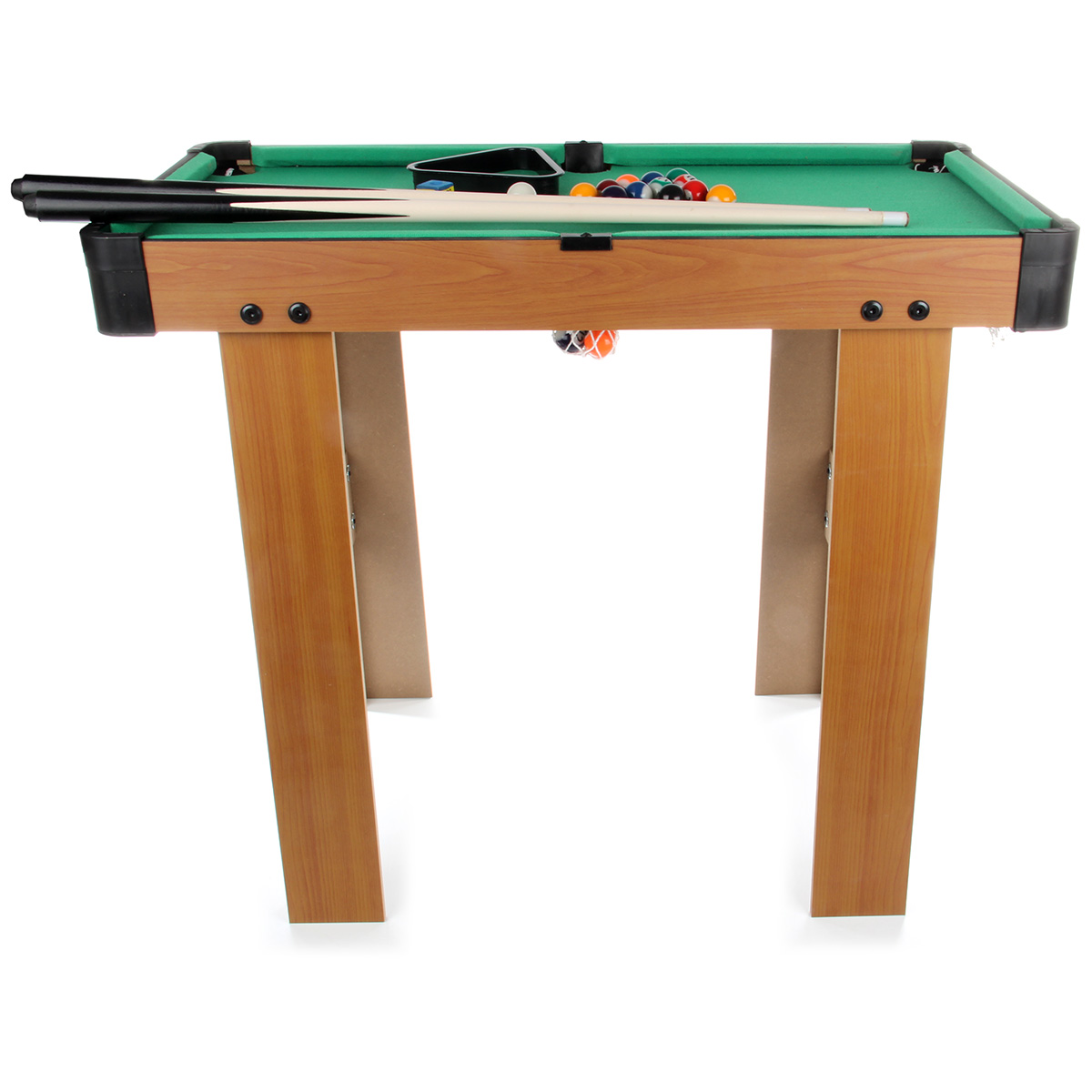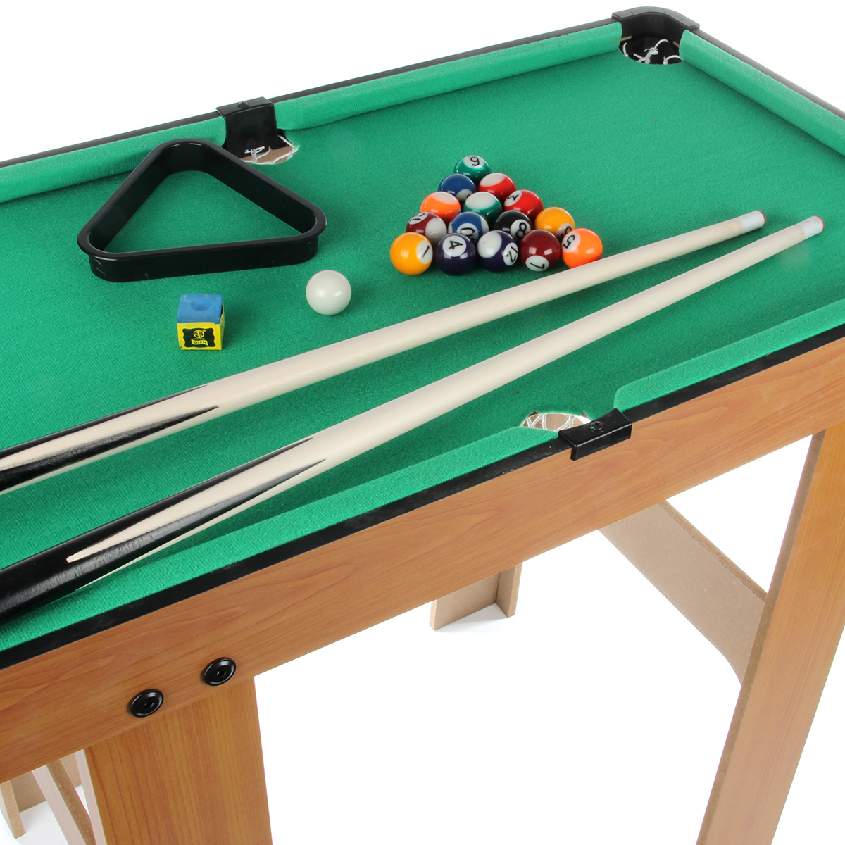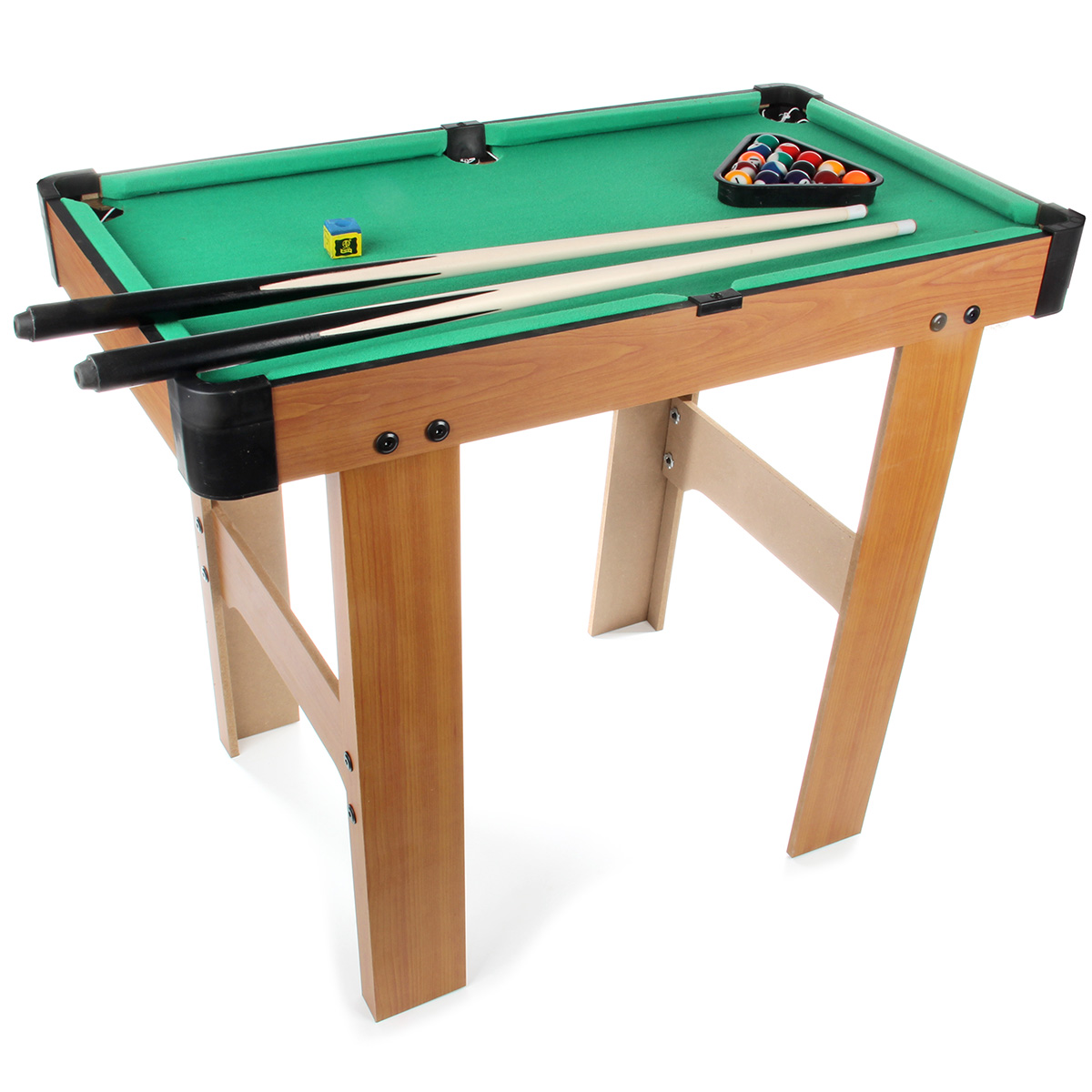 Яркий и красивый бильярдный столик с набором киев и шаров вызовет восторг у детей и взрослых. Игрушка станет любимым развлечением всей семьи и прекрасным вариантом проведения досуга для большой компании. В комплект входят 2 кия, набор шаров, треугольник, мел для бильярда, детали для сборки стола, шестигранный ключ, инструкция по сборке. Столик легко собирается и разбирается, в разобранном виде занимает мало места. Соберите столик, расставьте шарики в треугольнике, выберите противника - можно начинать игру. Игра в бильярд отлично тренирует зрительное восприятие, развивает логическое и пространственное мышление, мелкую моторику рук, координацию движений, концентрацию внимания, снимает стресс и напряжение. Набор станет замечательным подарком для всей семьи. Набор изготовлен из экологически чистой древесины и пластмассы. Размеры стола в собранном виде: 73*39*61 см. Размеры кия: 67*2,5*2,5 см. Диаметр шара: 2,5 см. Размеры коробки: 72*7*38 см.
